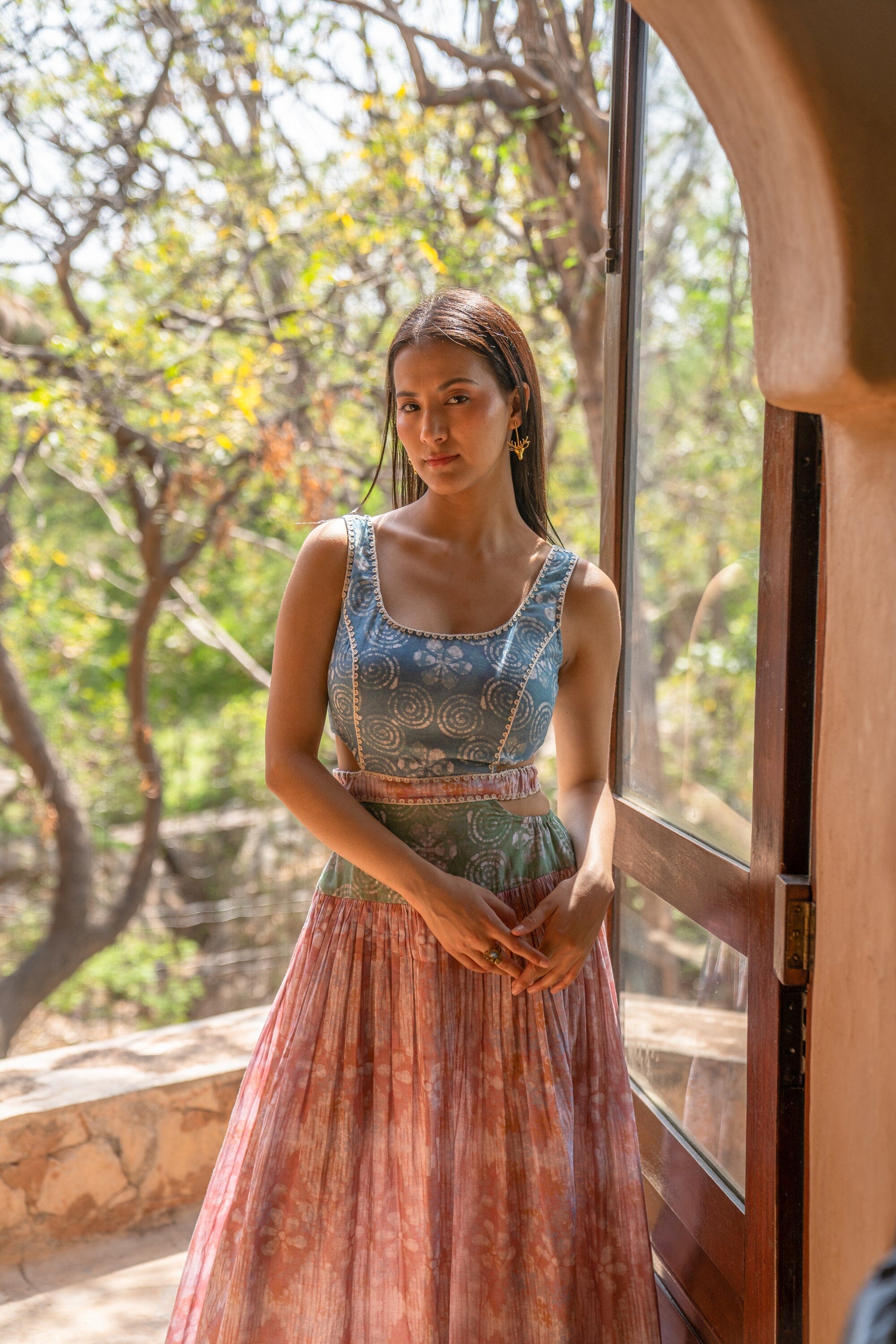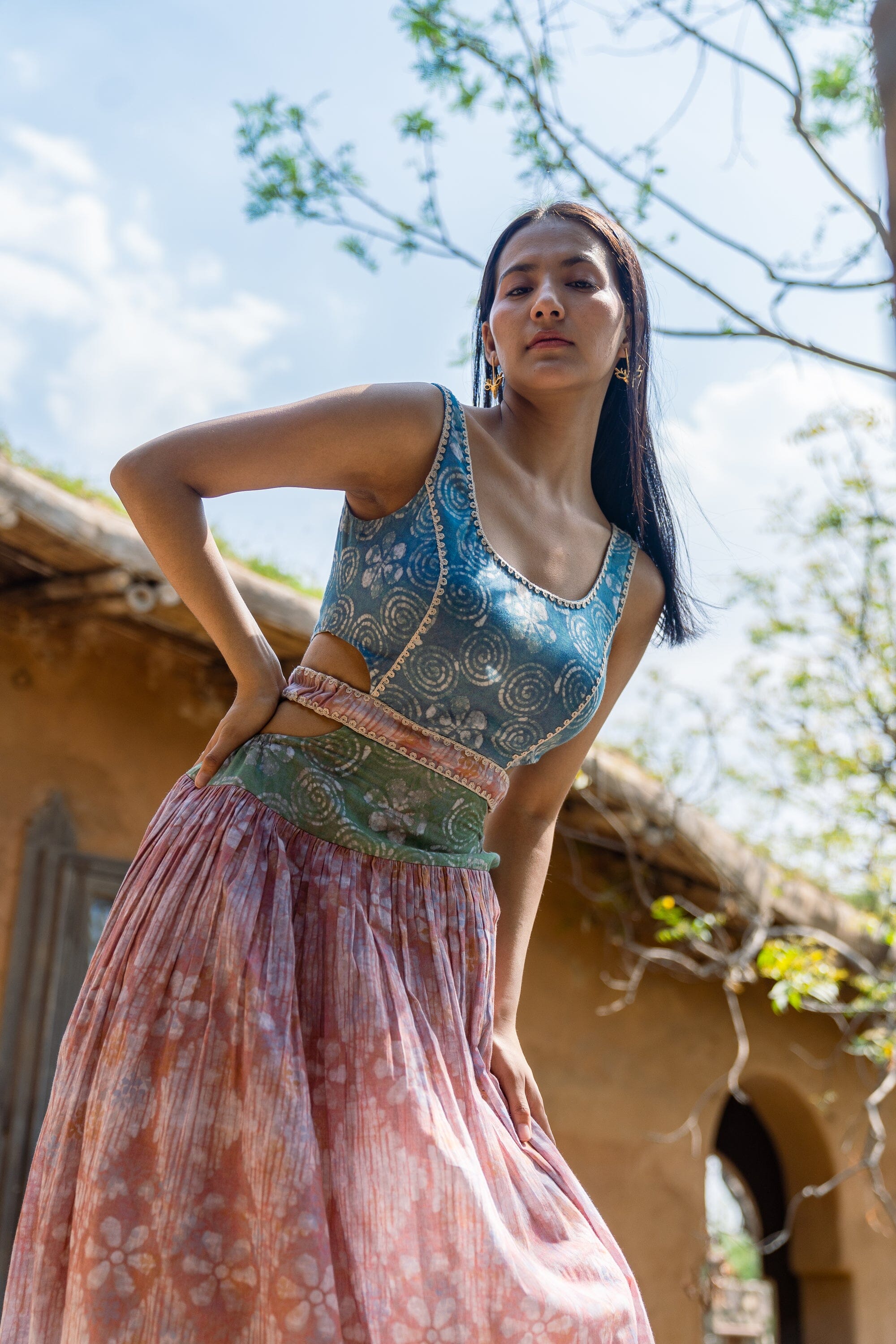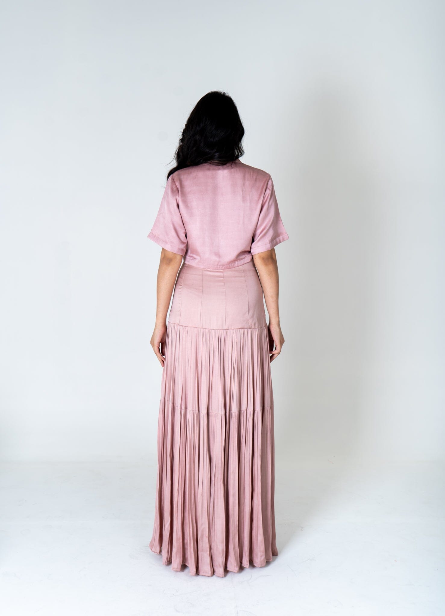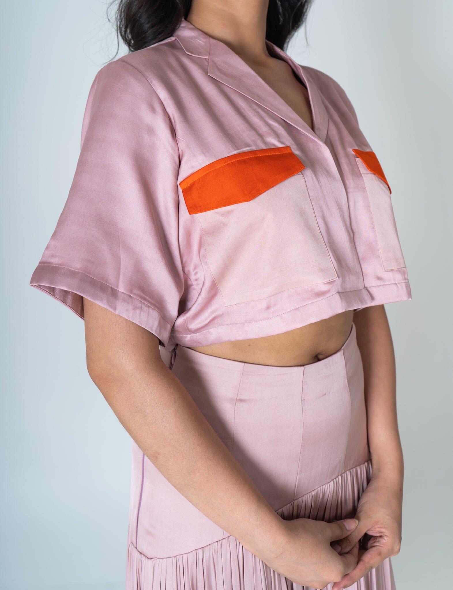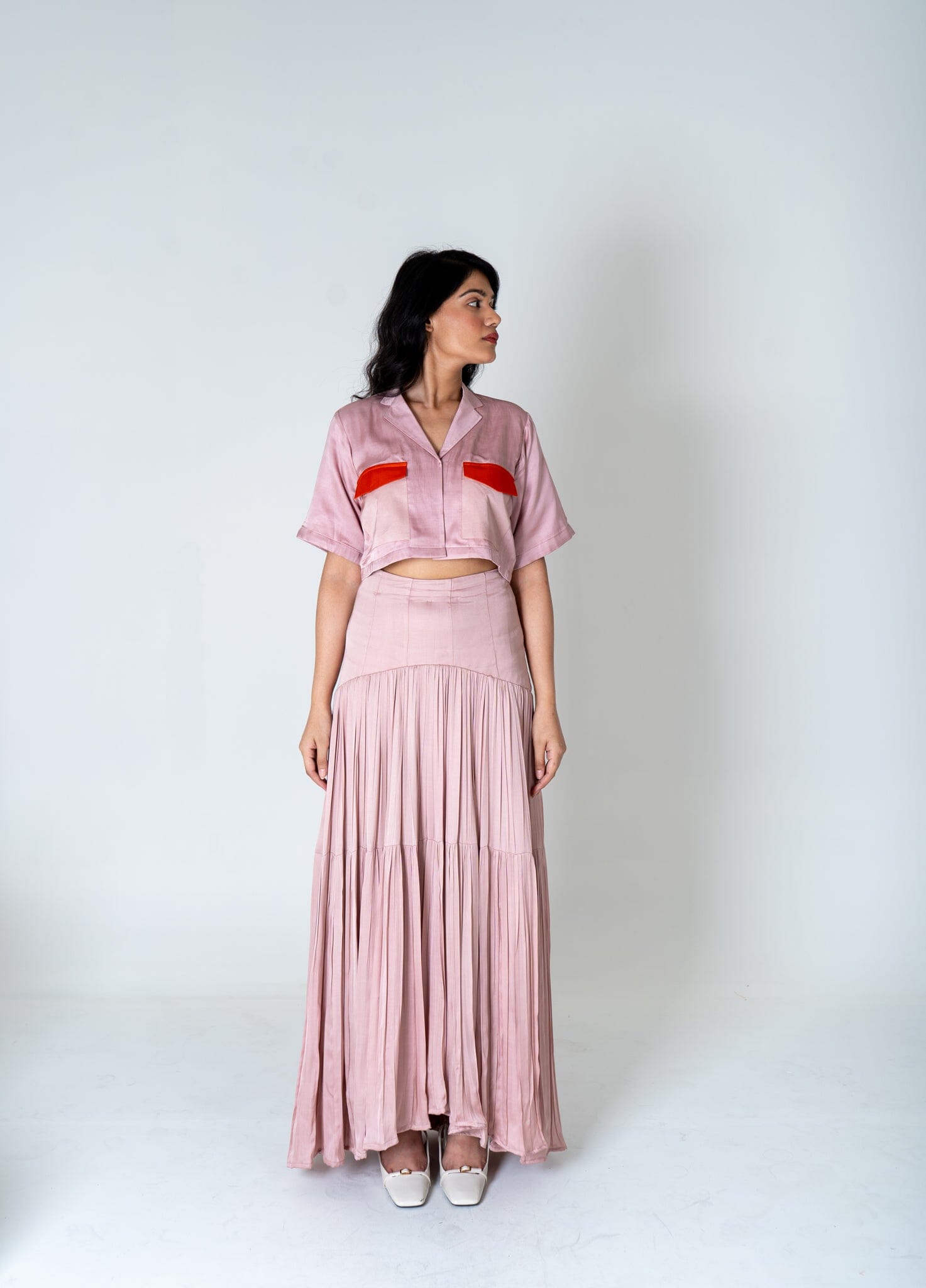 Pink-Orange Color-Blocked Maxi Skirt Set