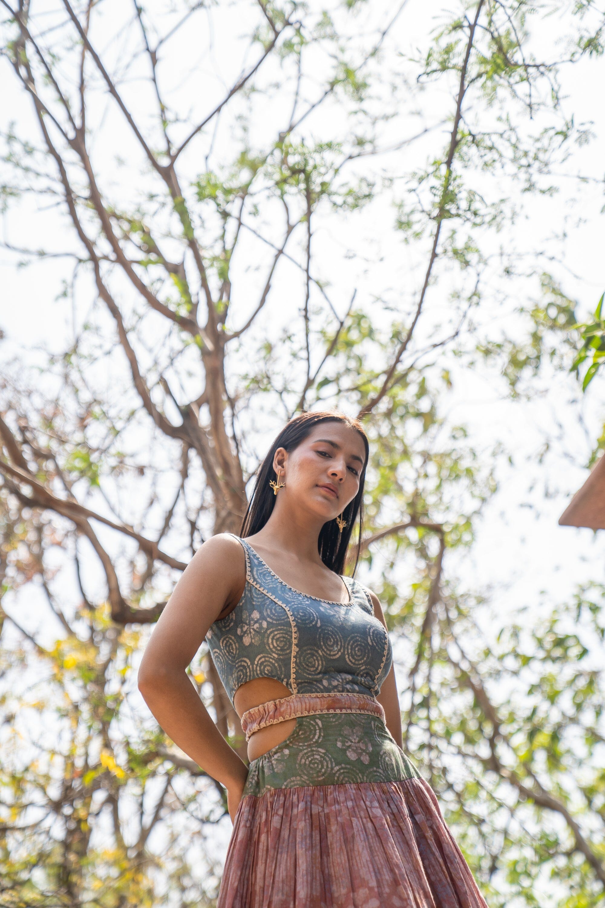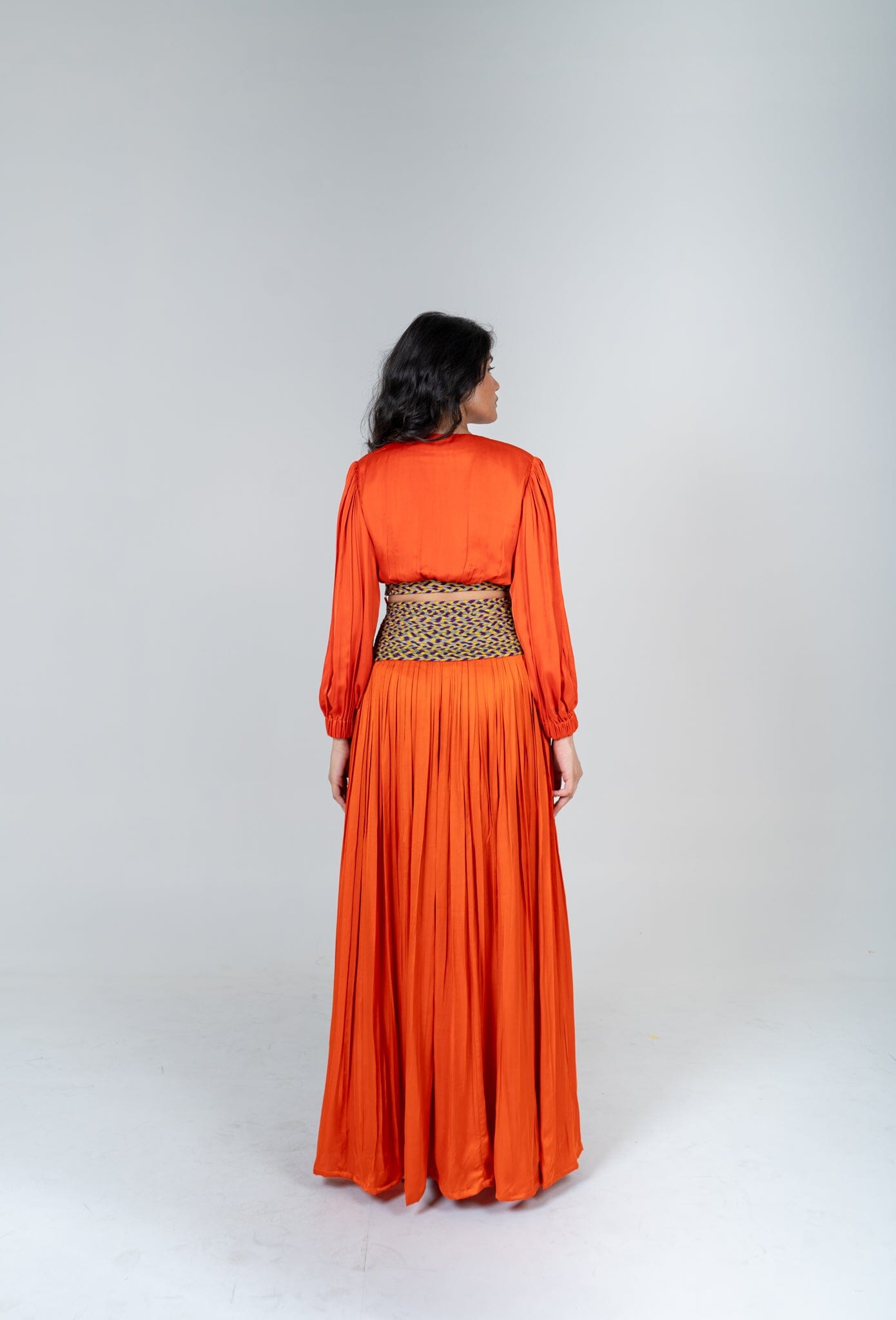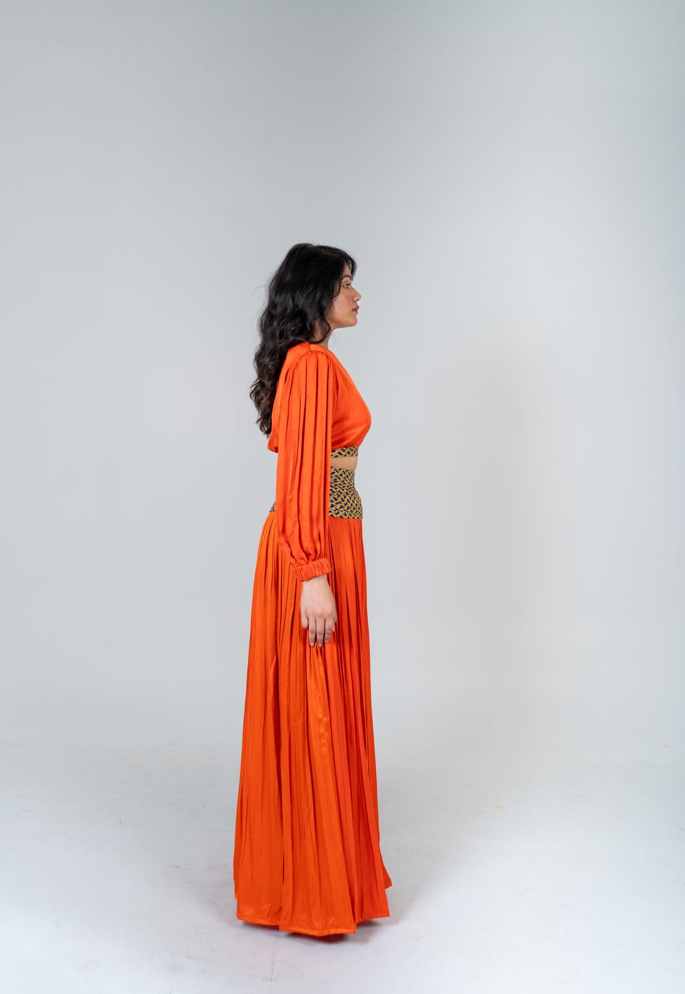 Orange Skirt Set with Color-Blocked Braids