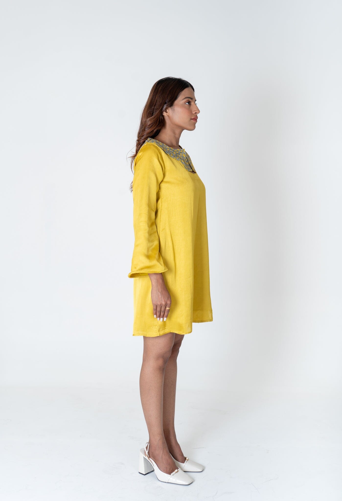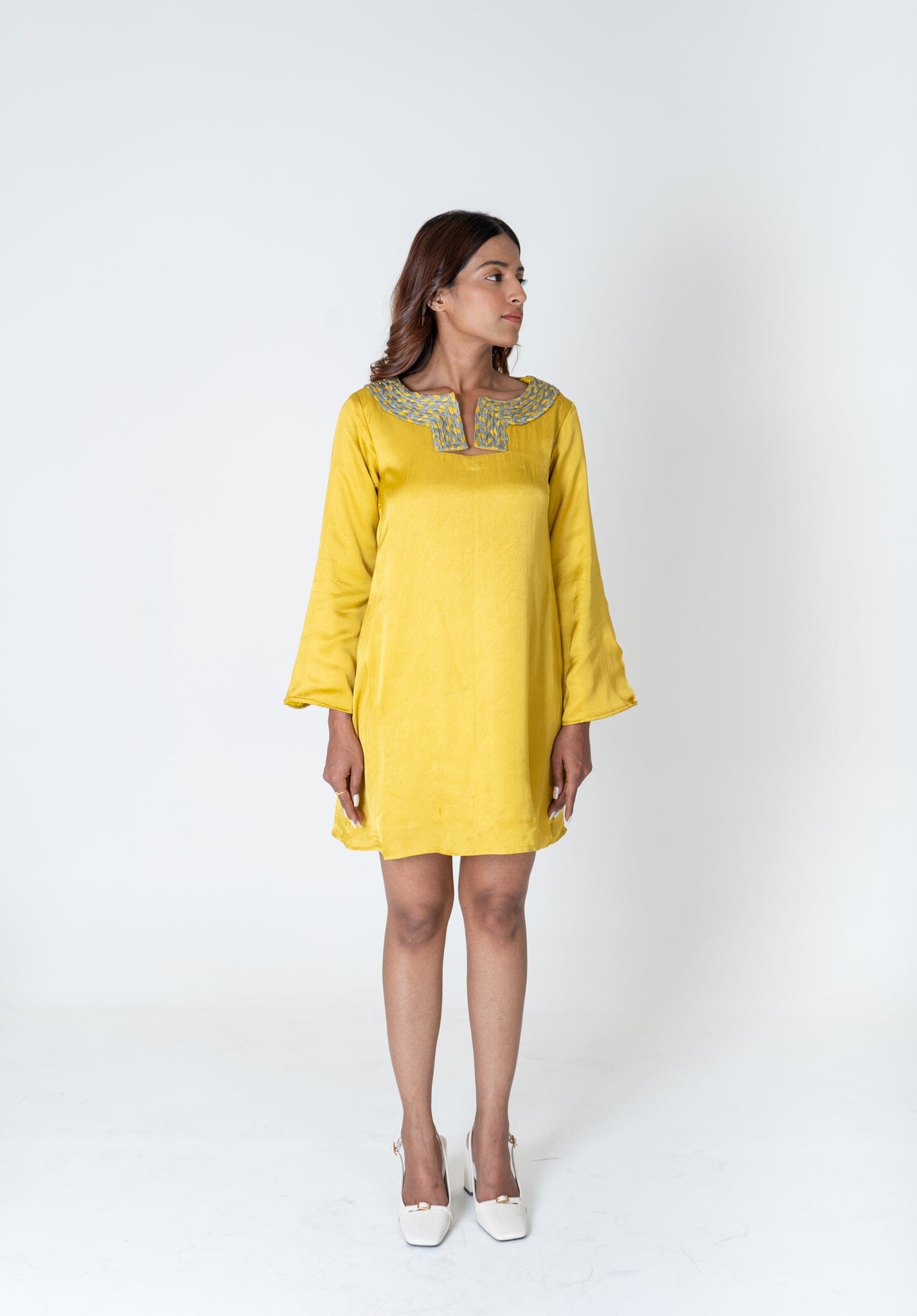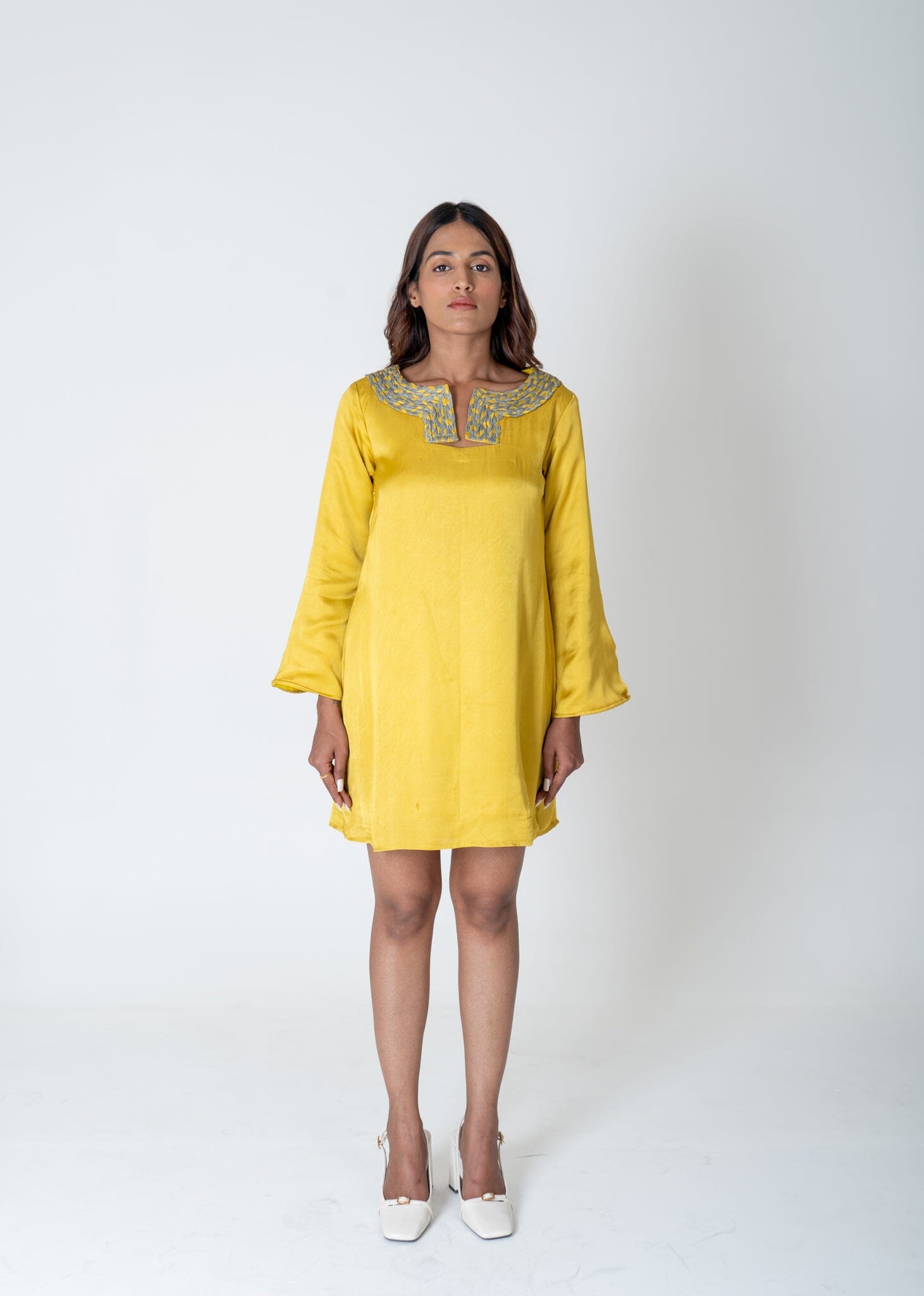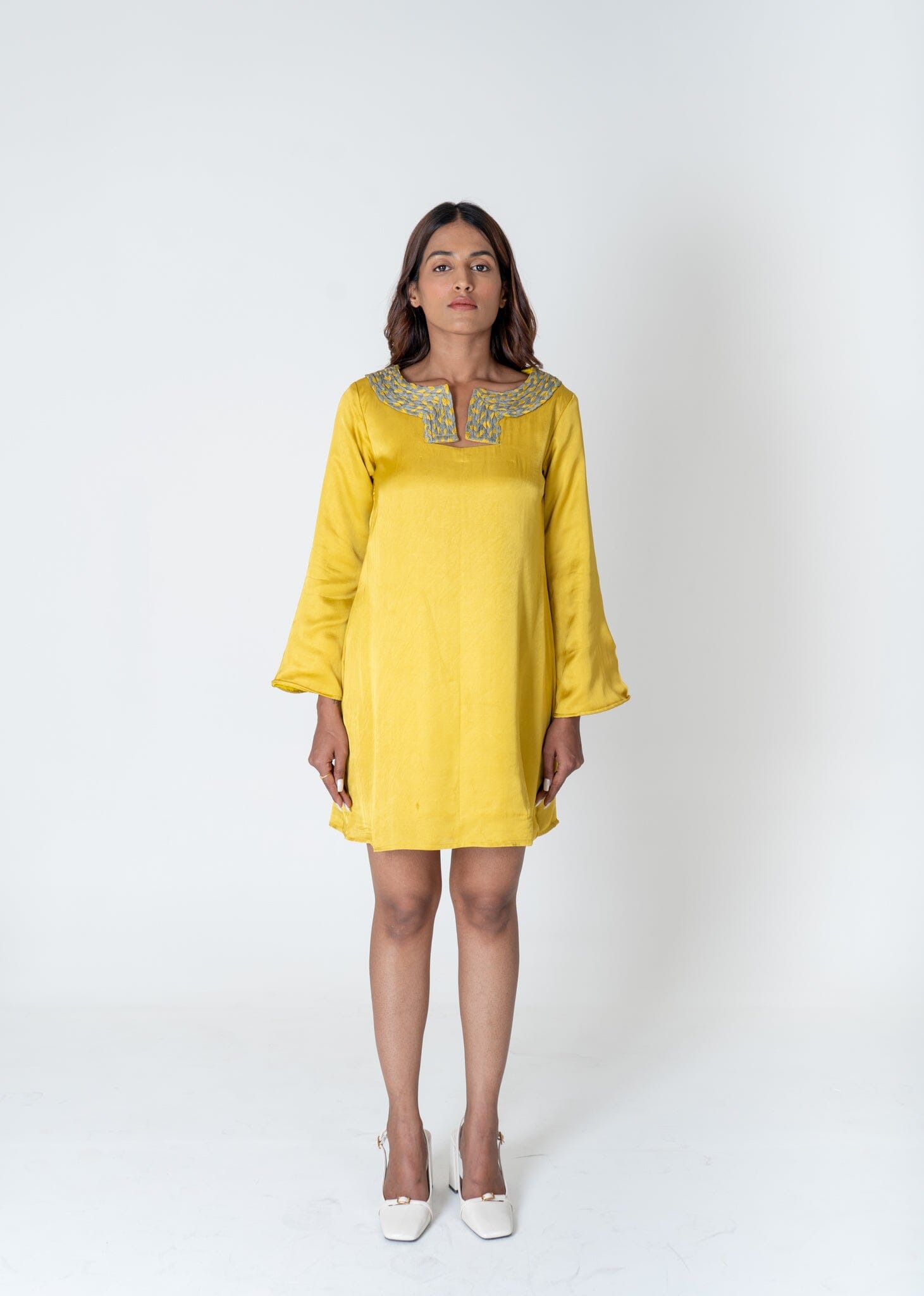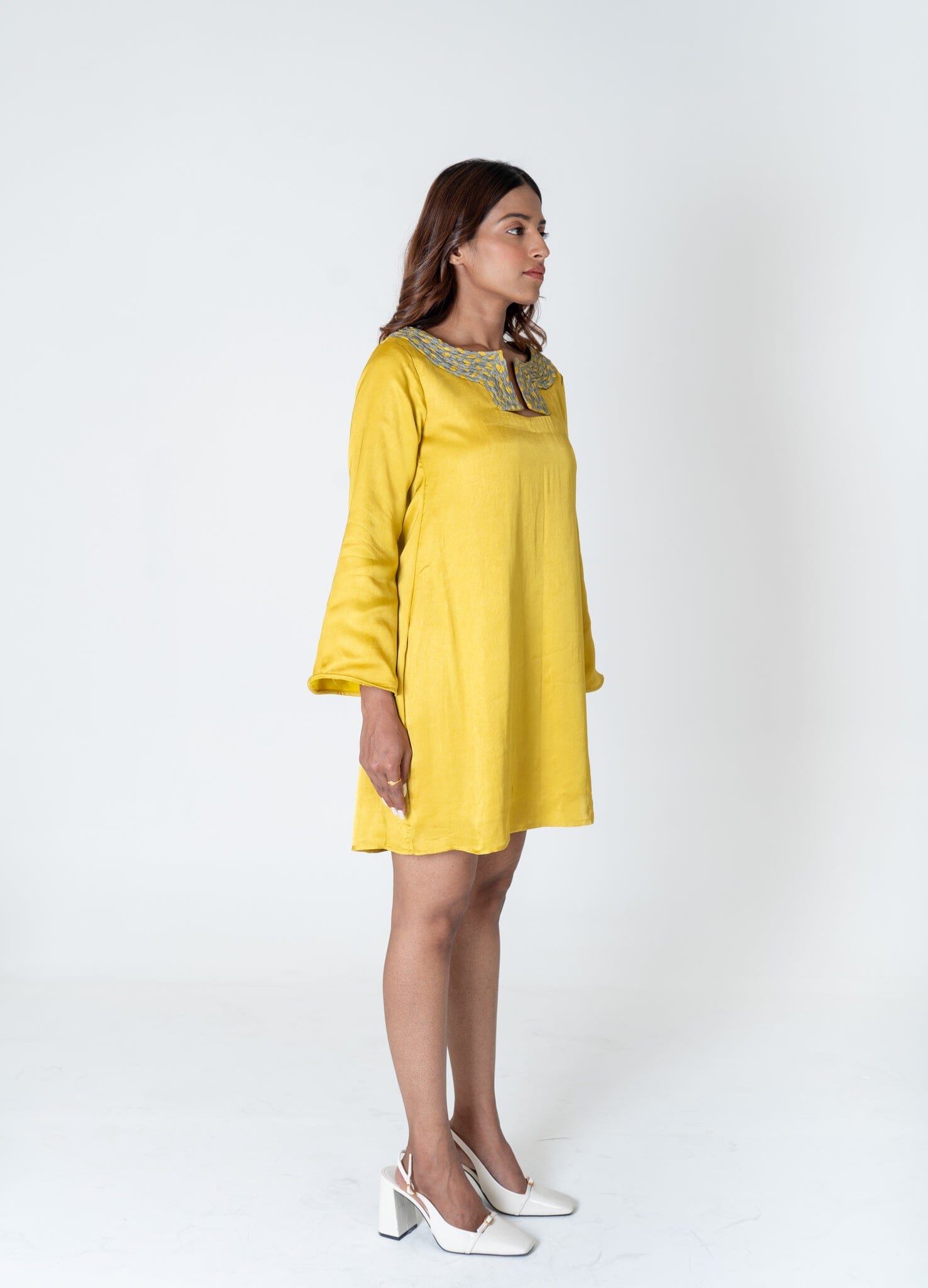 Green-Yellow Braided Collar Short Dress