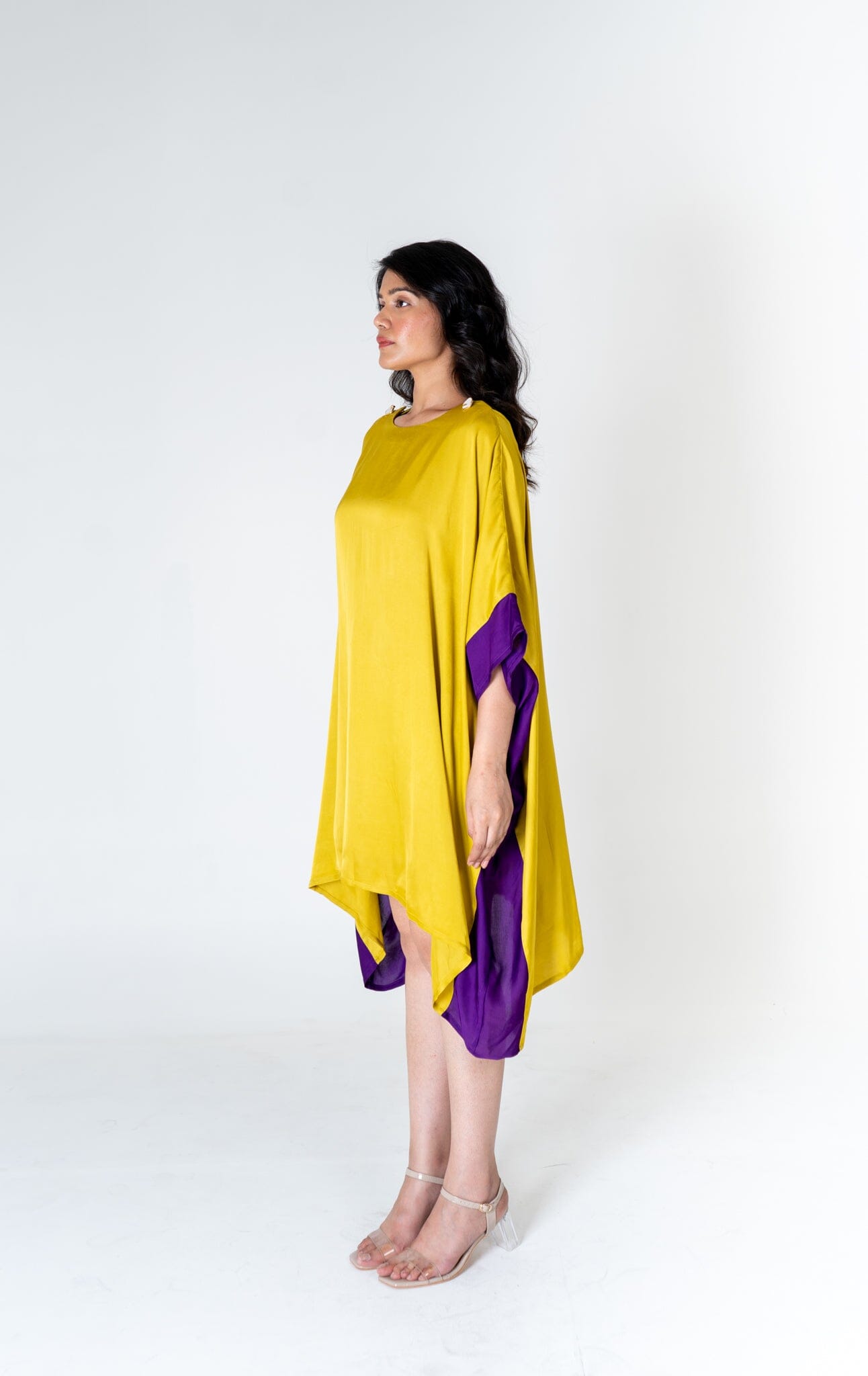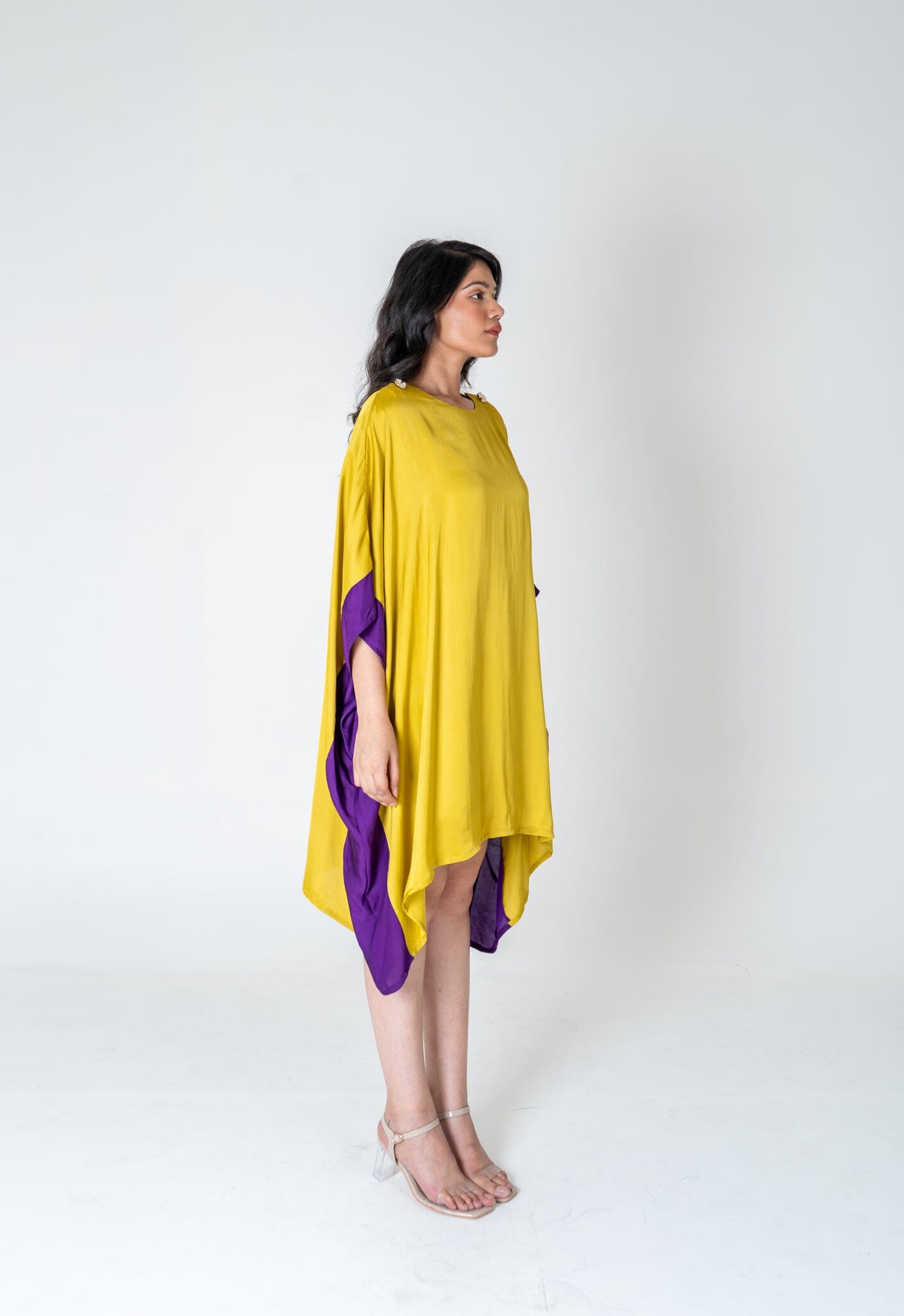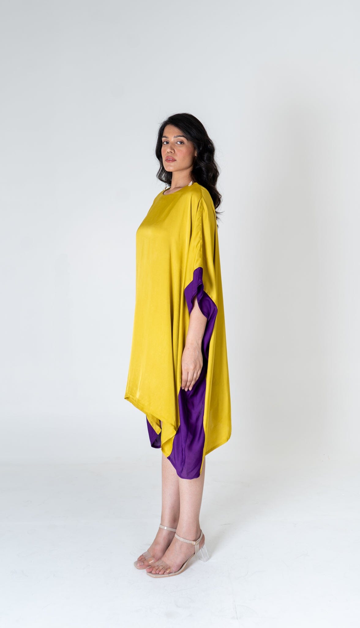 Yellow-Purple Short Kaftan Dress