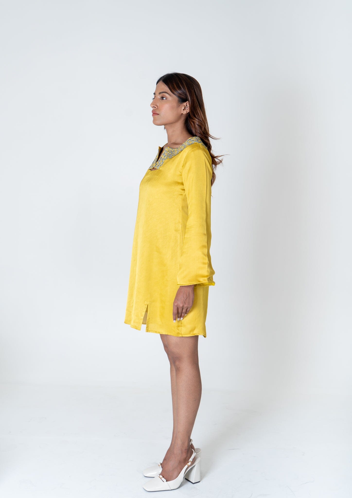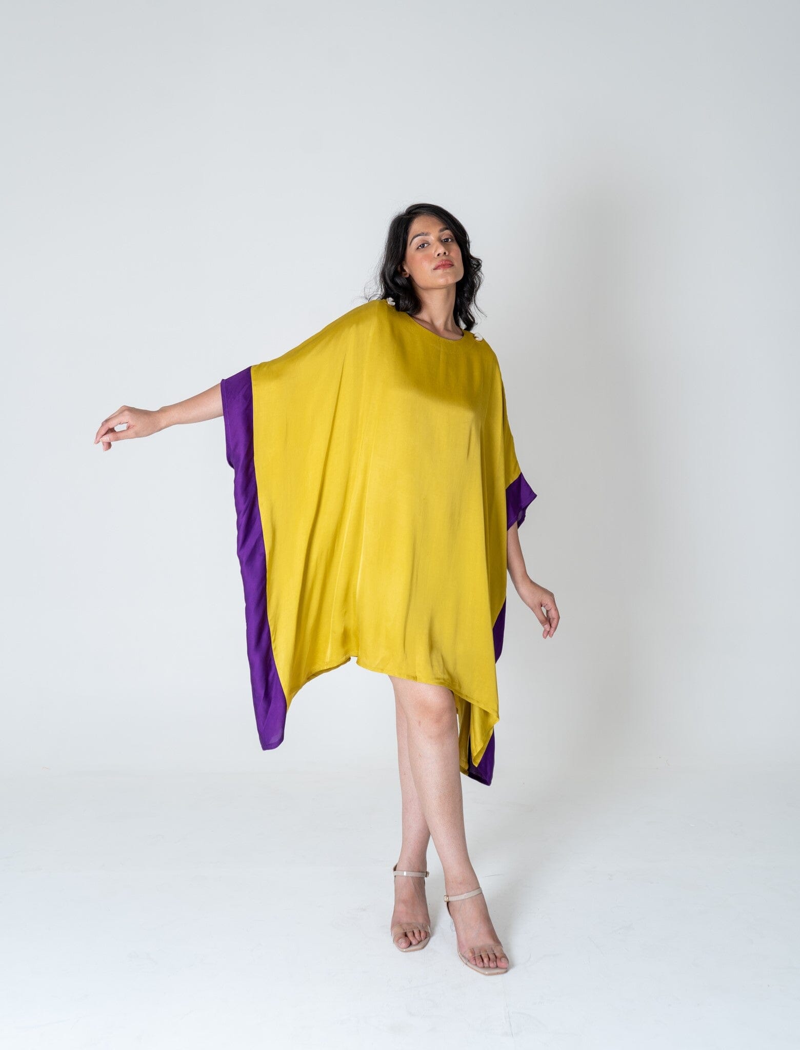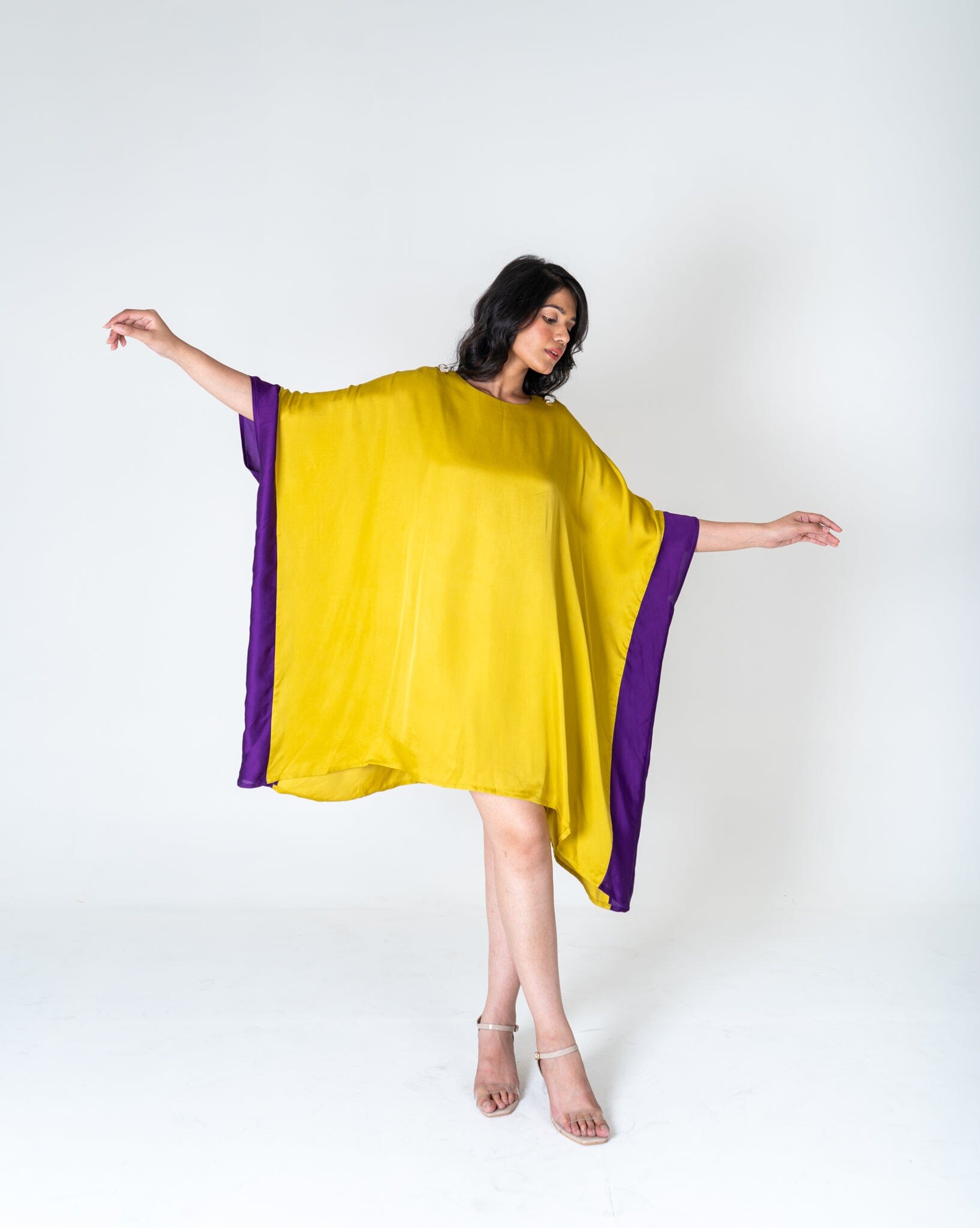 Yellow-Purple Short Kaftan Dress