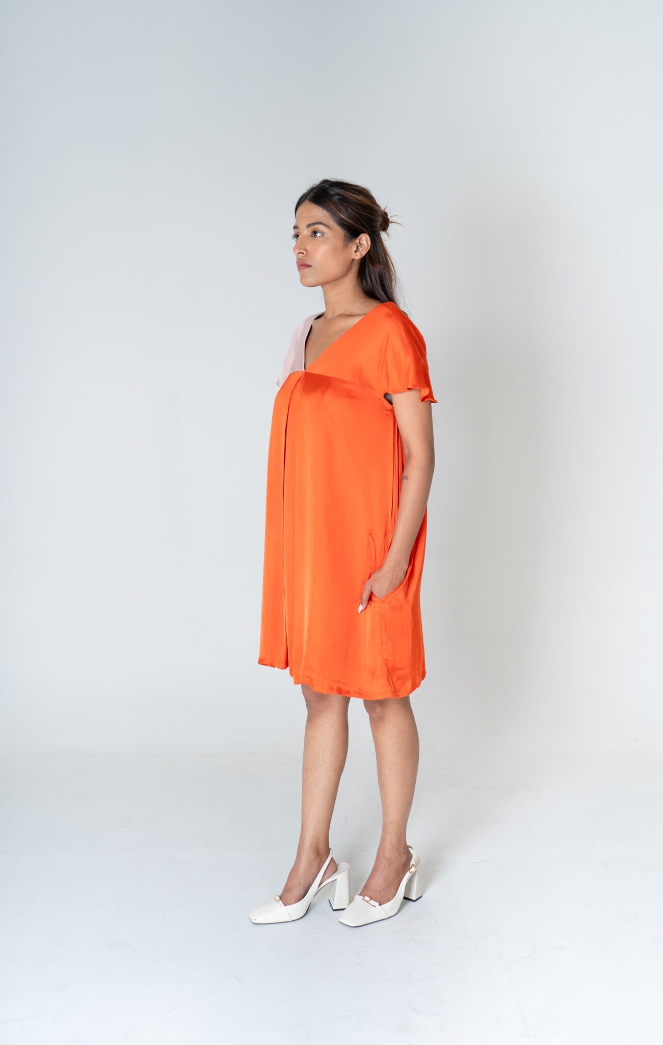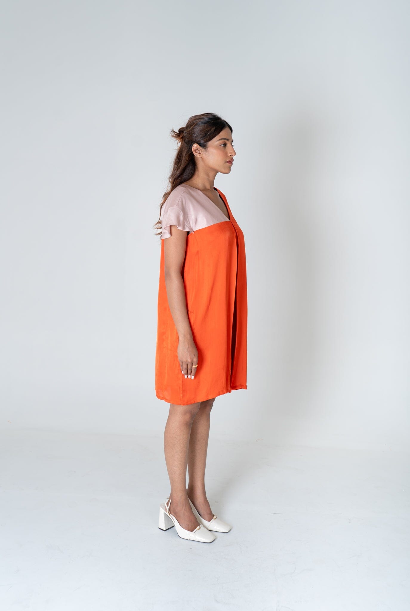 Orange-Pink Color-Block Short Dress
