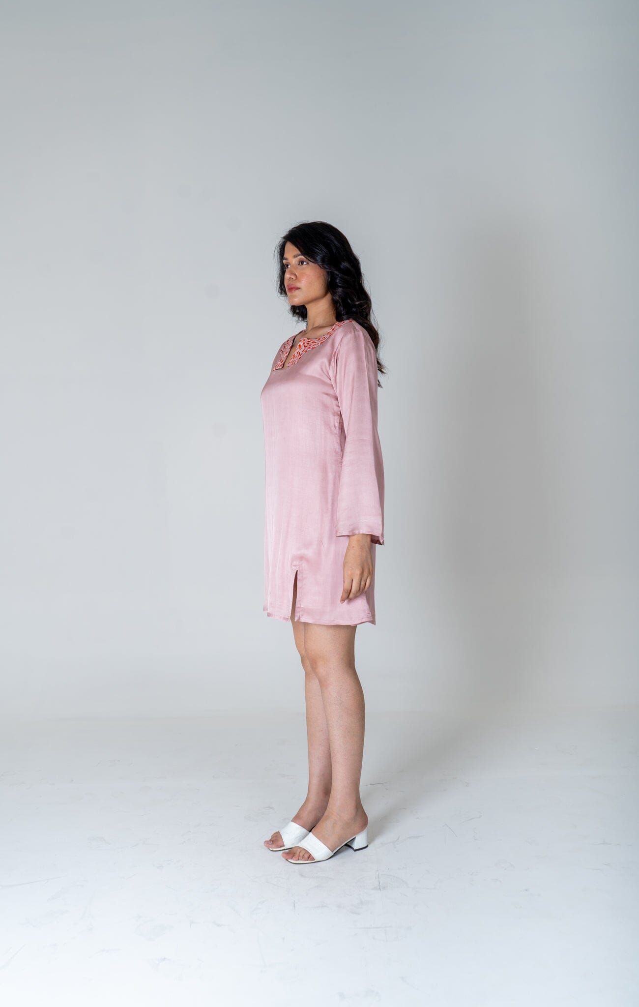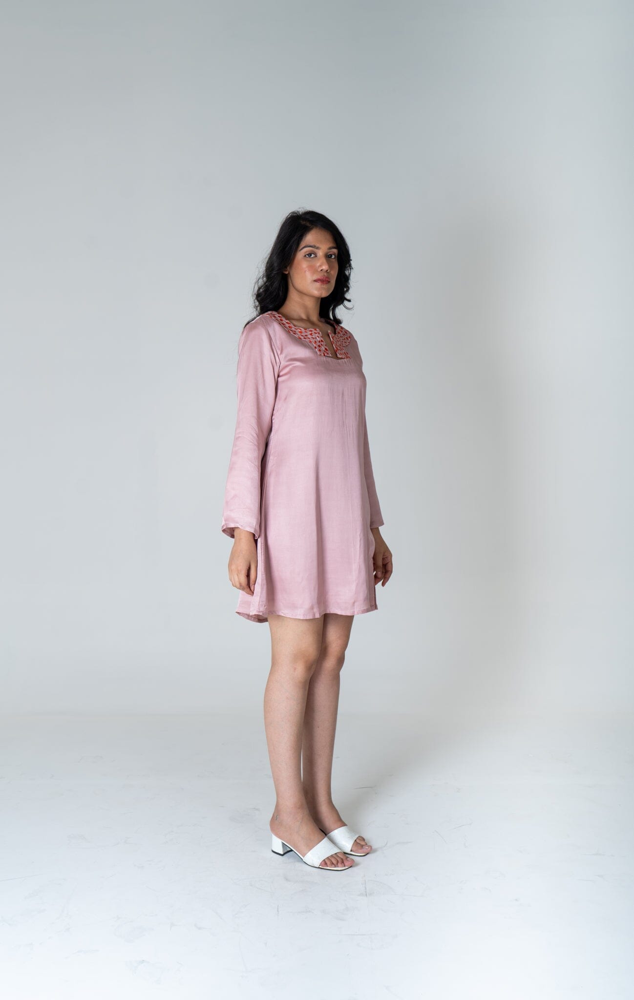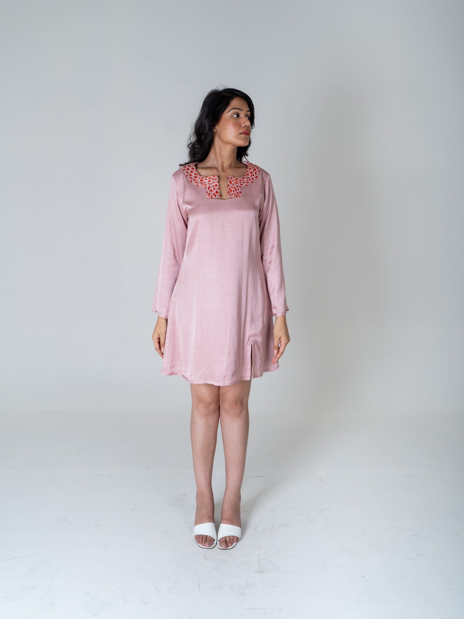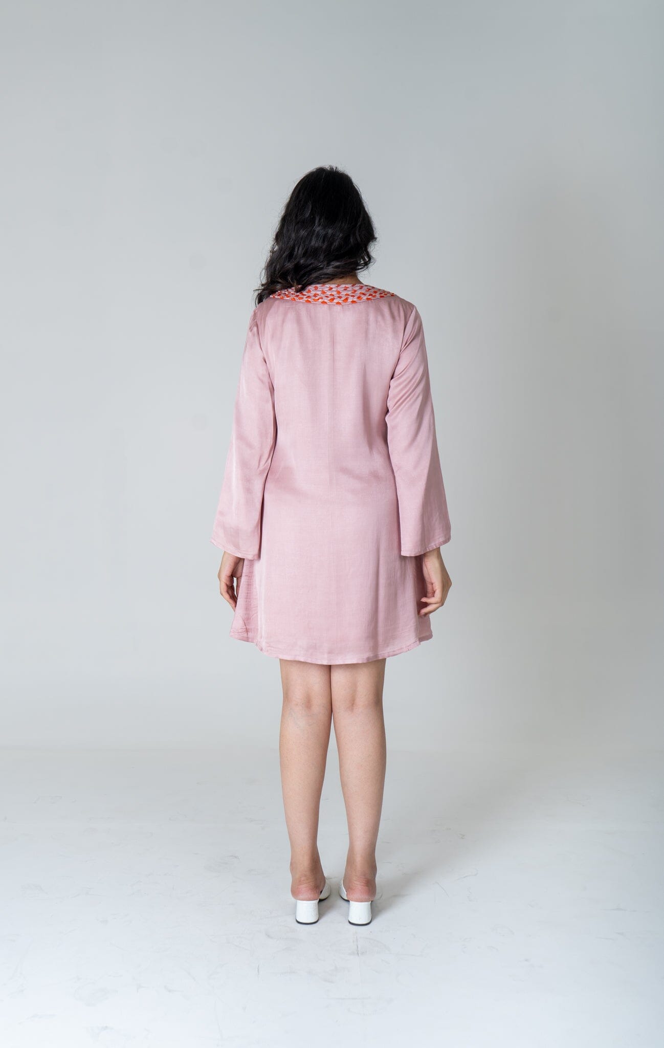 Pink-Orange Braided Collar Short Dress