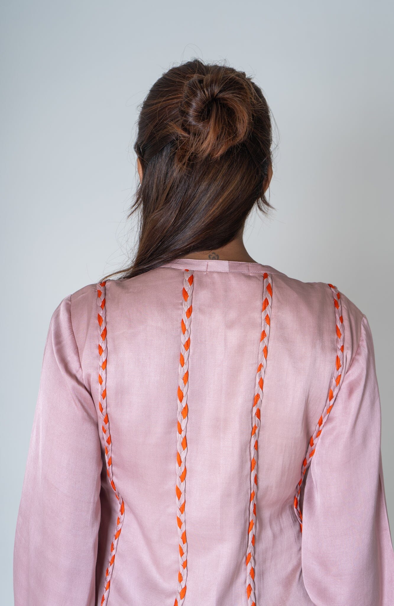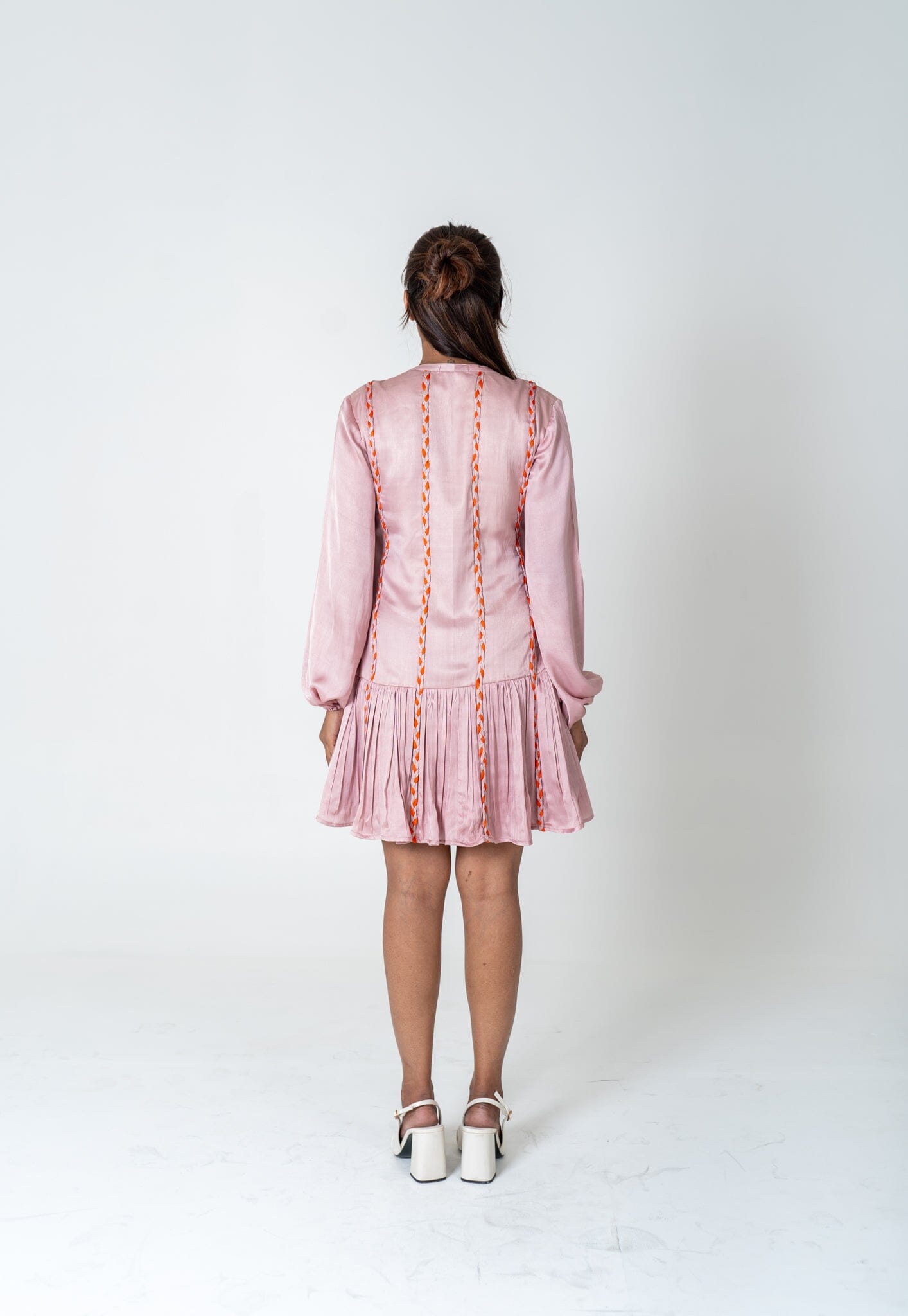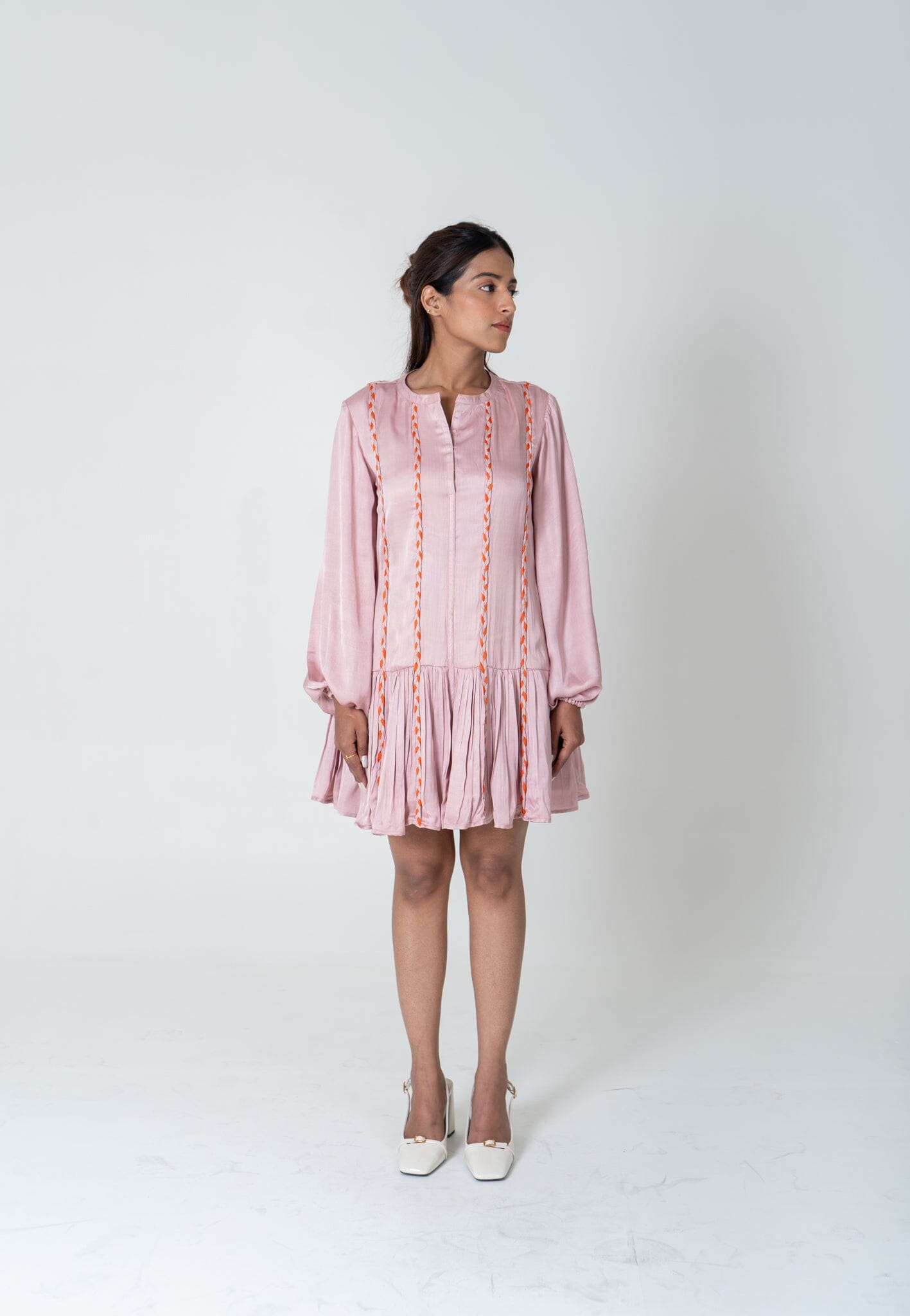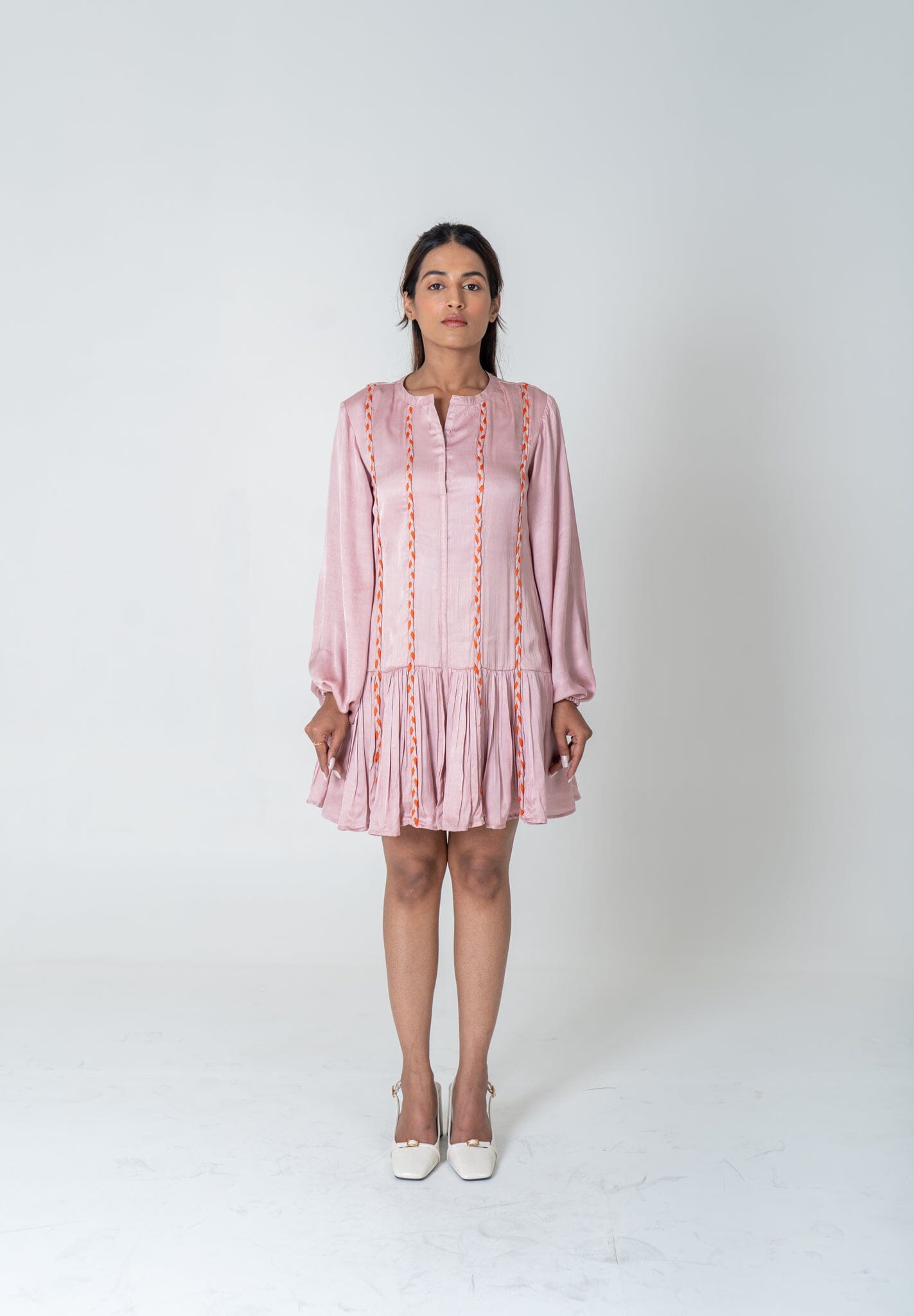 Pink-Orange Braided Short Gather Dress