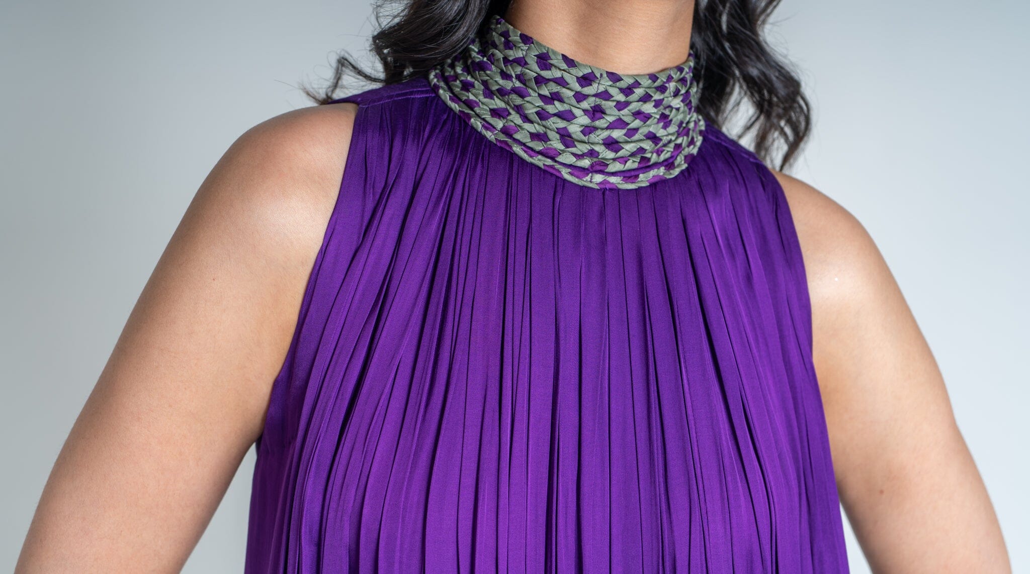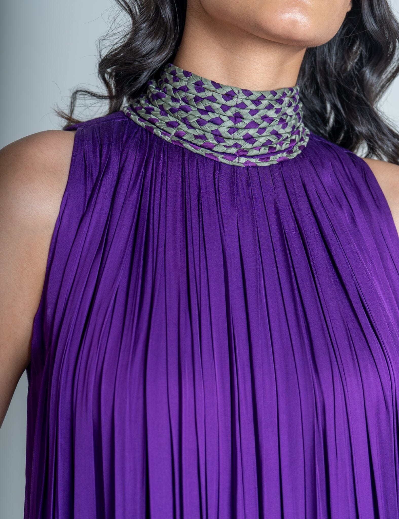 Purple-Green Braided Halter Neck Gather Gown