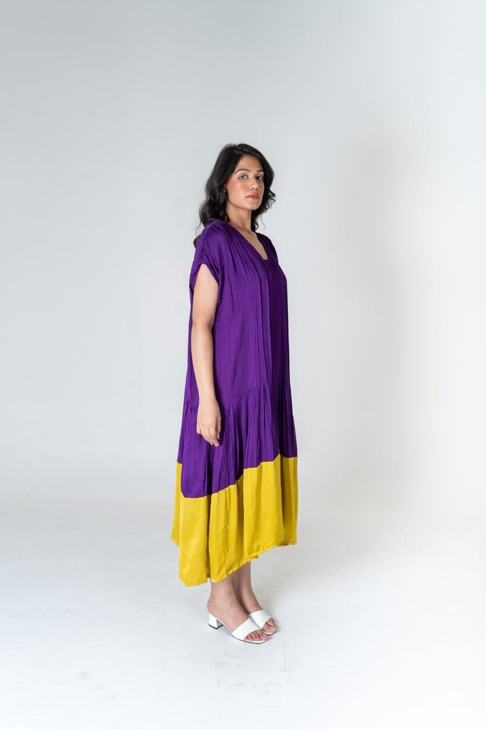 Purple-Yellow Color-Blocked Dress