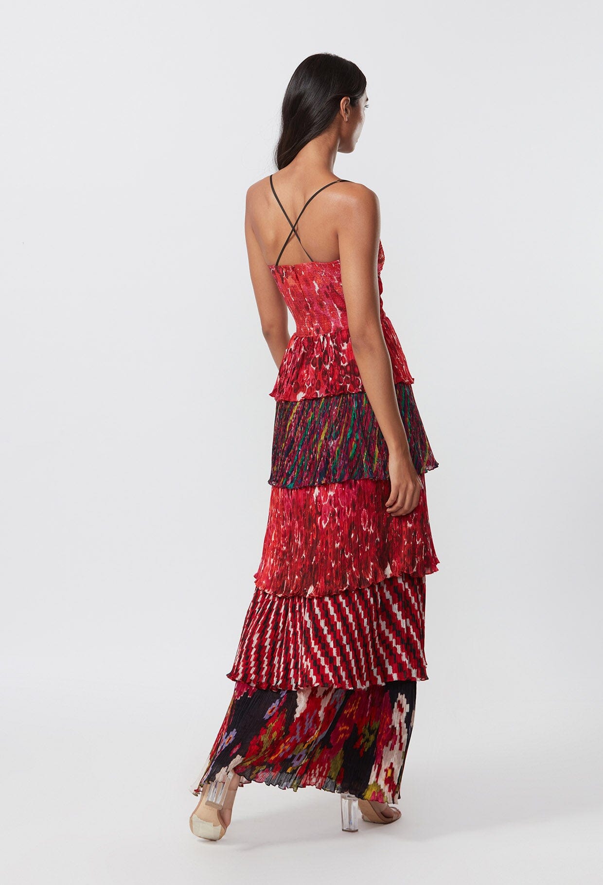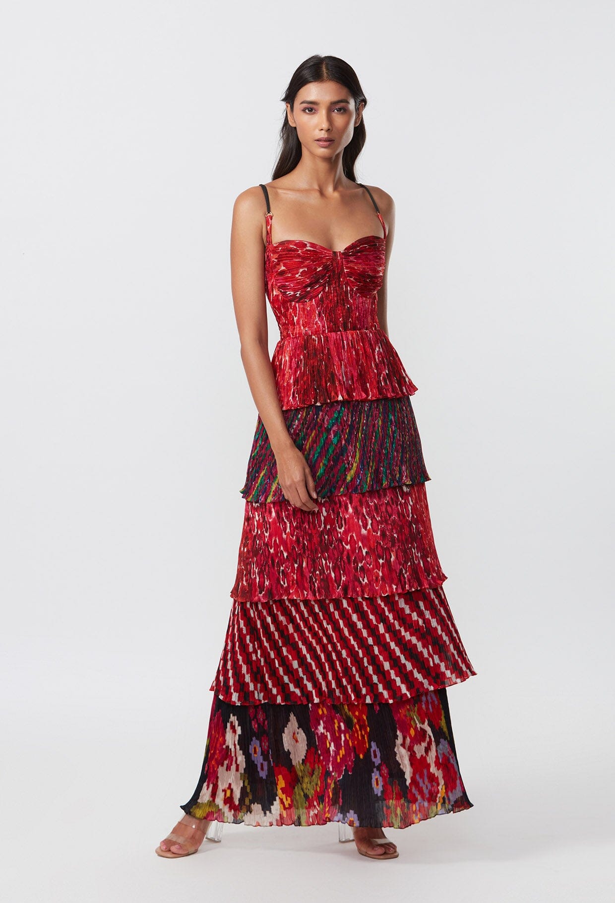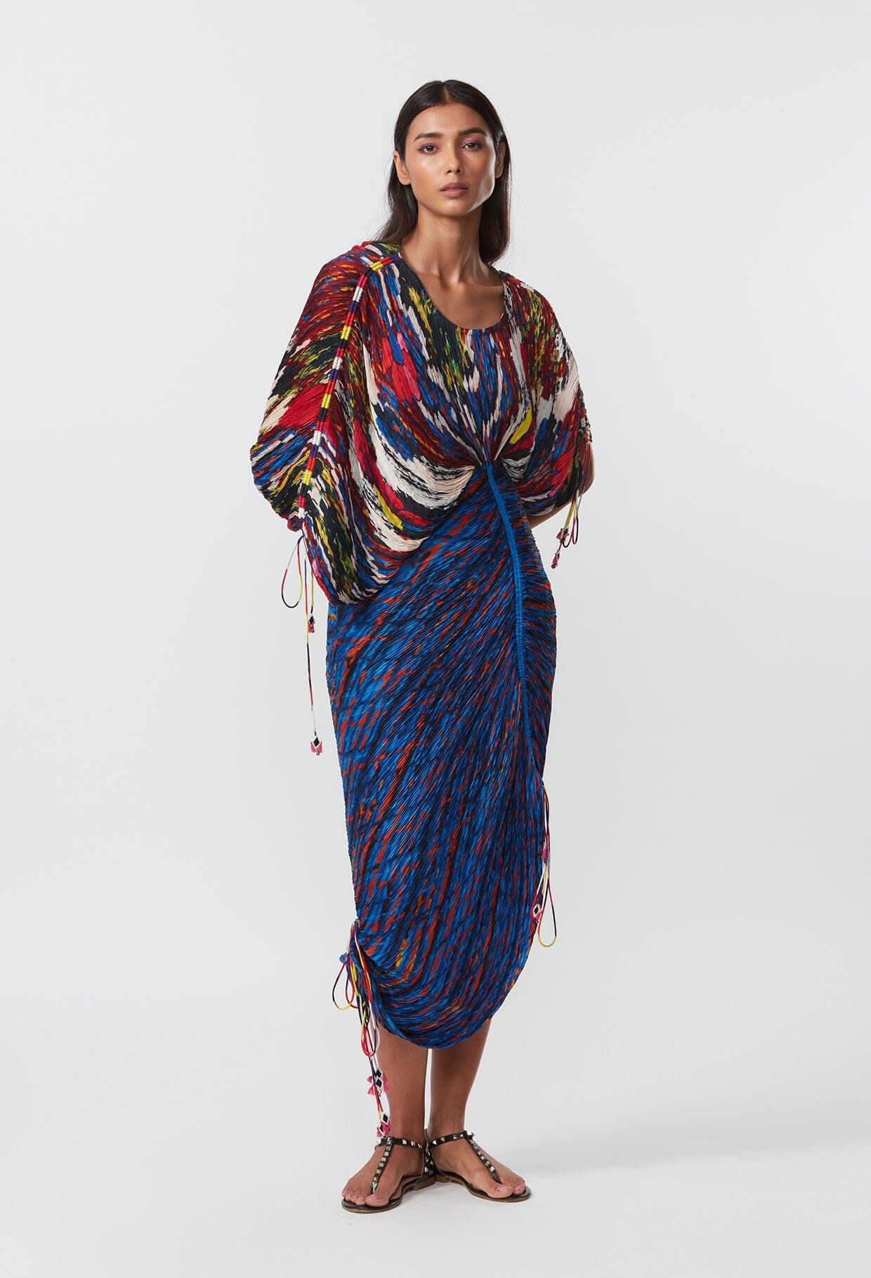 Aqua Floral Ruffled Sleeves Tiered Dress