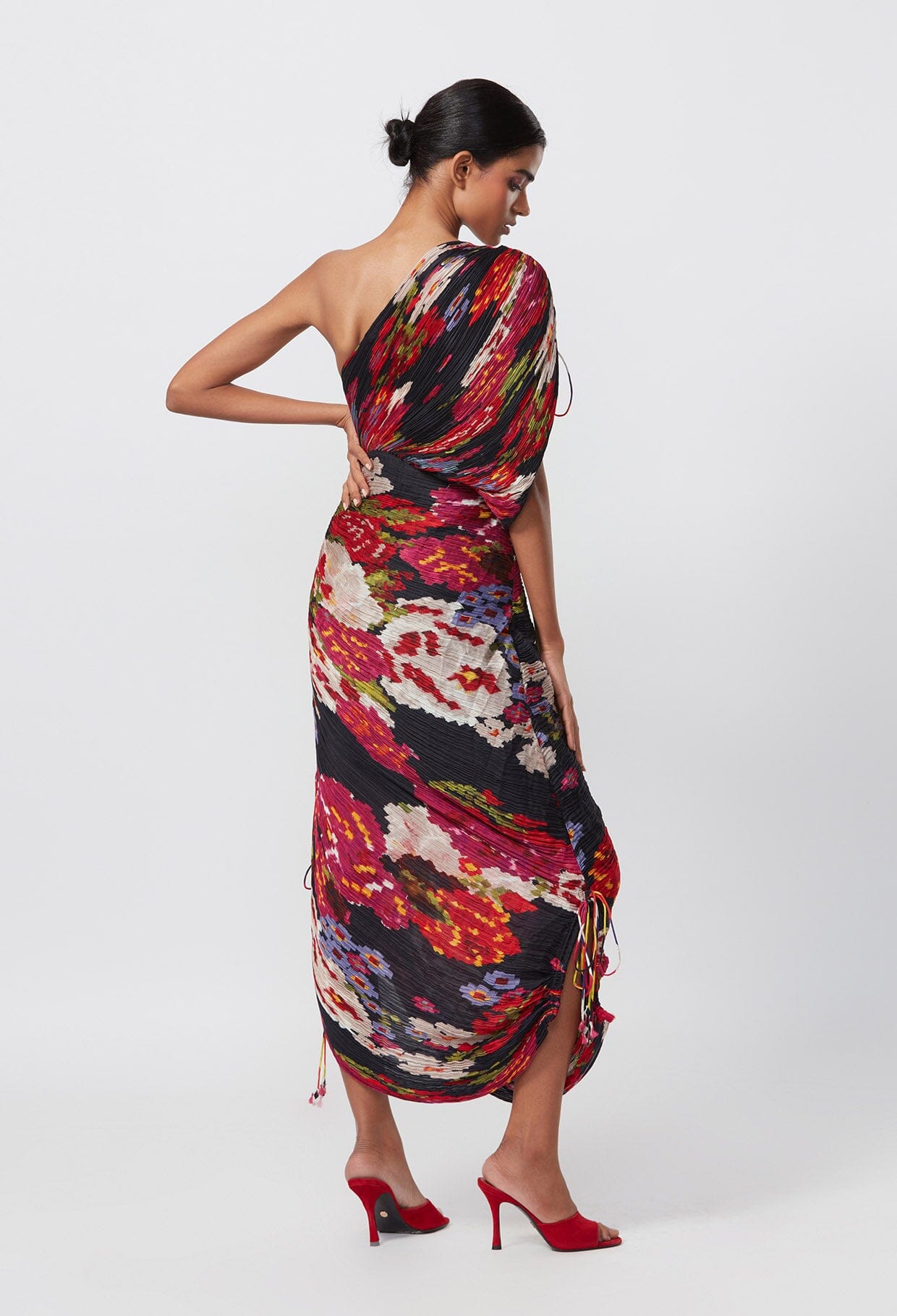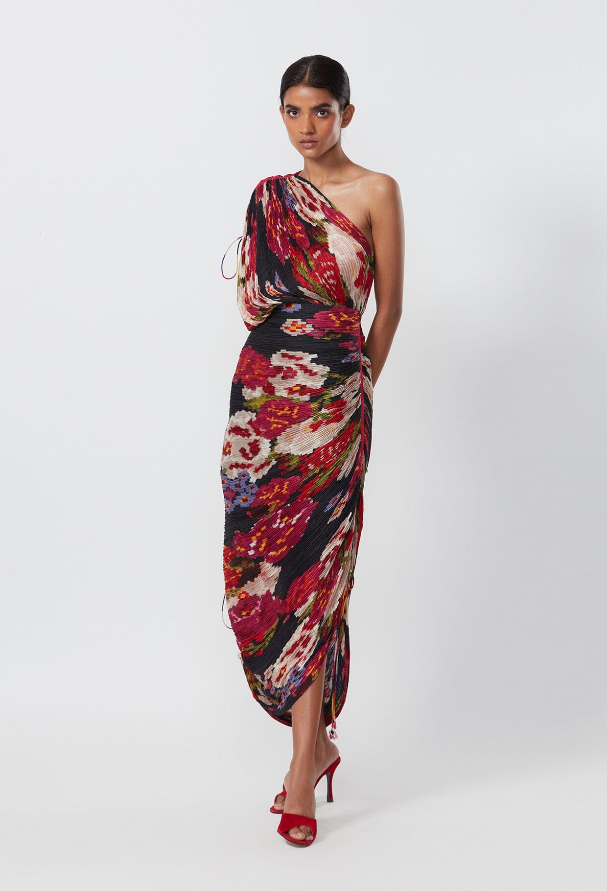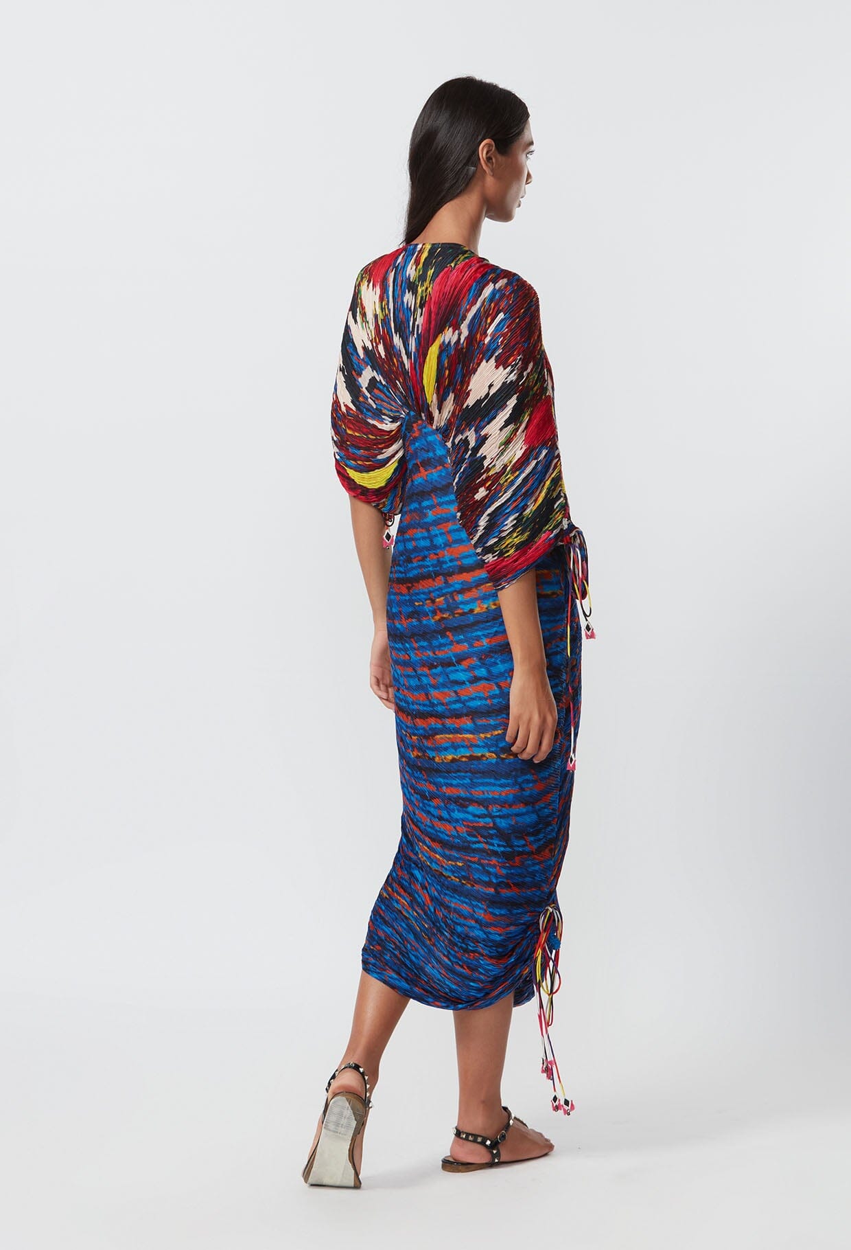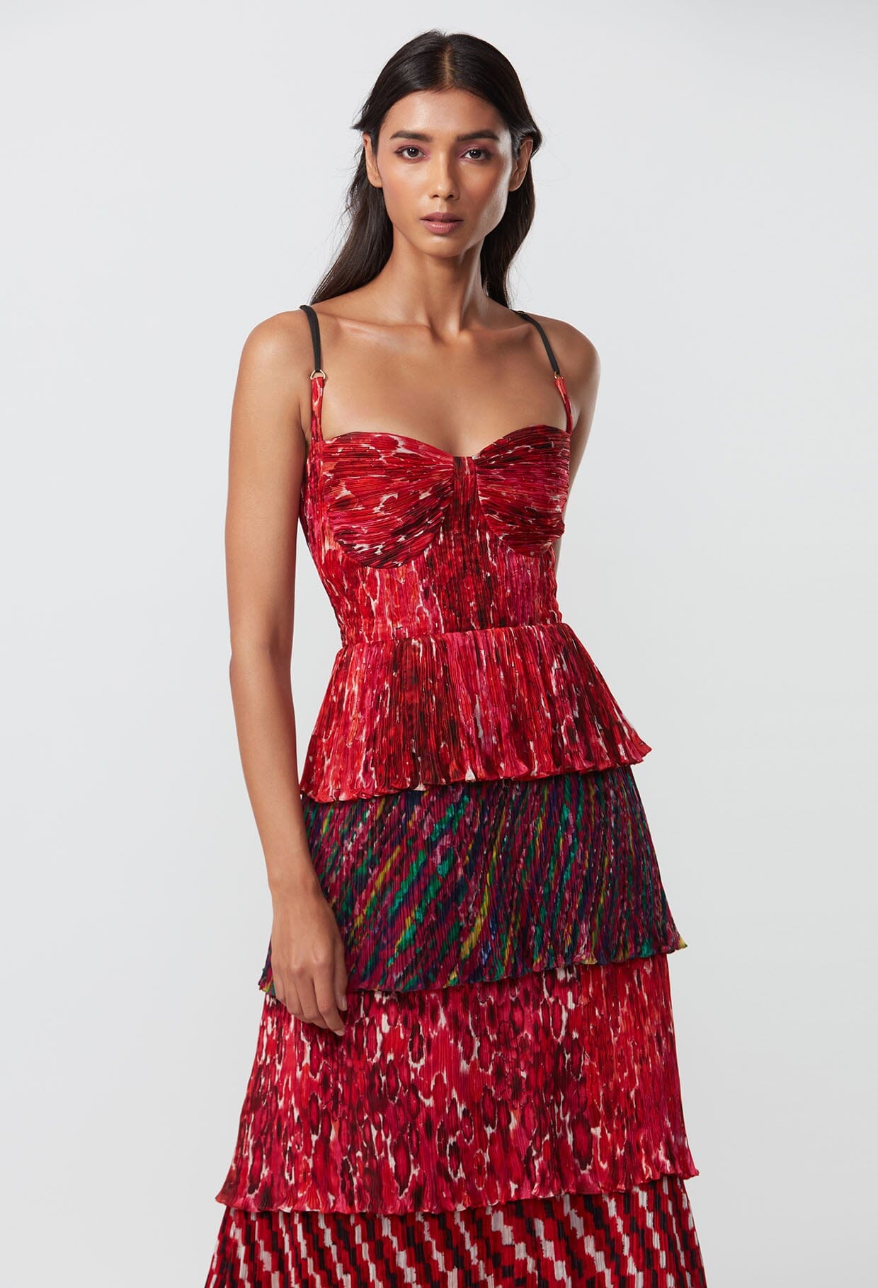 Aqua Floral Ruffled Sleeves Tiered Dress