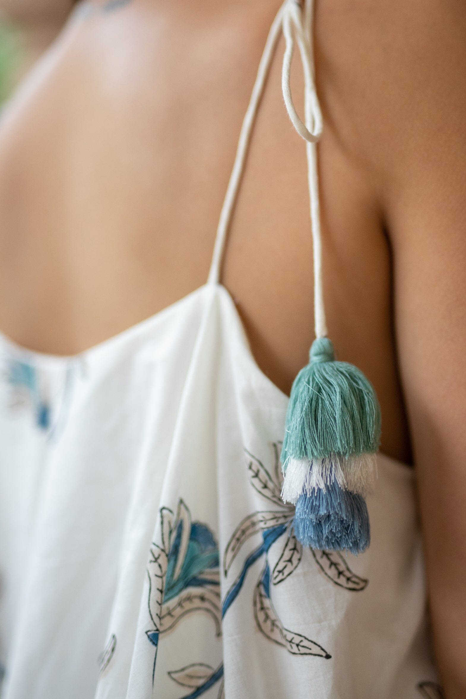Ecru-Green Halter Neck Dress