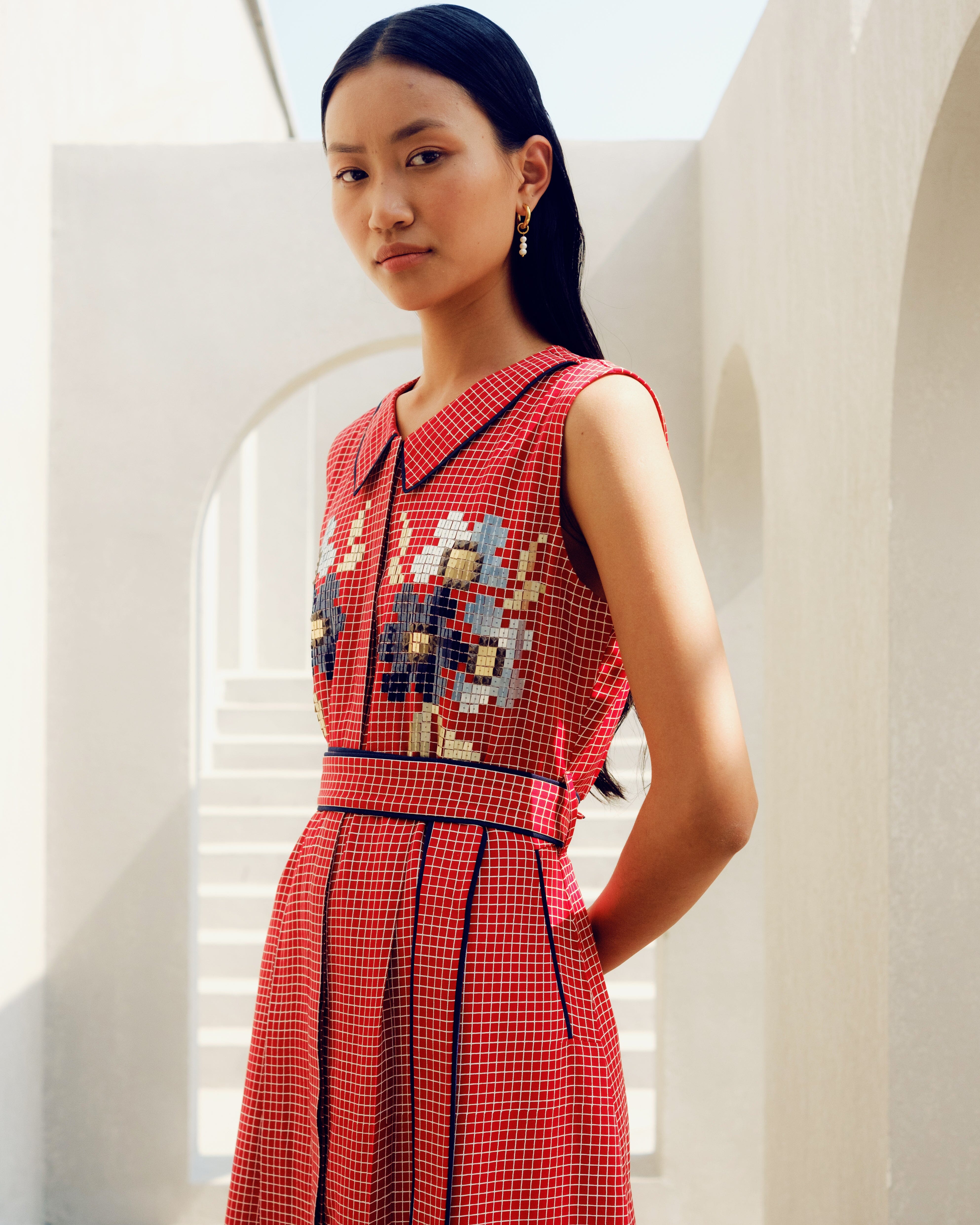 RED MINI CHECK DRESS
