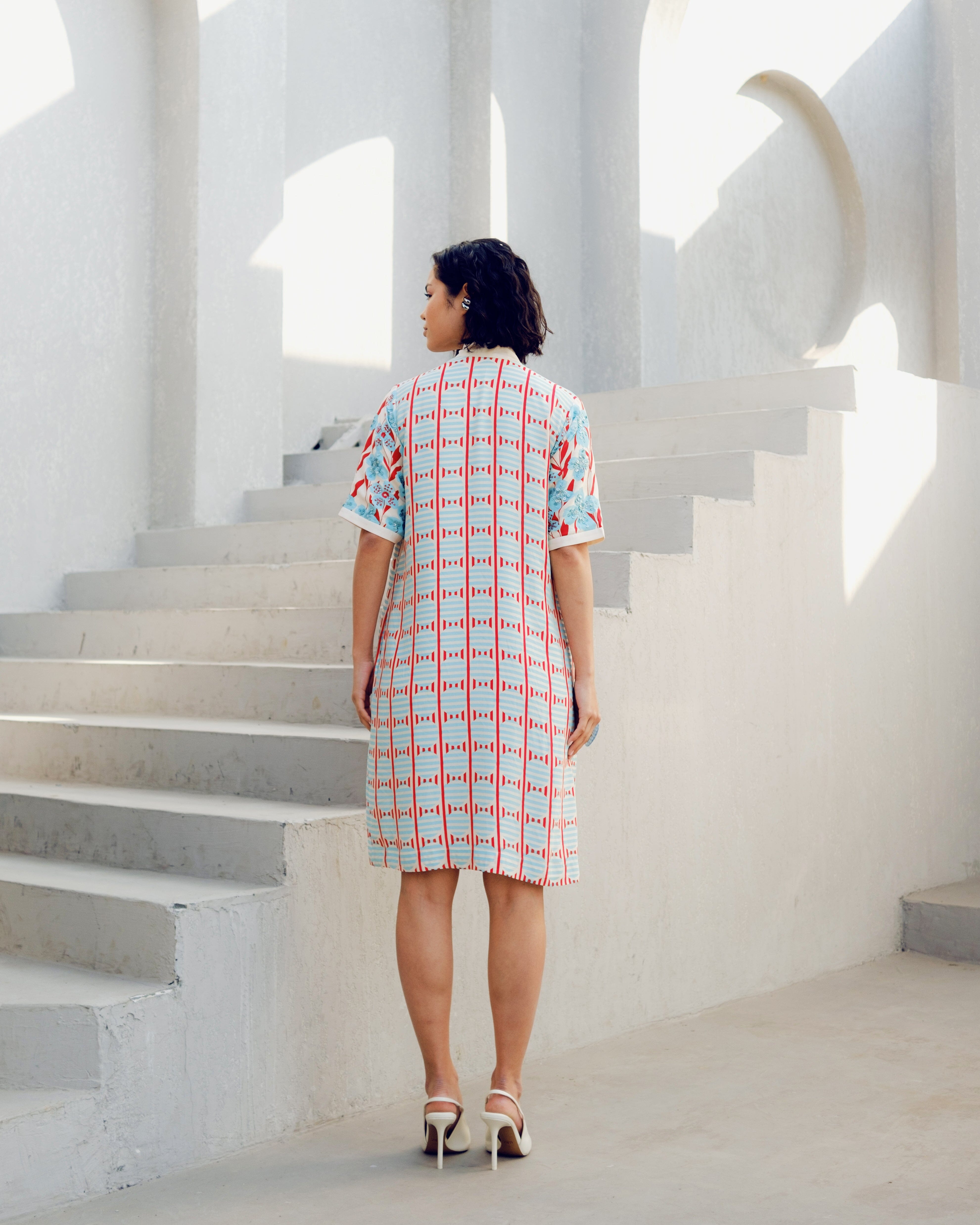 BLUE PRINT PLAY SHIRT DRESS