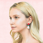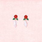 Carved rose complete with a pair of carved leaves and a pearl dangler.