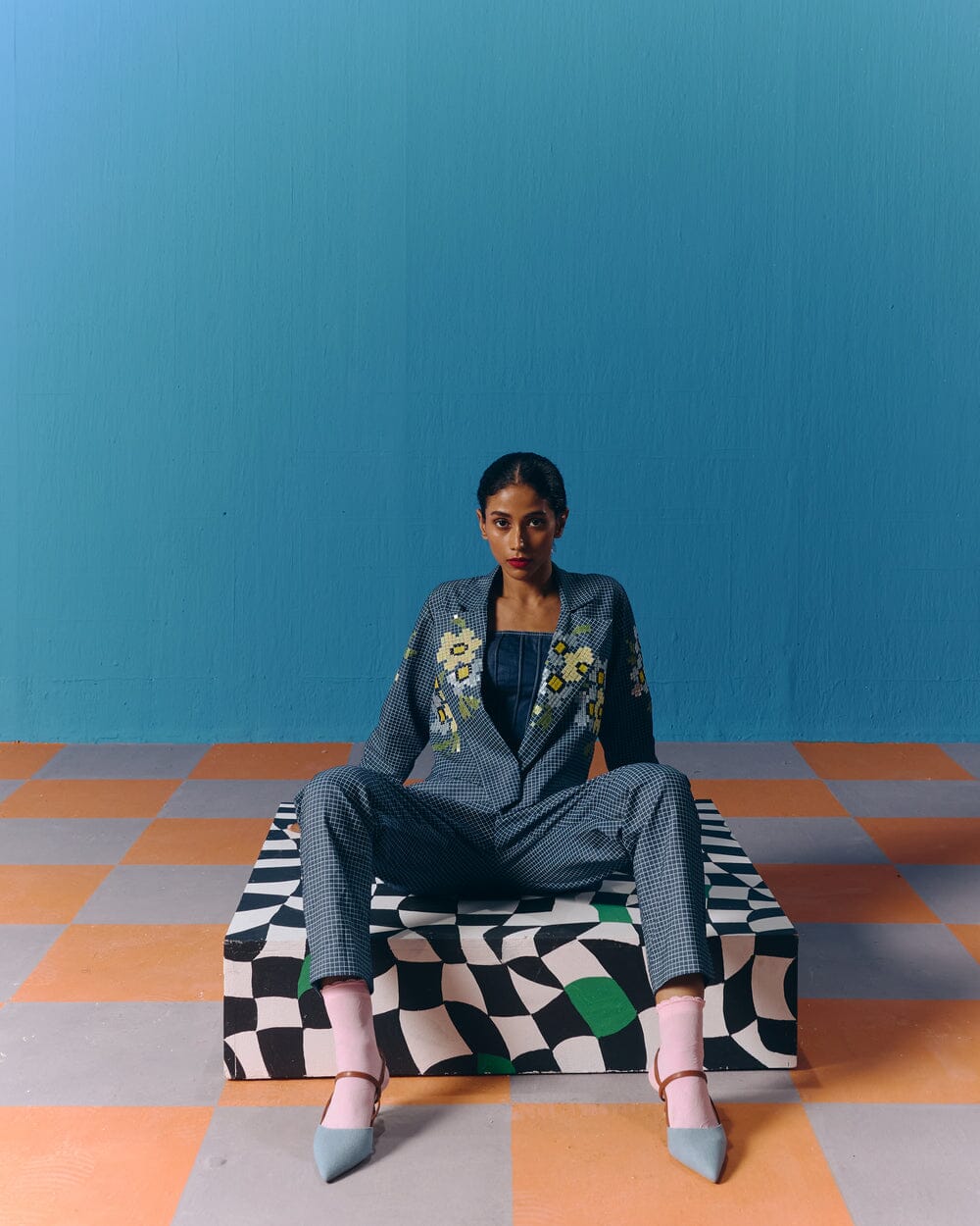 Mustard Spade EMB Bluff Jacket Set (2 PCS)