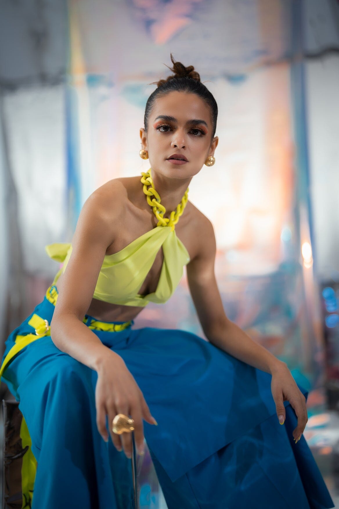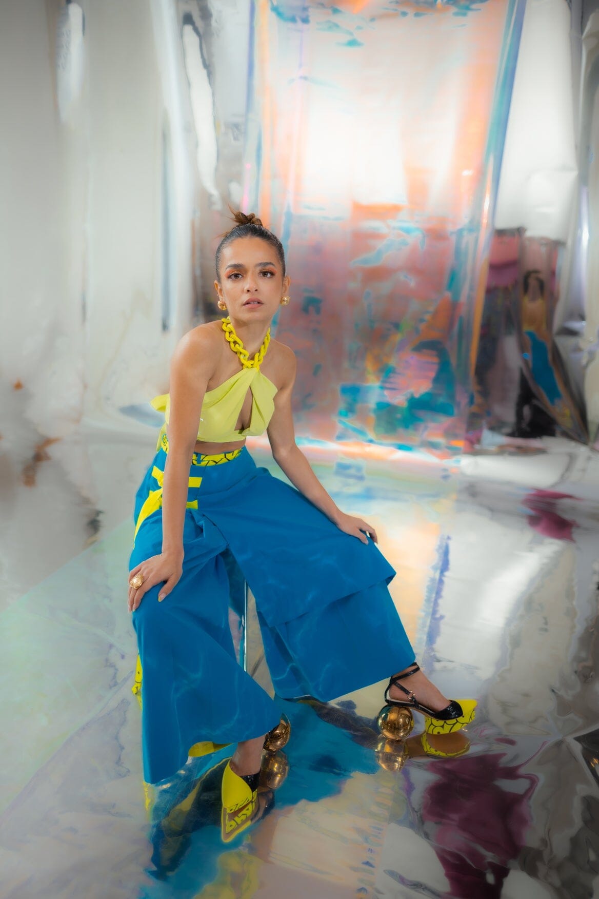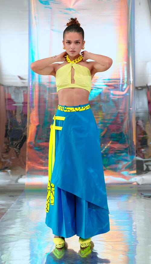 Neon Chain Bralette With Cerulean Blue Japanese Pants