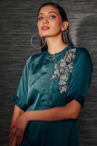 Teal Dhoti Jumpsuit With Floral Embroidery