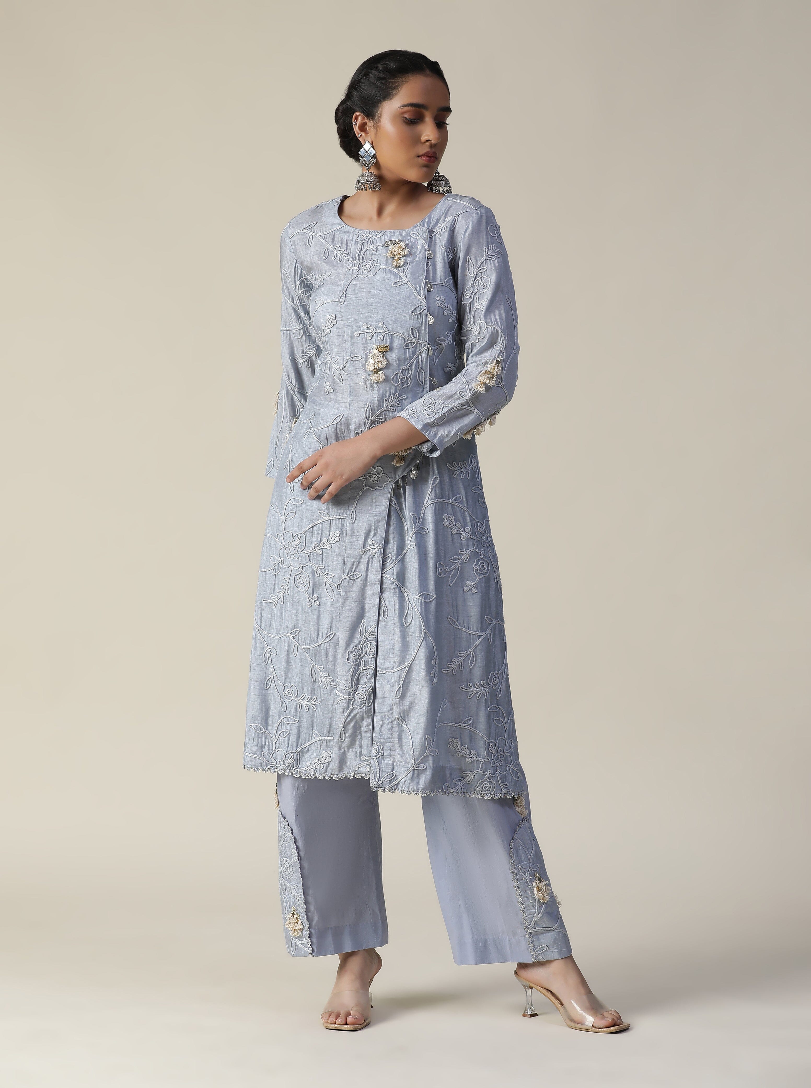 ICE BLUE EMBROIDERED SUIT SET