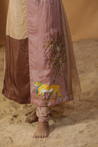 Featuring our peach pink block print leopard scarf suit set with gota work on the kurta. Comes with churidaar and dupatta.