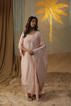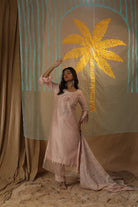 Featuring our pink centre palm tree embroidered suit. Comes with pants and dupatta