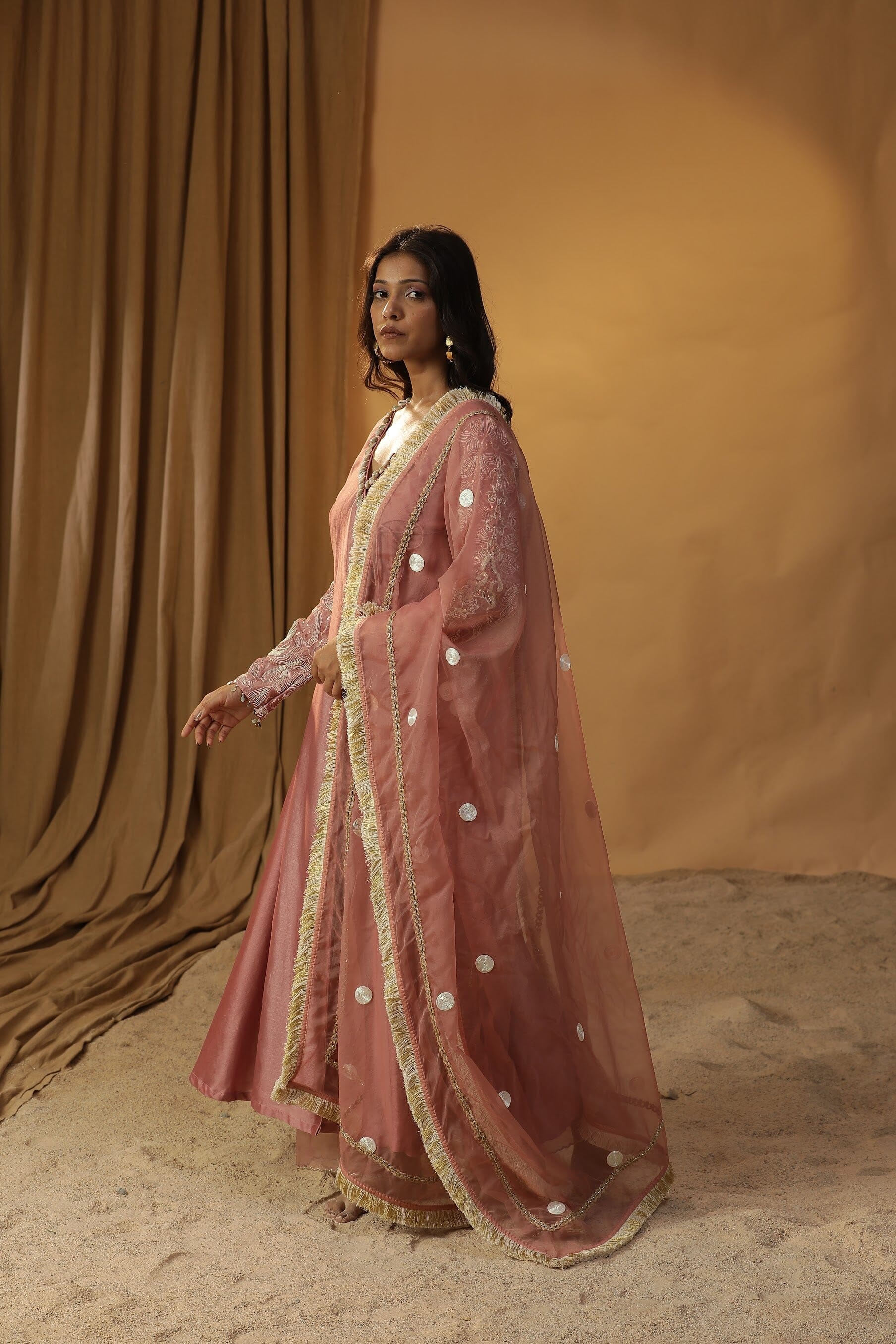 Featuring our Pyaazi angrakha suit set with Dori work on both the sleeves. Comes with pant and dupatta