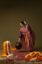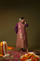 Featuring dusty pink silk kurta in a line cut. Comes with pants and brocade detailed sleeves. The dupatta is beautifully handpainted.