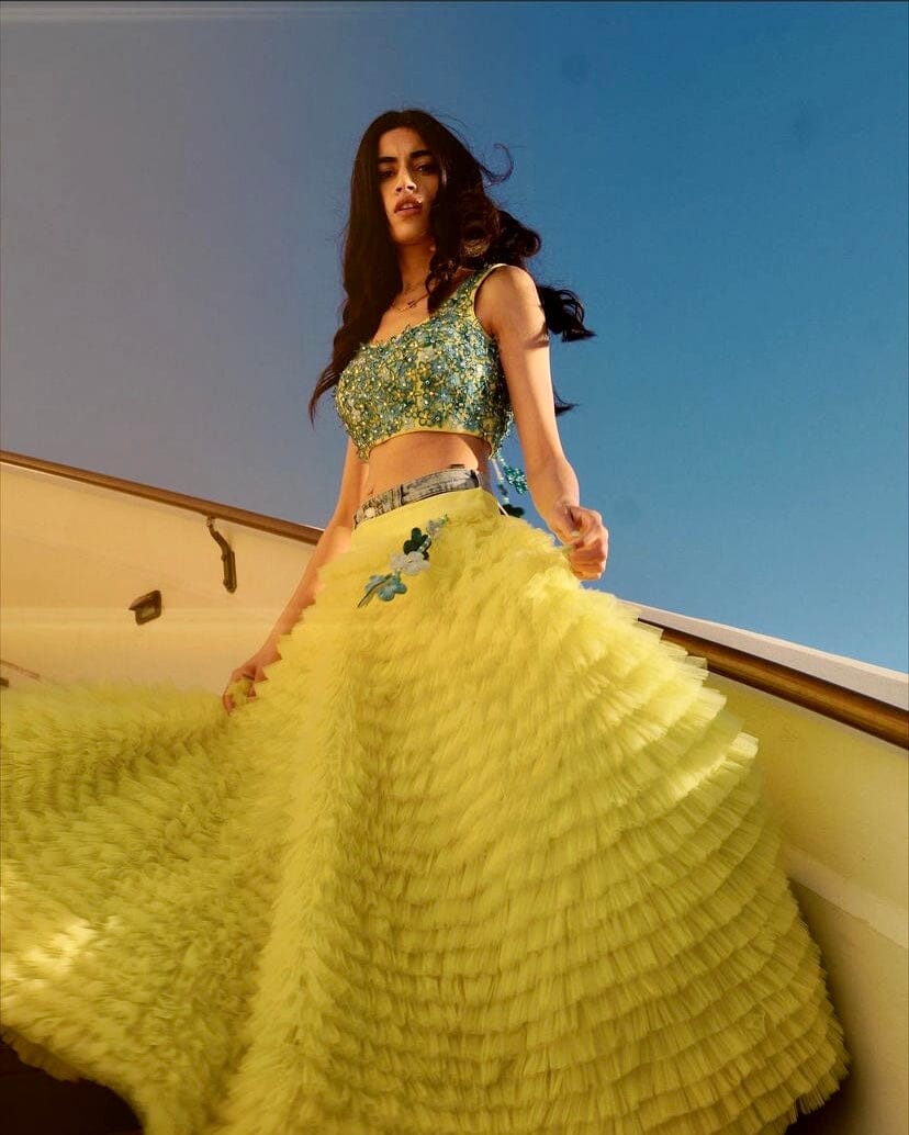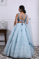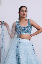 Icy Blue Tulle Embroidered Lehenga Set
