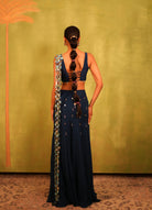 Noir Mermaid Skirt Pre-Stitched Saree with Mirror Embroidered Blouse
