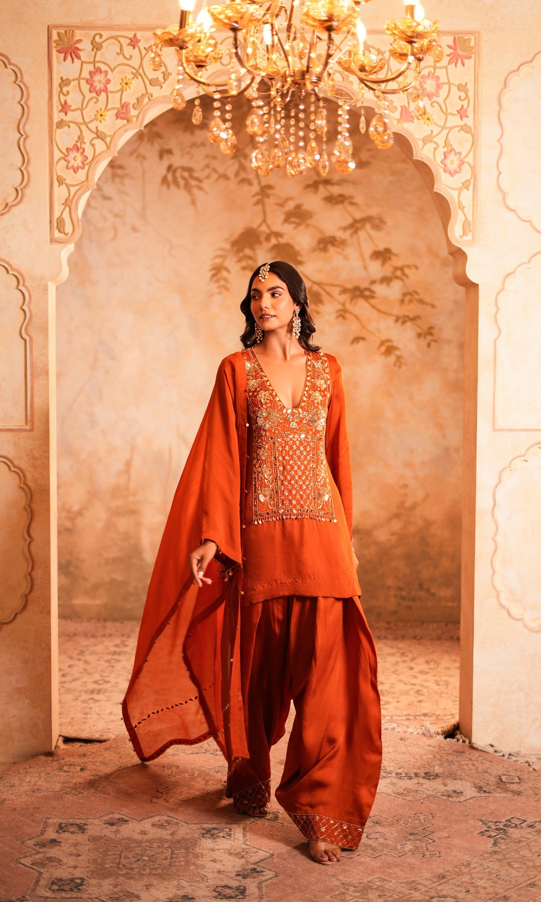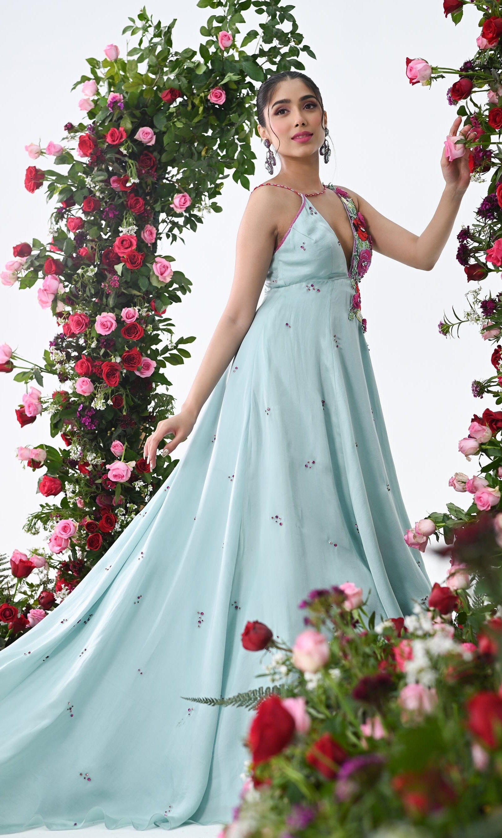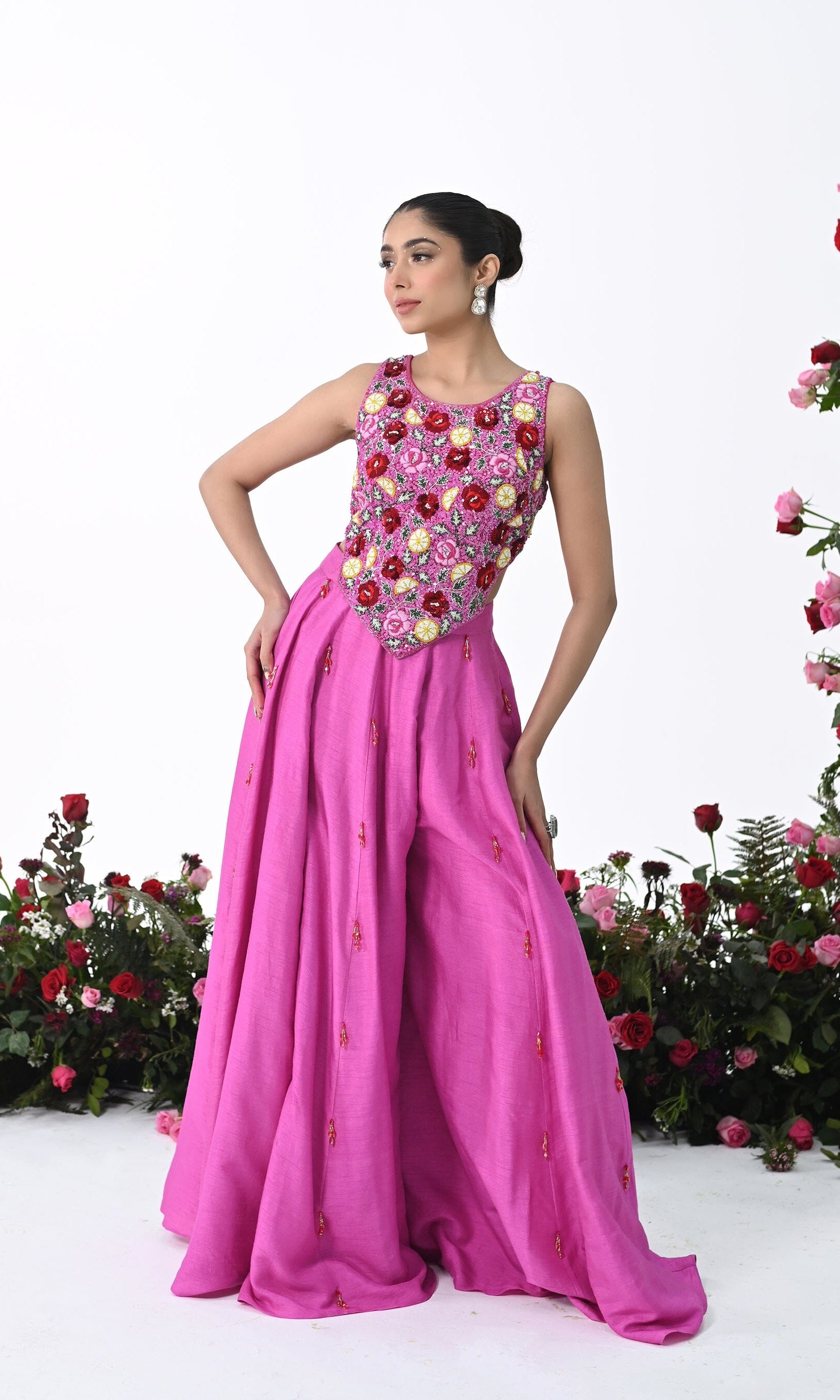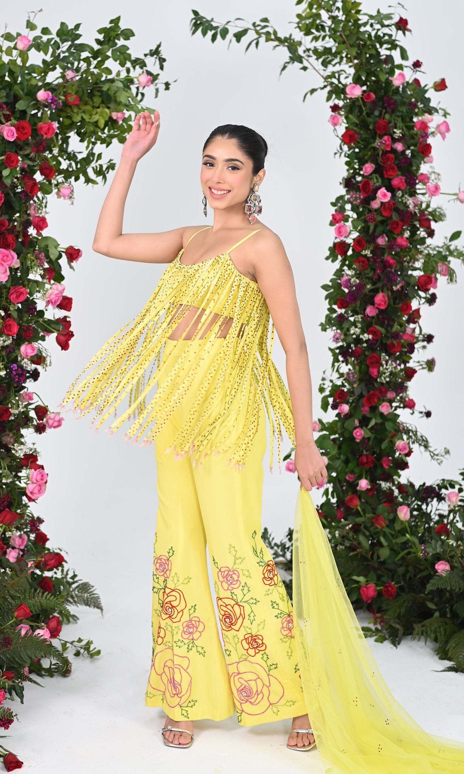 Kiran means rays of sun. The namesake label is based in India. The collection is for anyone who wants to wear something unique and different from the traditional silvers, golds and conventional ethnic motifs, to a design language that celebrates hearty embroidery set in vibrant, eye catching colour palettes and the most fun and joyous silhouettes- and today this brand aesthetic is signatory to the Kiran Kalsi label.