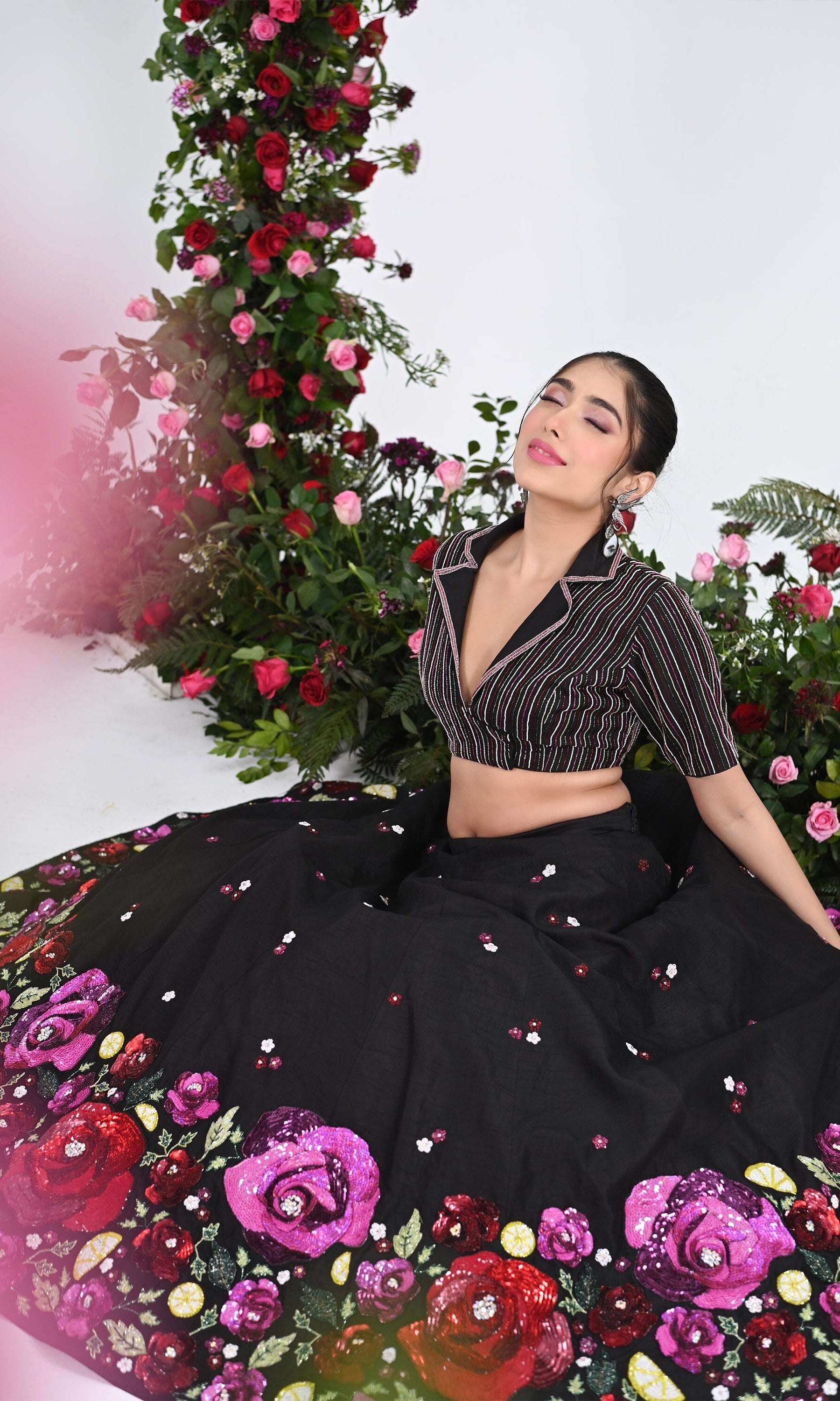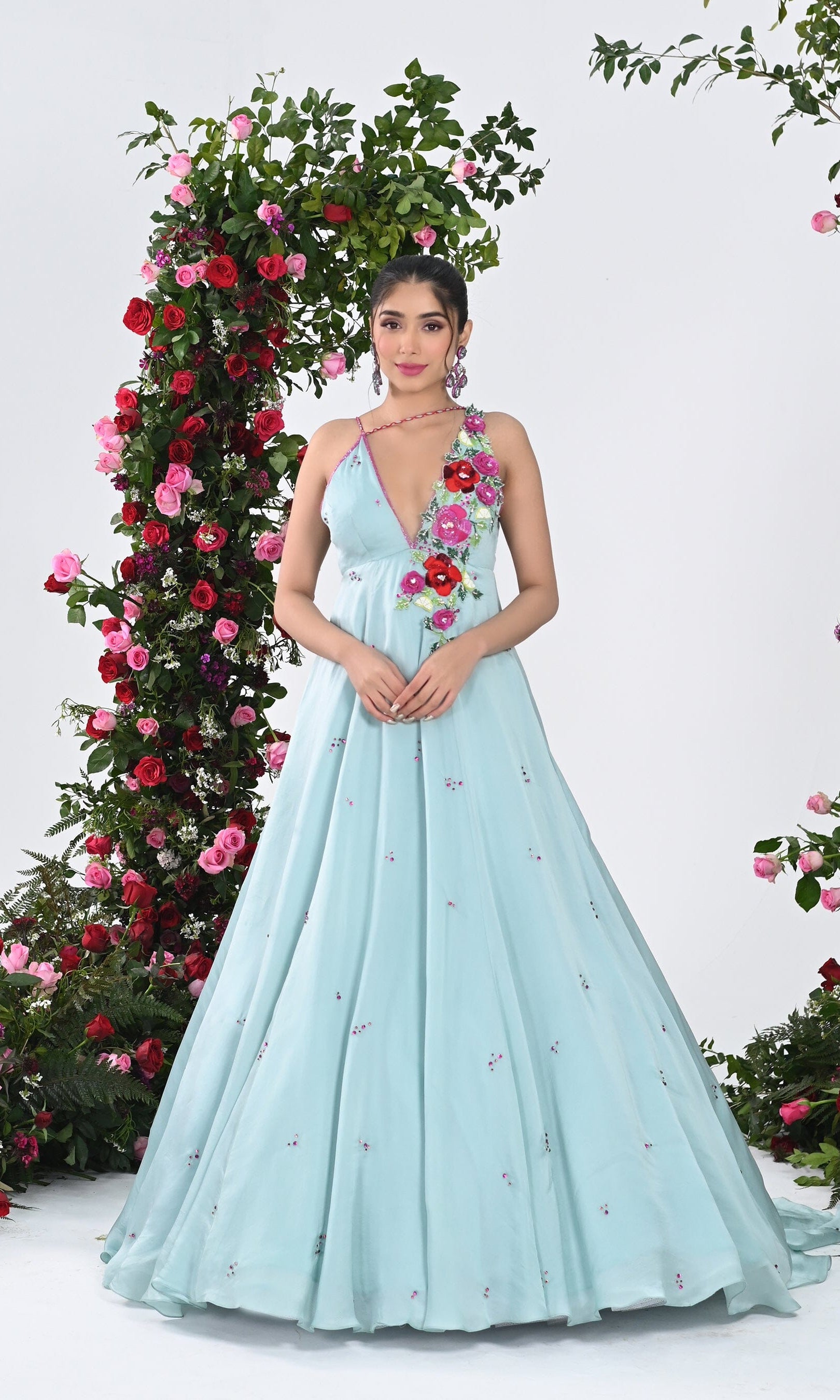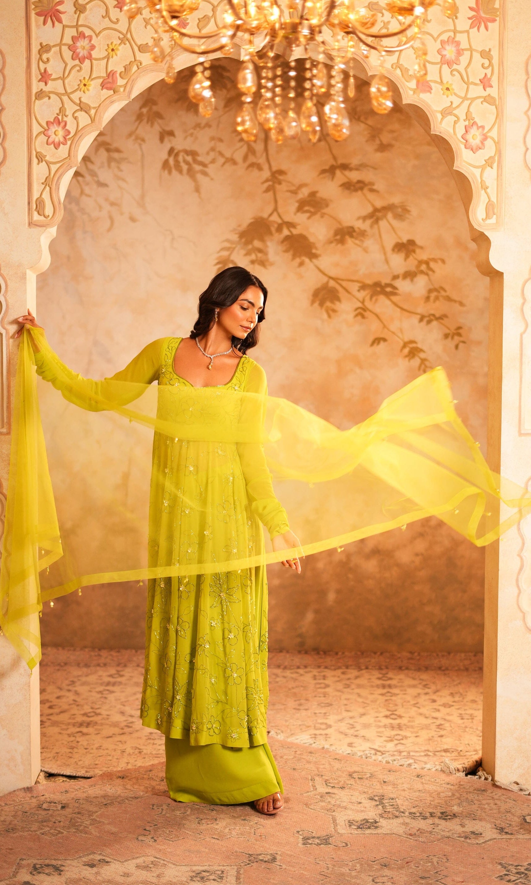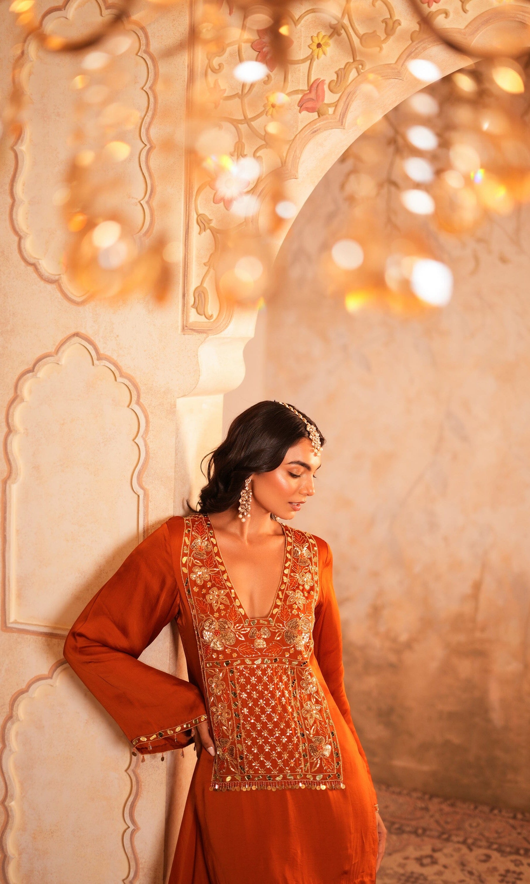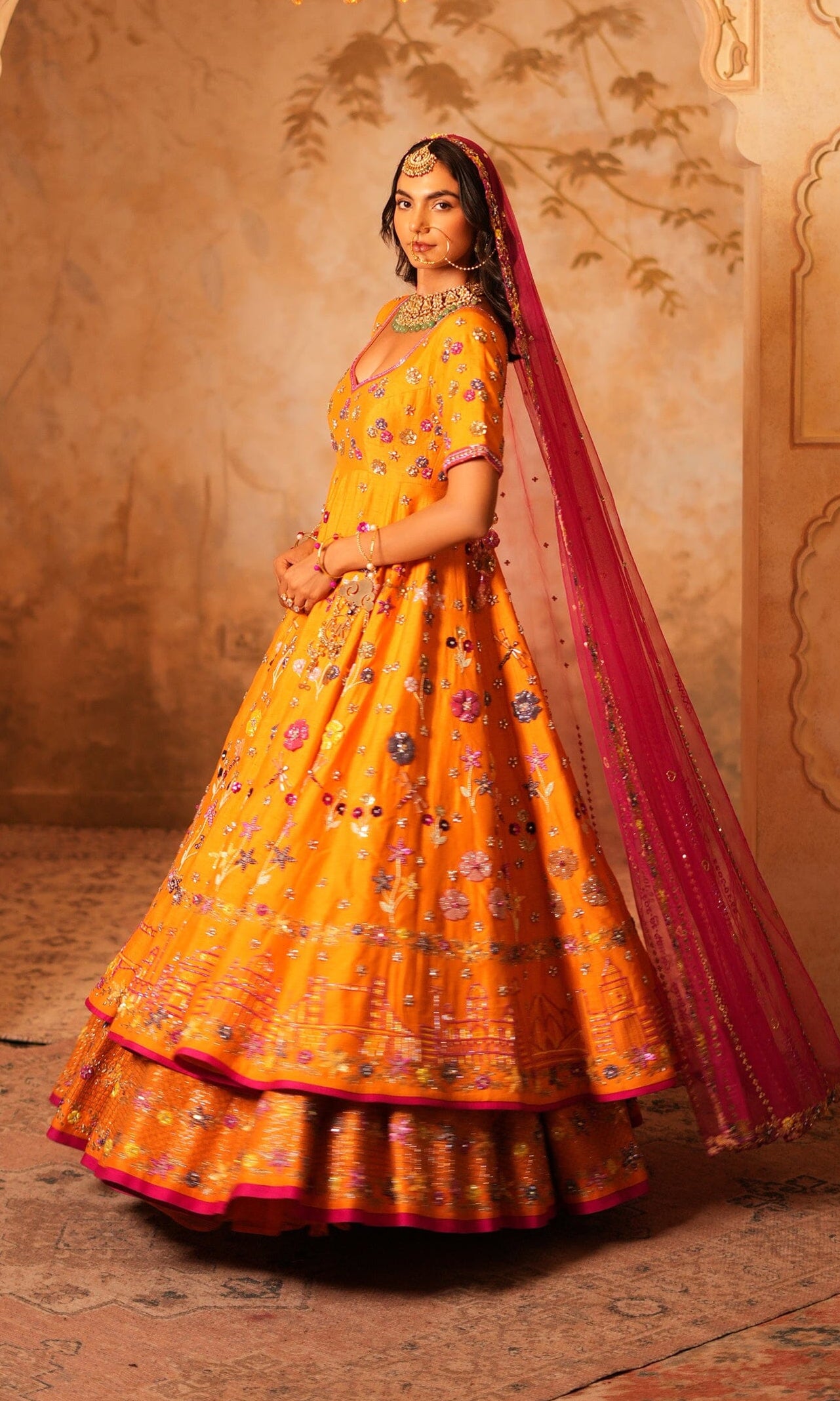 Kiran means rays of sun. The namesake label is based in India. The collection is for anyone who wants to wear something unique and different from the traditional silvers, golds and conventional ethnic motifs, to a design language that celebrates hearty embroidery set in vibrant, eye catching colour palettes and the most fun and joyous silhouettes- and today this brand aesthetic is signatory to the Kiran Kalsi label.