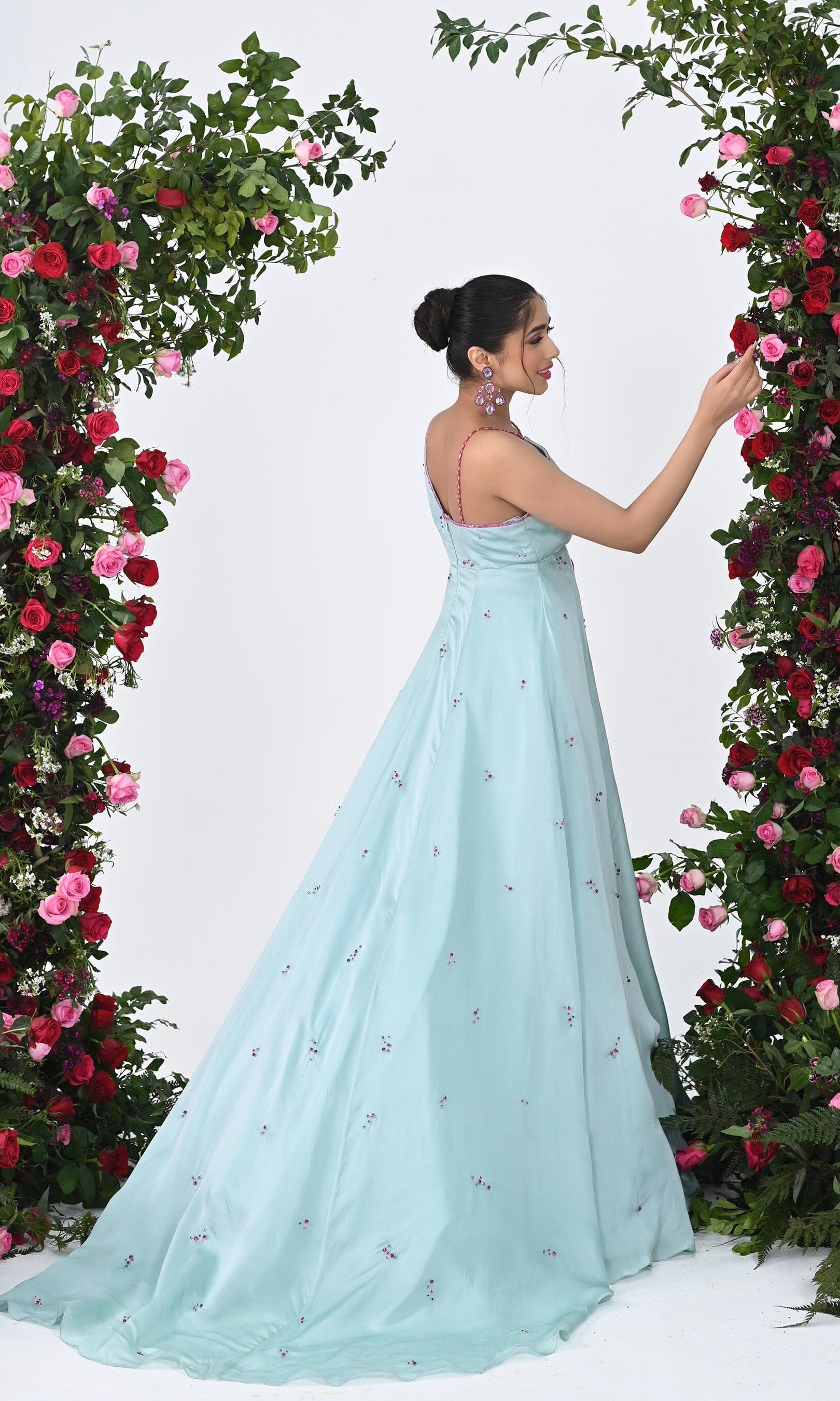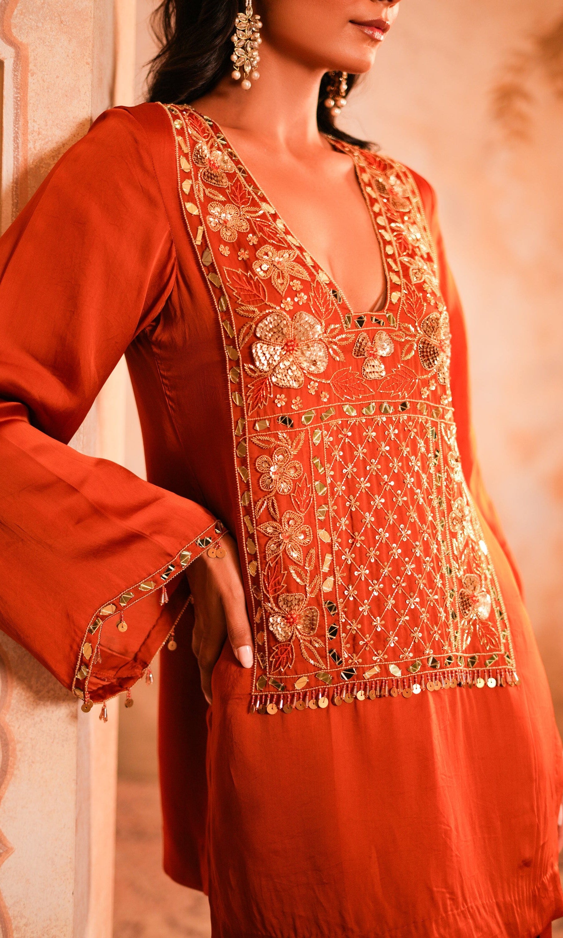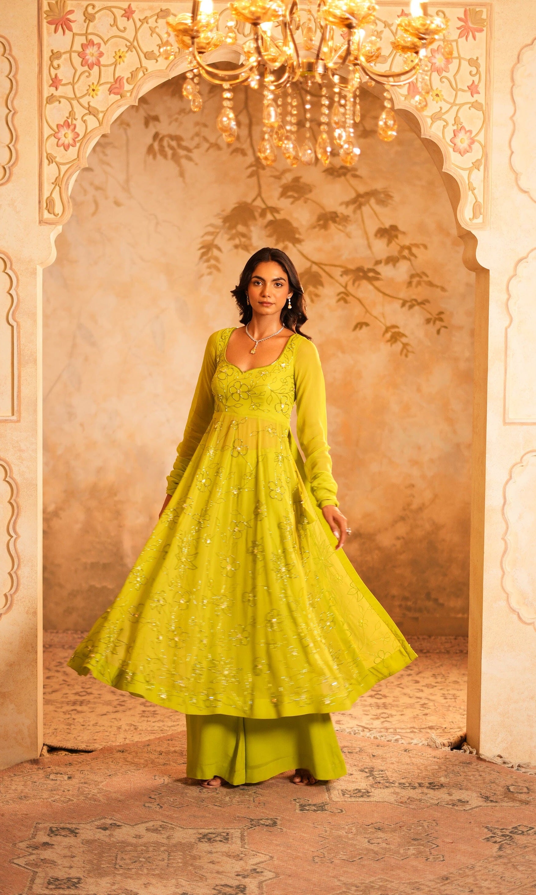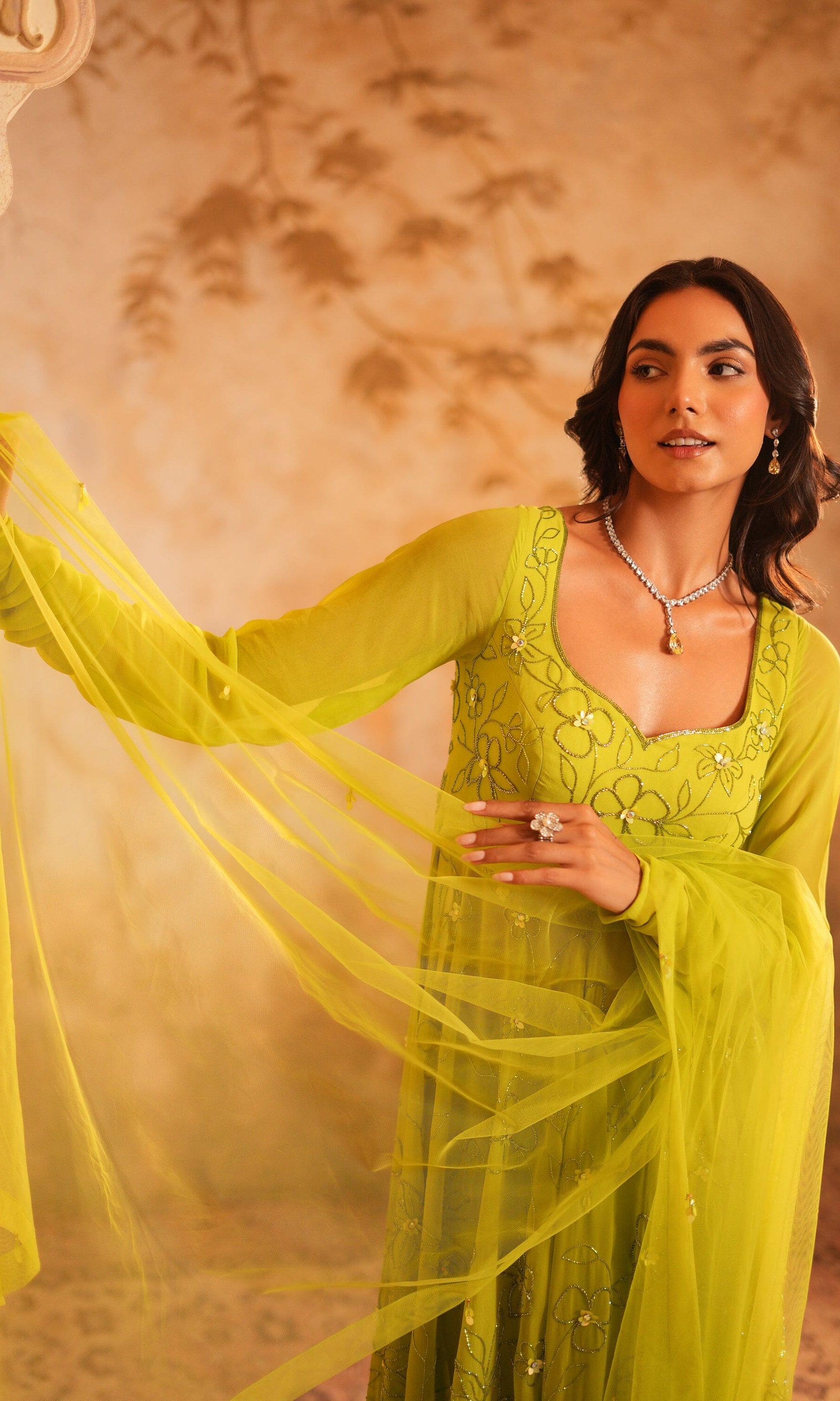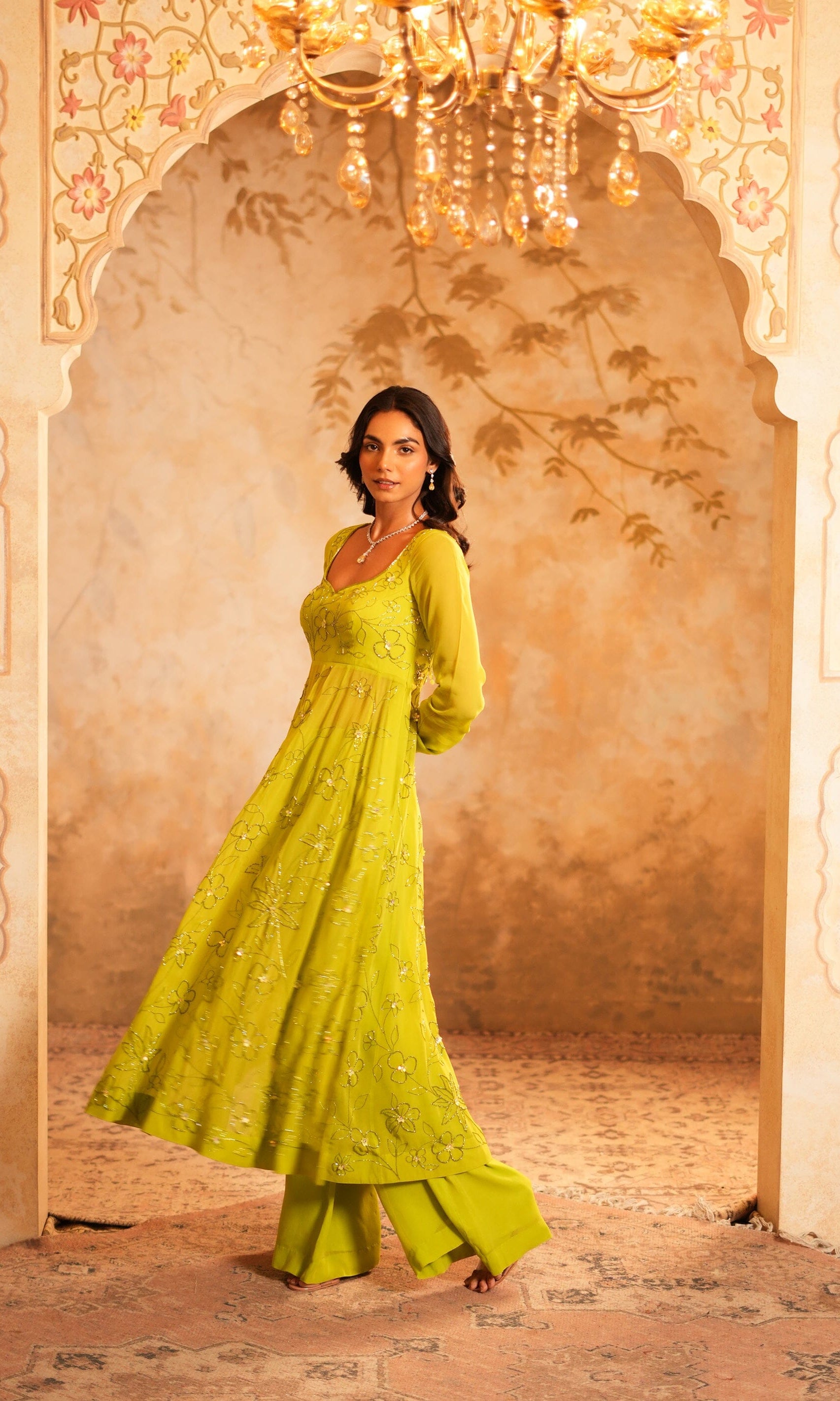 Kiran means rays of sun. The namesake label is based in India. The collection is for anyone who wants to wear something unique and different from the traditional silvers, golds and conventional ethnic motifs, to a design language that celebrates hearty embroidery set in vibrant, eye catching colour palettes and the most fun and joyous silhouettes- and today this brand aesthetic is signatory to the Kiran Kalsi label.
