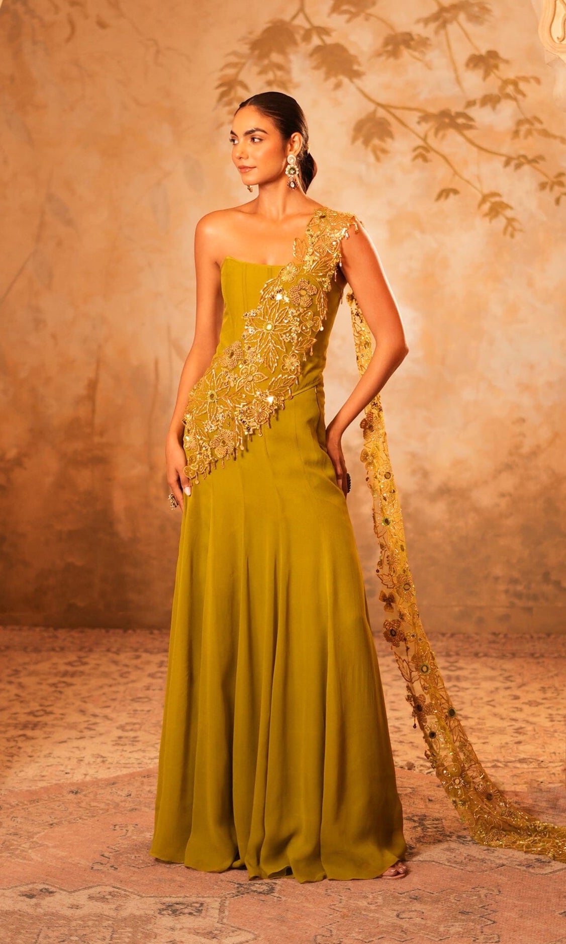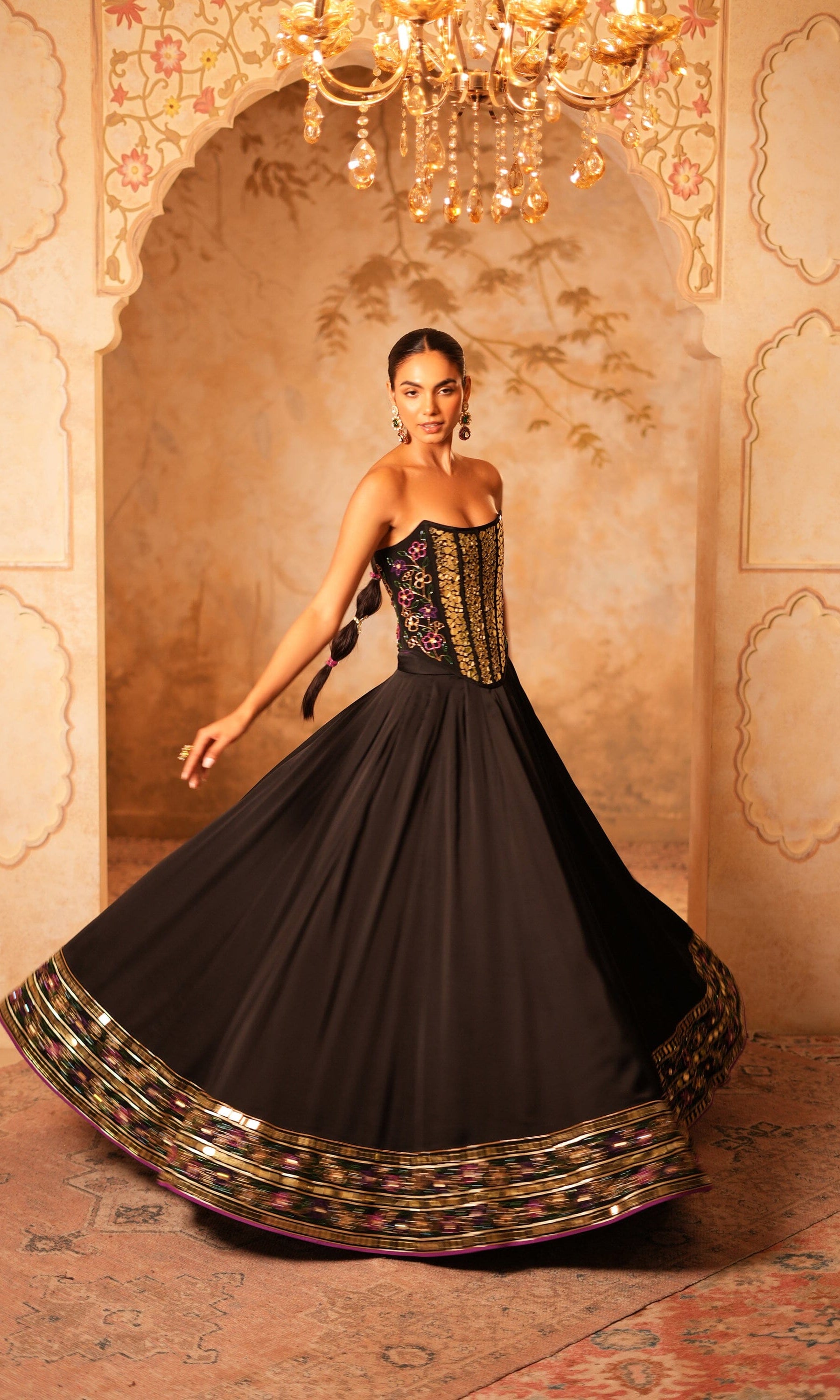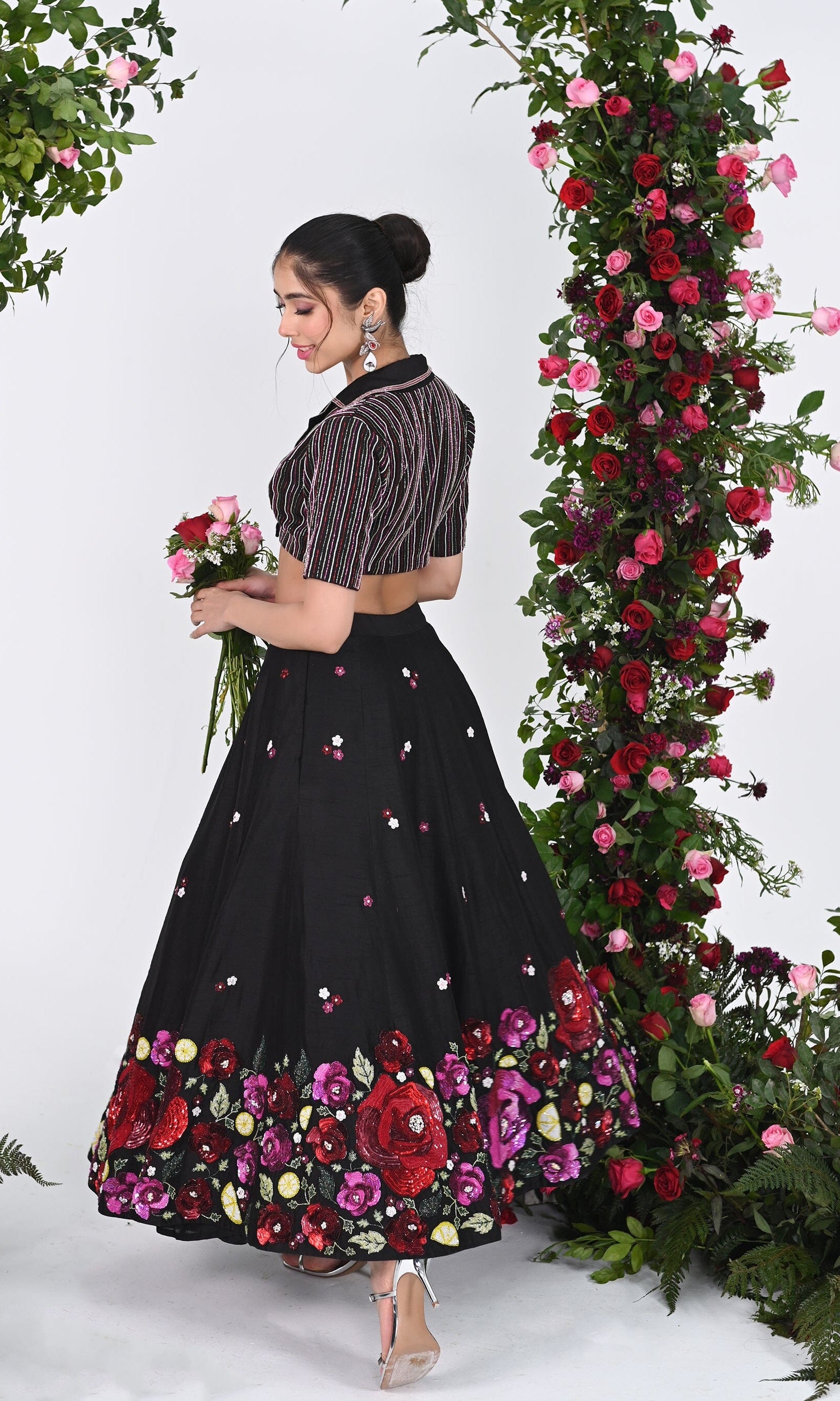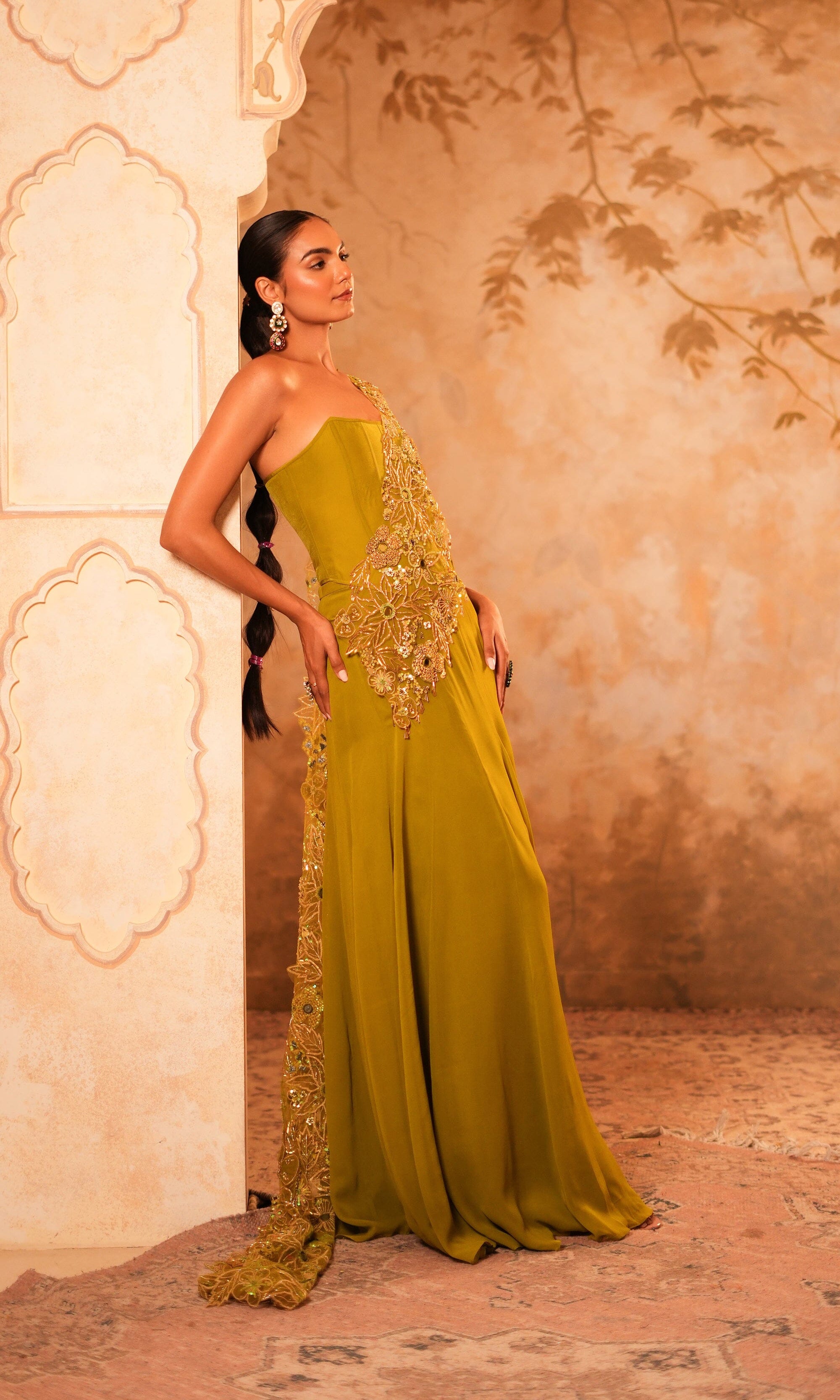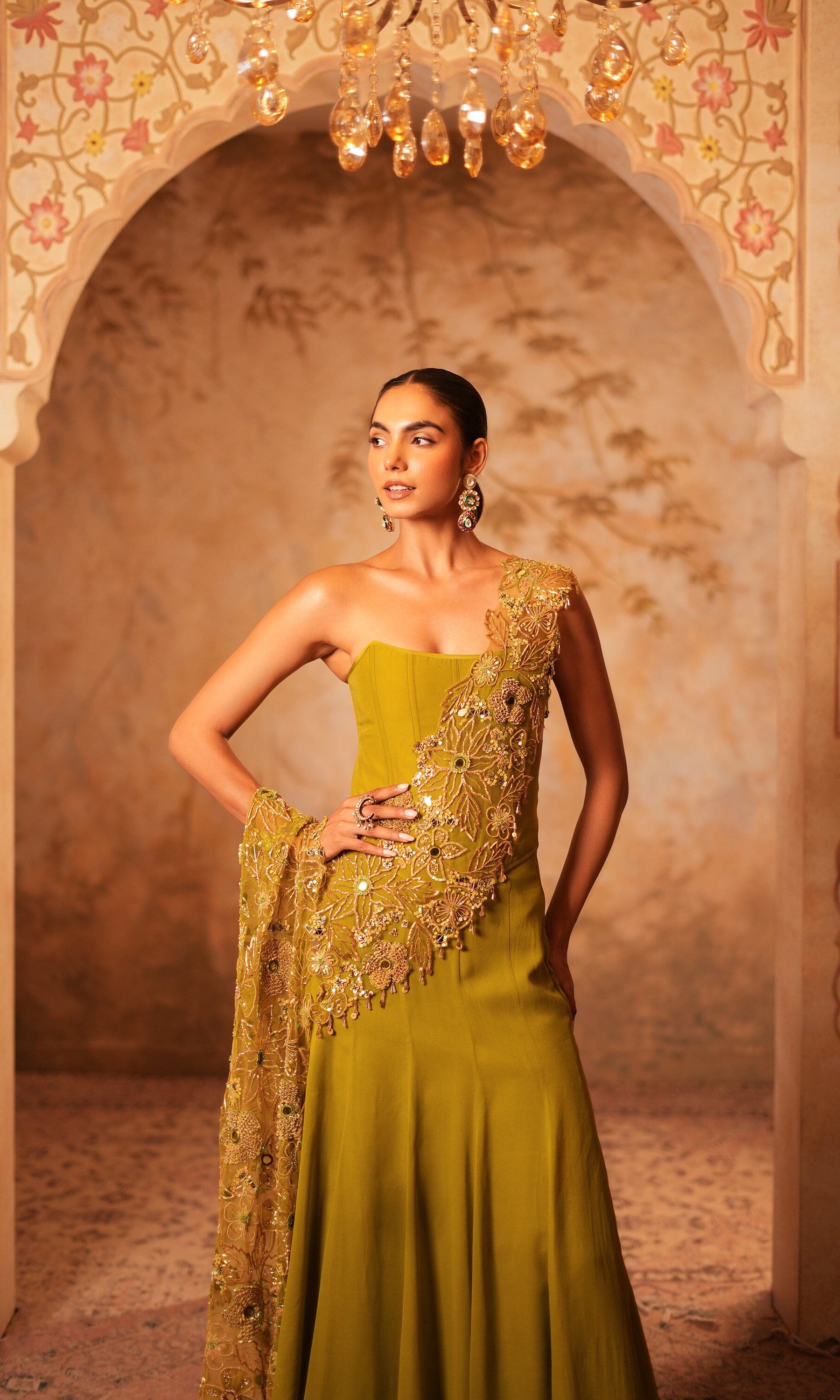 Kiran means rays of sun. The namesake label is based in India. The collection is for anyone who wants to wear something unique and different from the traditional silvers, golds and conventional ethnic motifs, to a design language that celebrates hearty embroidery set in vibrant, eye catching colour palettes and the most fun and joyous silhouettes- and today this brand aesthetic is signatory to the Kiran Kalsi label.