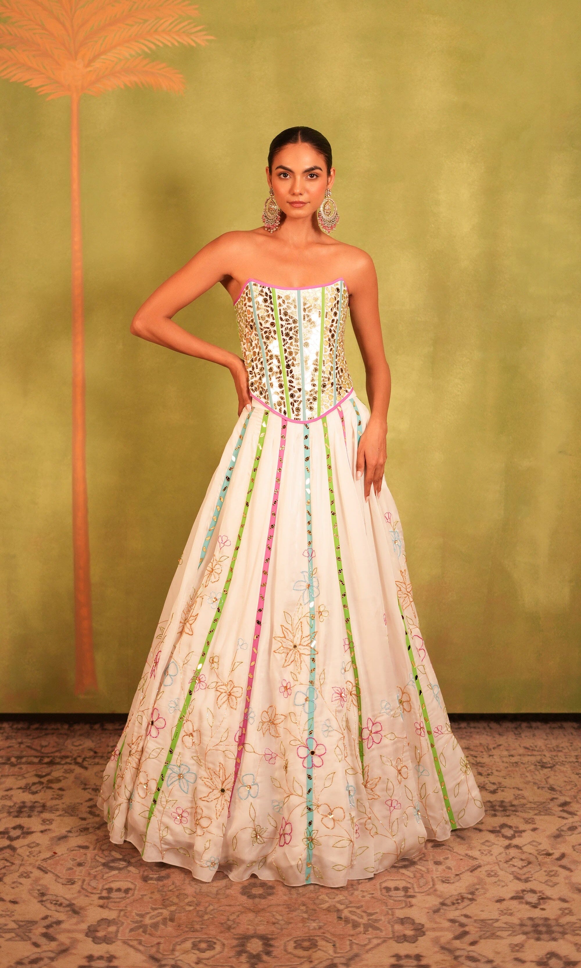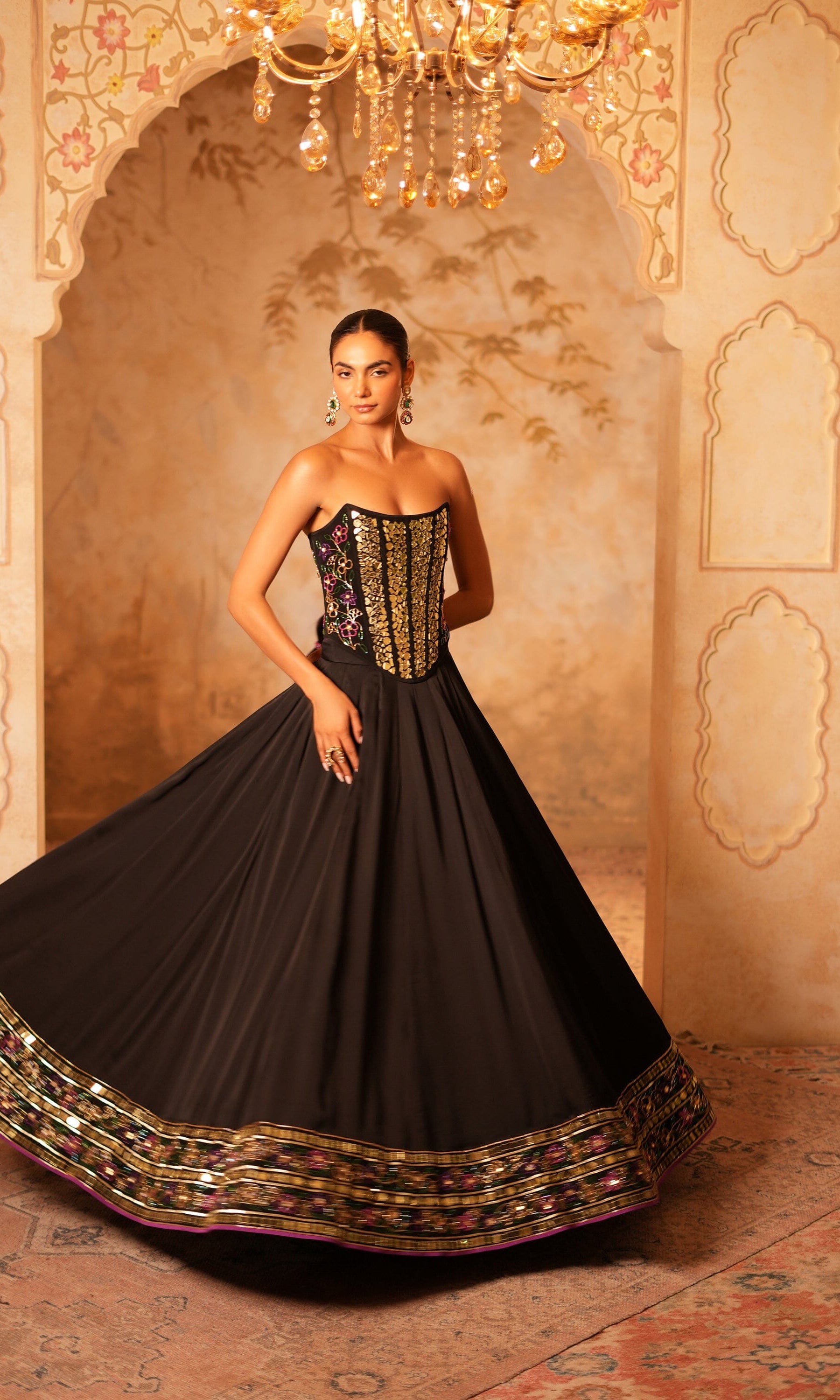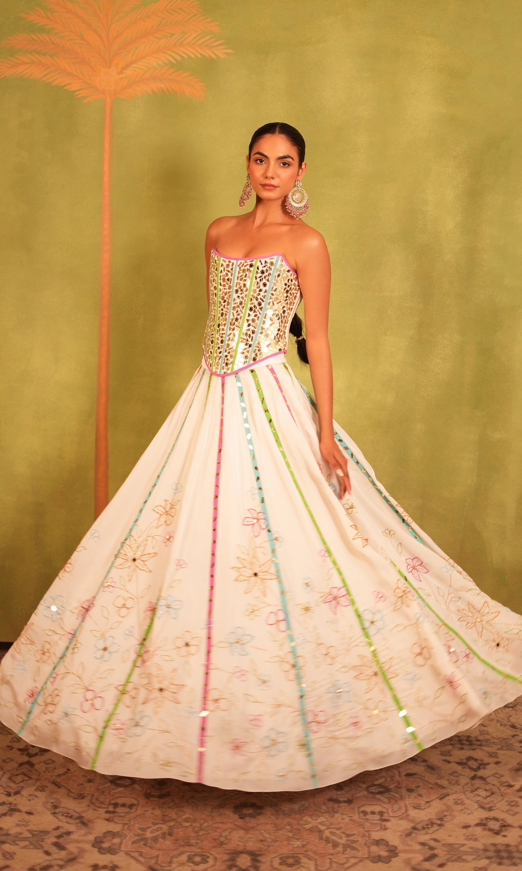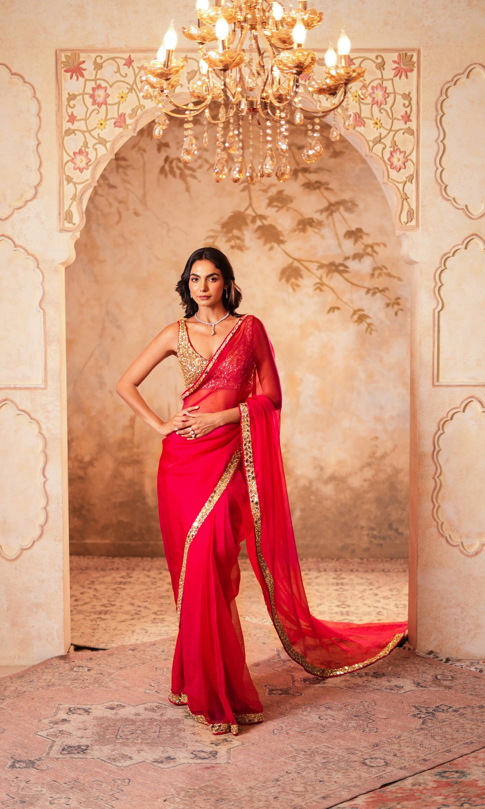 Kiran means rays of sun. The namesake label is based in India. The collection is for anyone who wants to wear something unique and different from the traditional silvers, golds and conventional ethnic motifs, to a design language that celebrates hearty embroidery set in vibrant, eye catching colour palettes and the most fun and joyous silhouettes- and today this brand aesthetic is signatory to the Kiran Kalsi label.