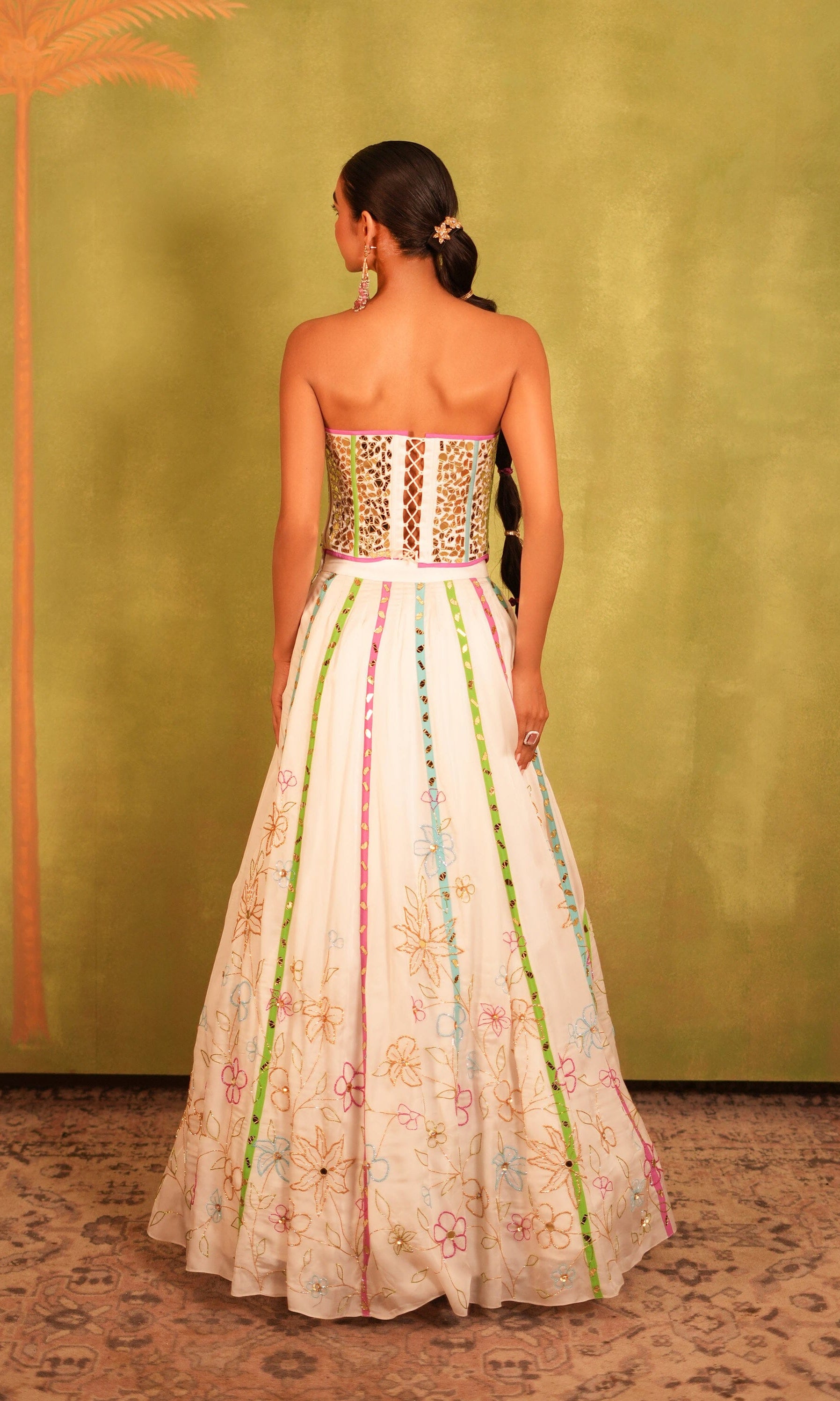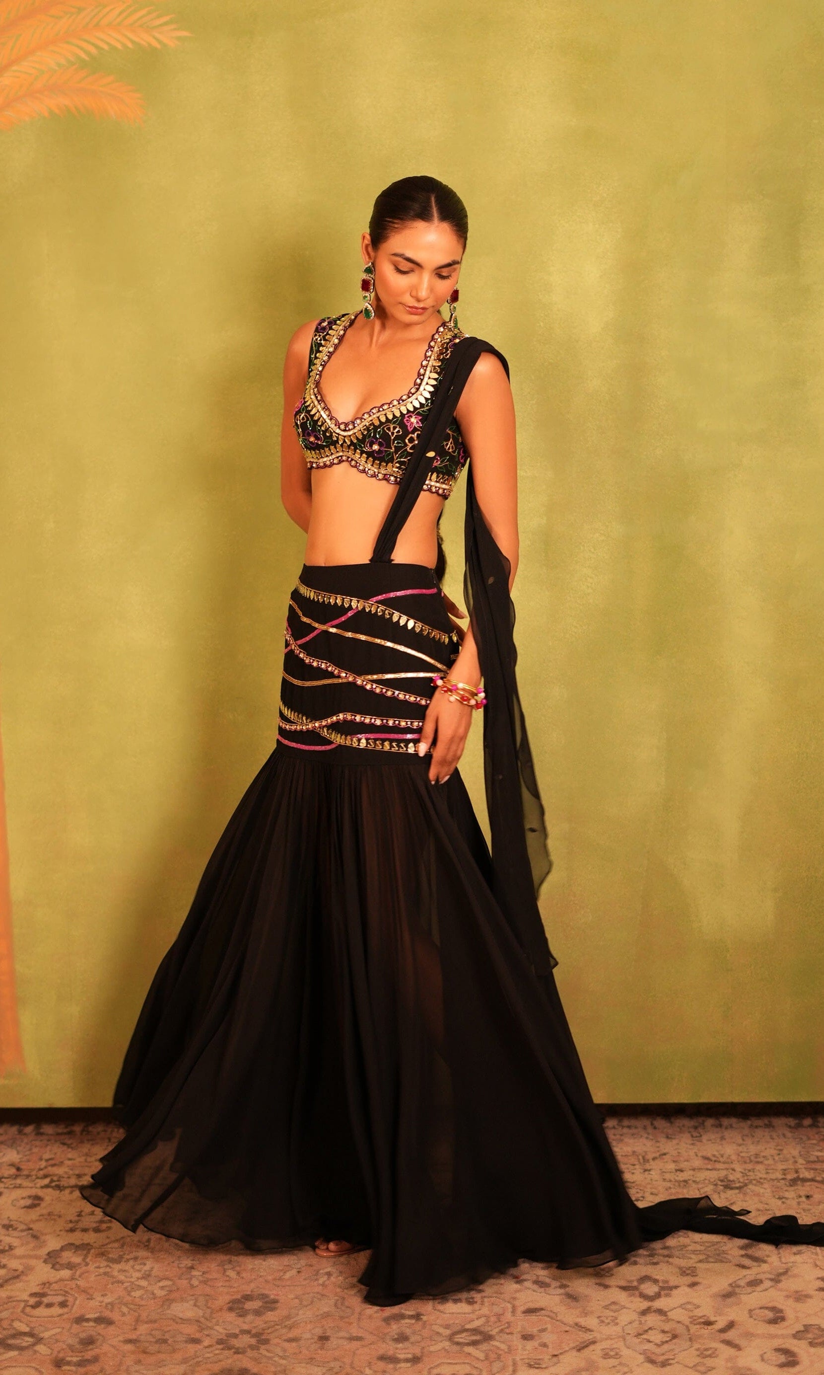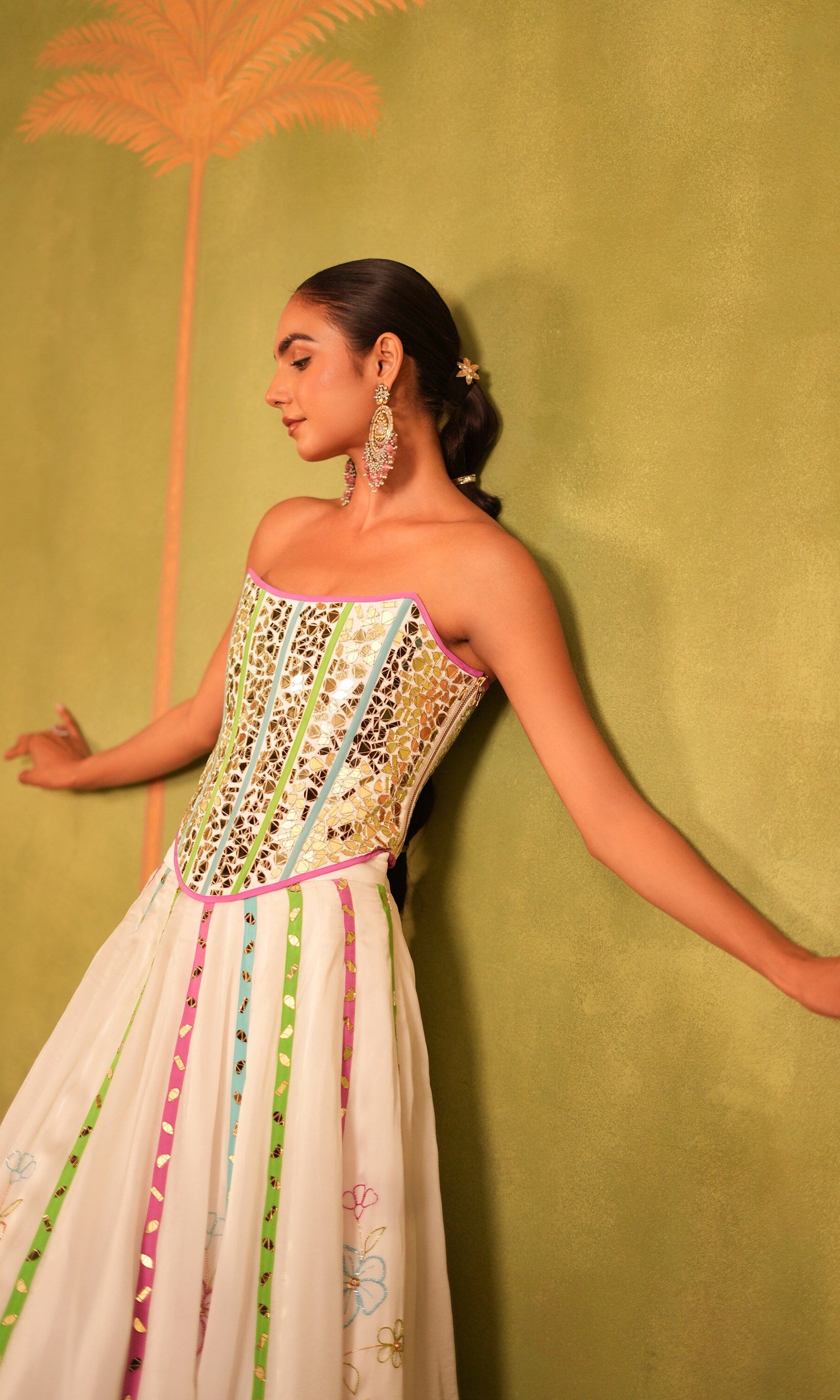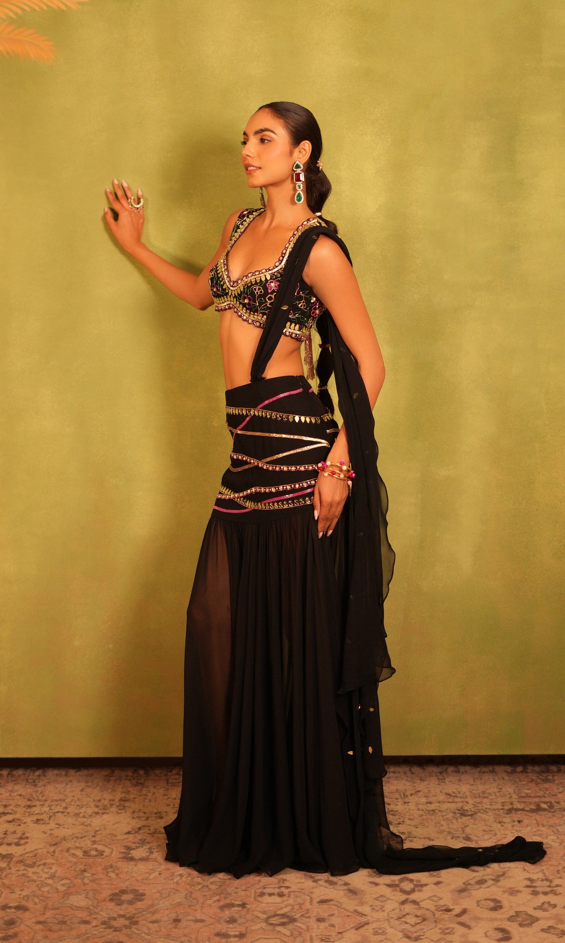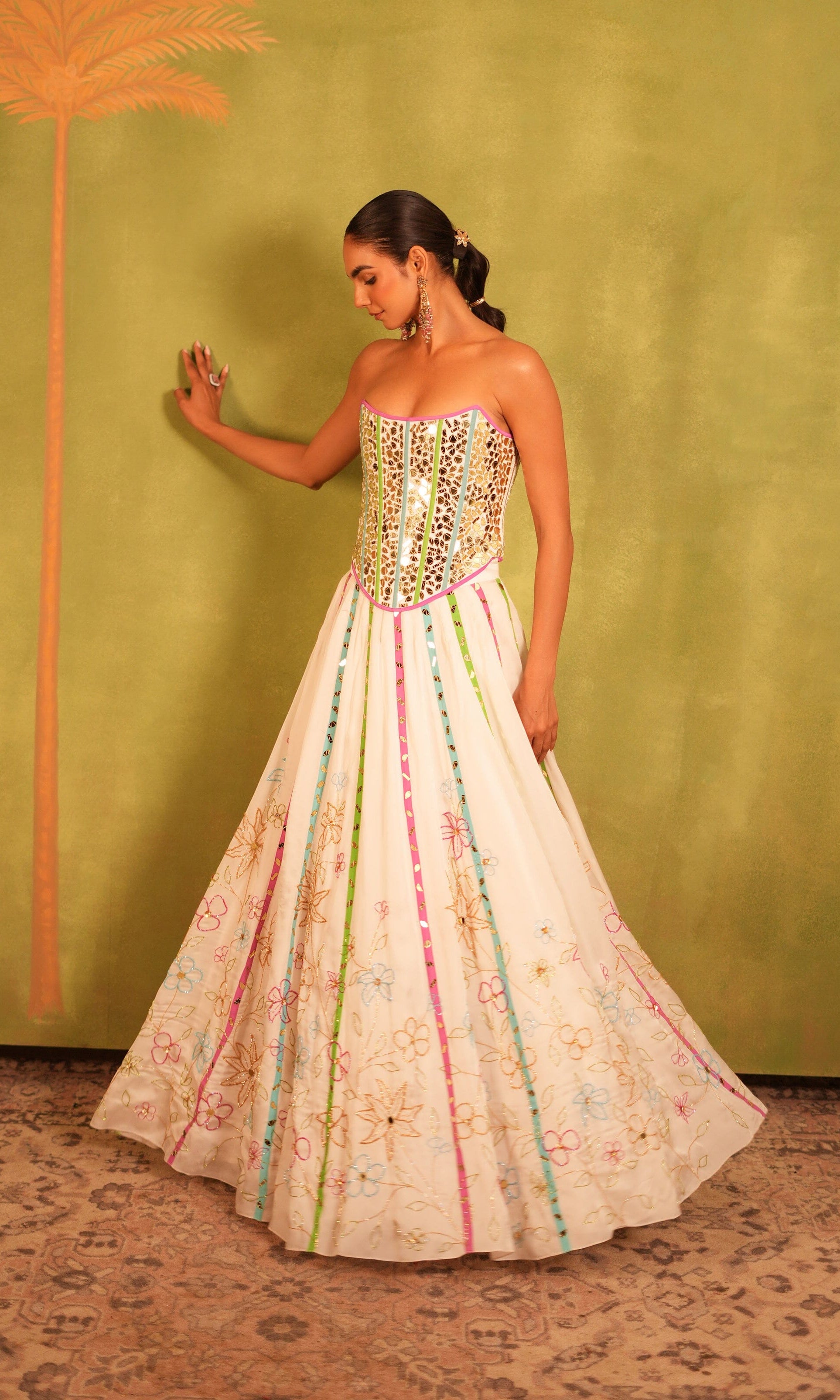 Kiran means rays of sun. The namesake label is based in India. The collection is for anyone who wants to wear something unique and different from the traditional silvers, golds and conventional ethnic motifs, to a design language that celebrates hearty embroidery set in vibrant, eye catching colour palettes and the most fun and joyous silhouettes- and today this brand aesthetic is signatory to the Kiran Kalsi label.