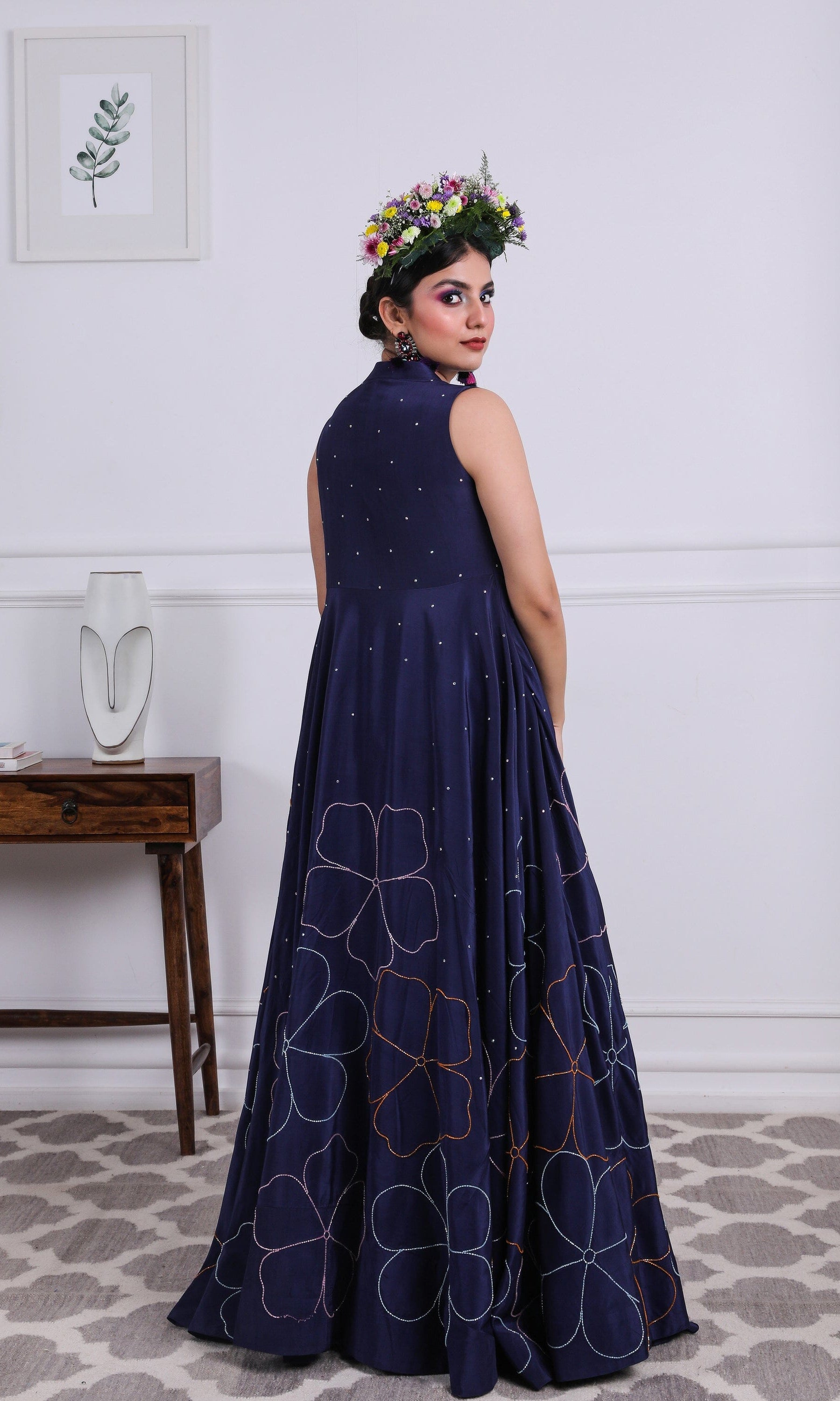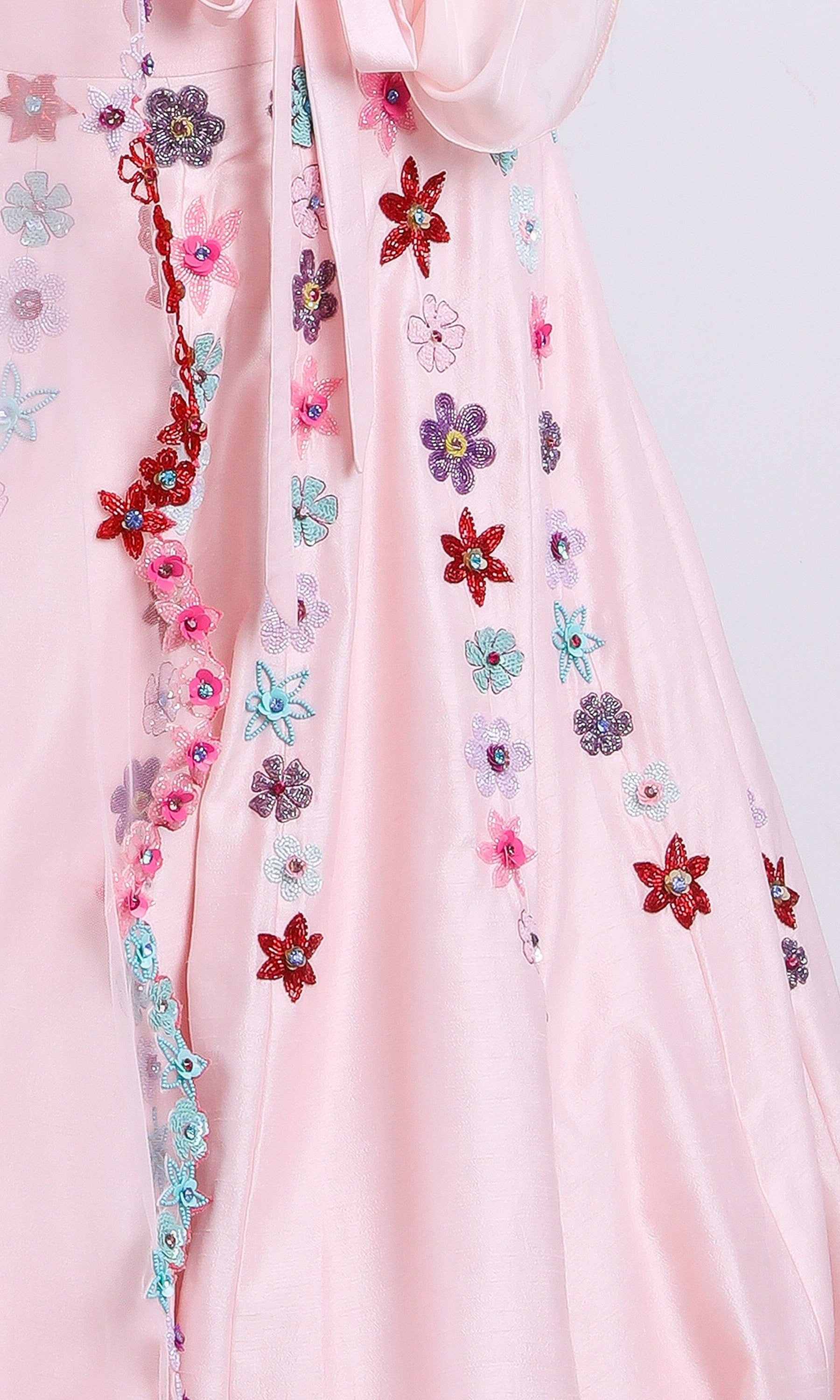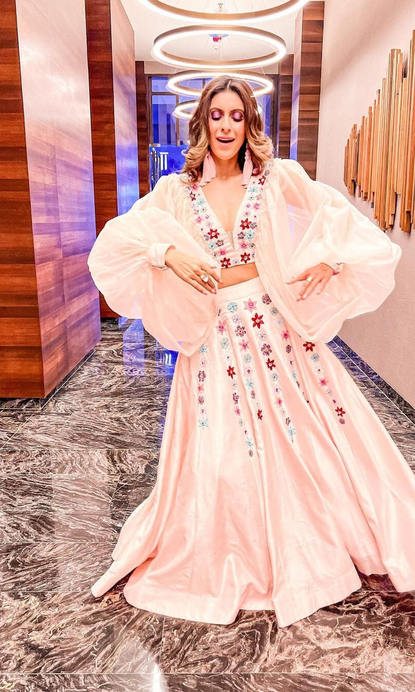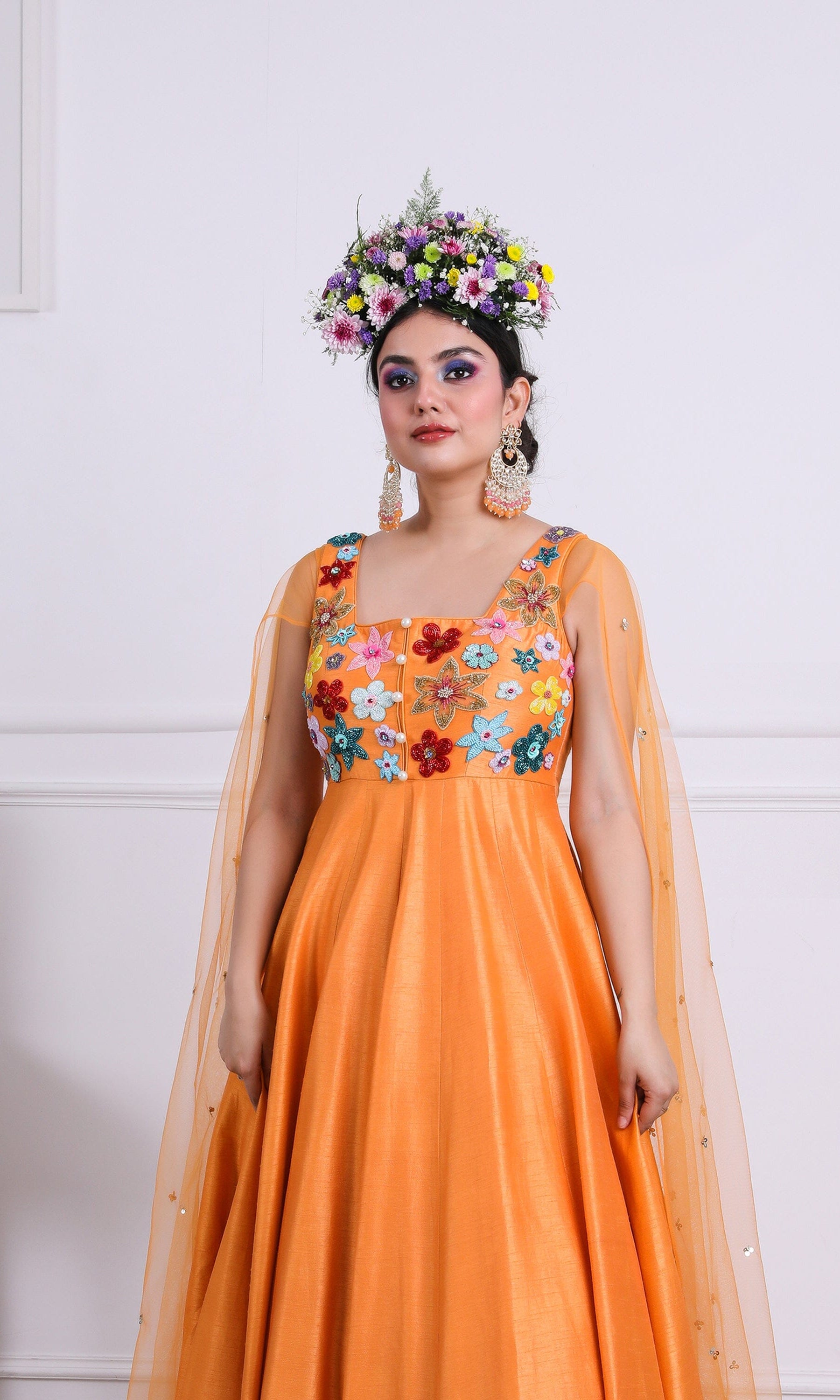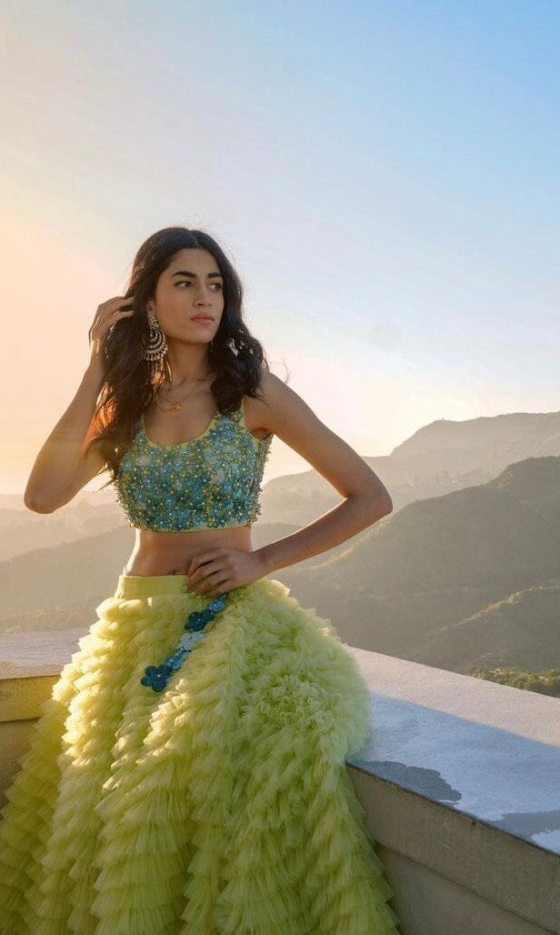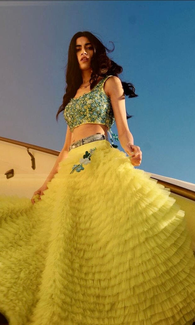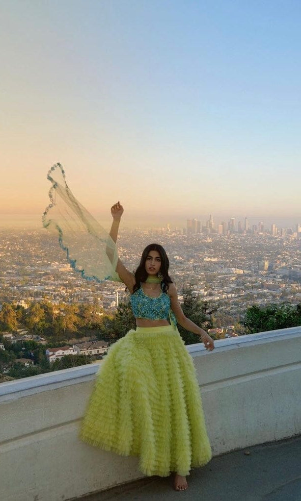 Kiran means rays of sun. The namesake label is based in India. The collection is for anyone who wants to wear something unique and different from the traditional silvers, golds and conventional ethnic motifs, to a design language that celebrates hearty embroidery set in vibrant, eye catching colour palettes and the most fun and joyous silhouettes- and today this brand aesthetic is signatory to the Kiran Kalsi label.