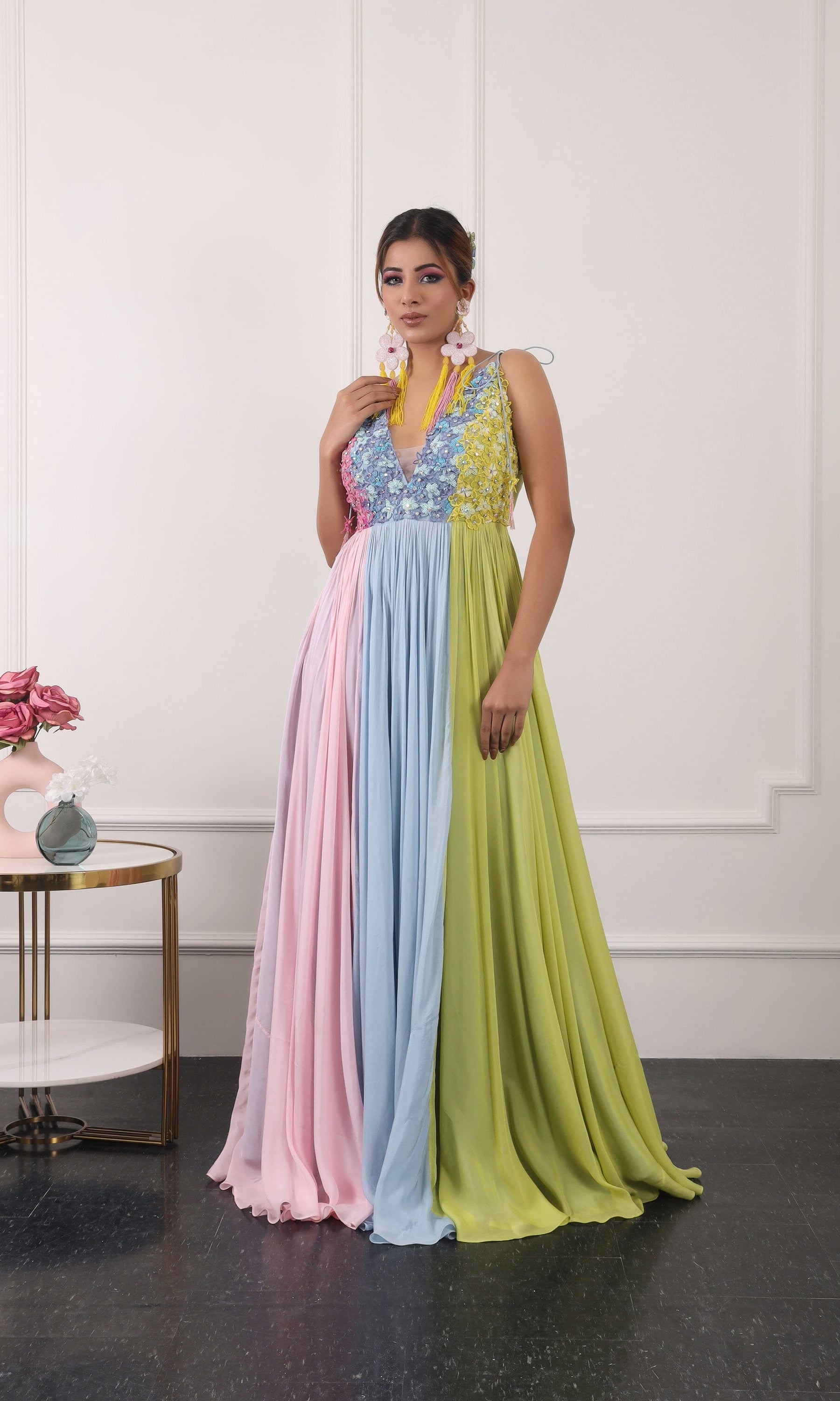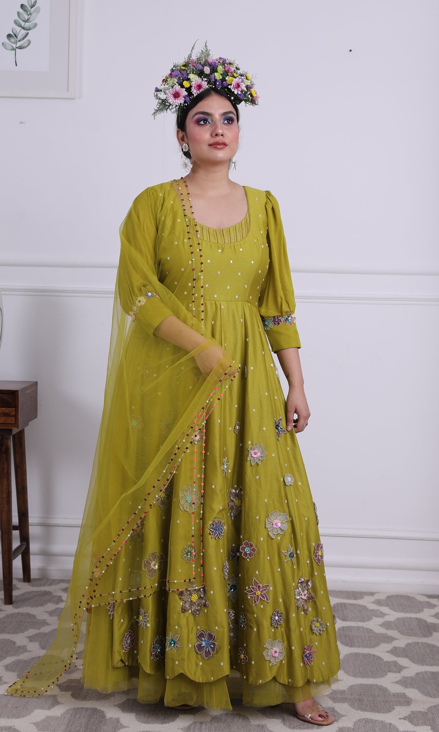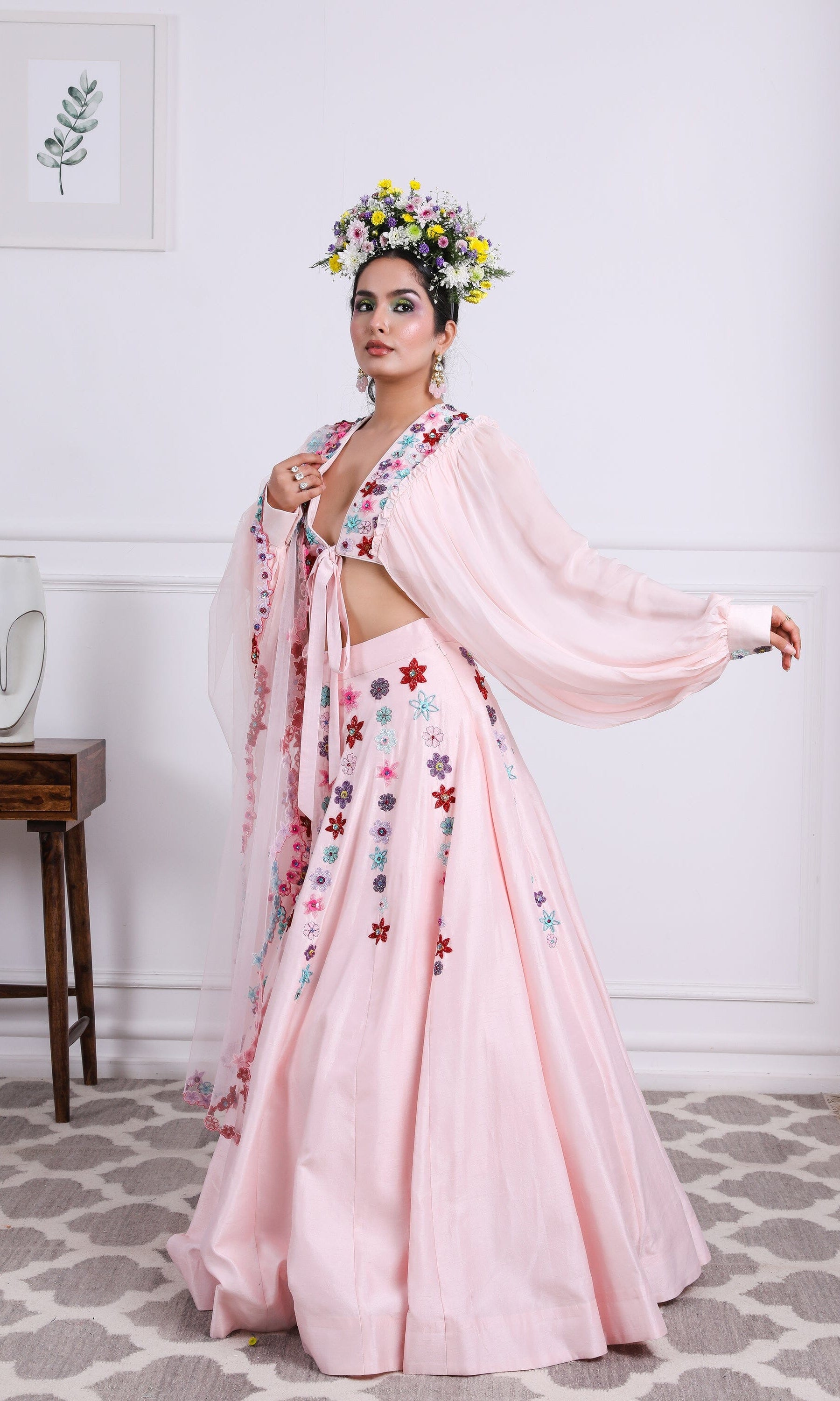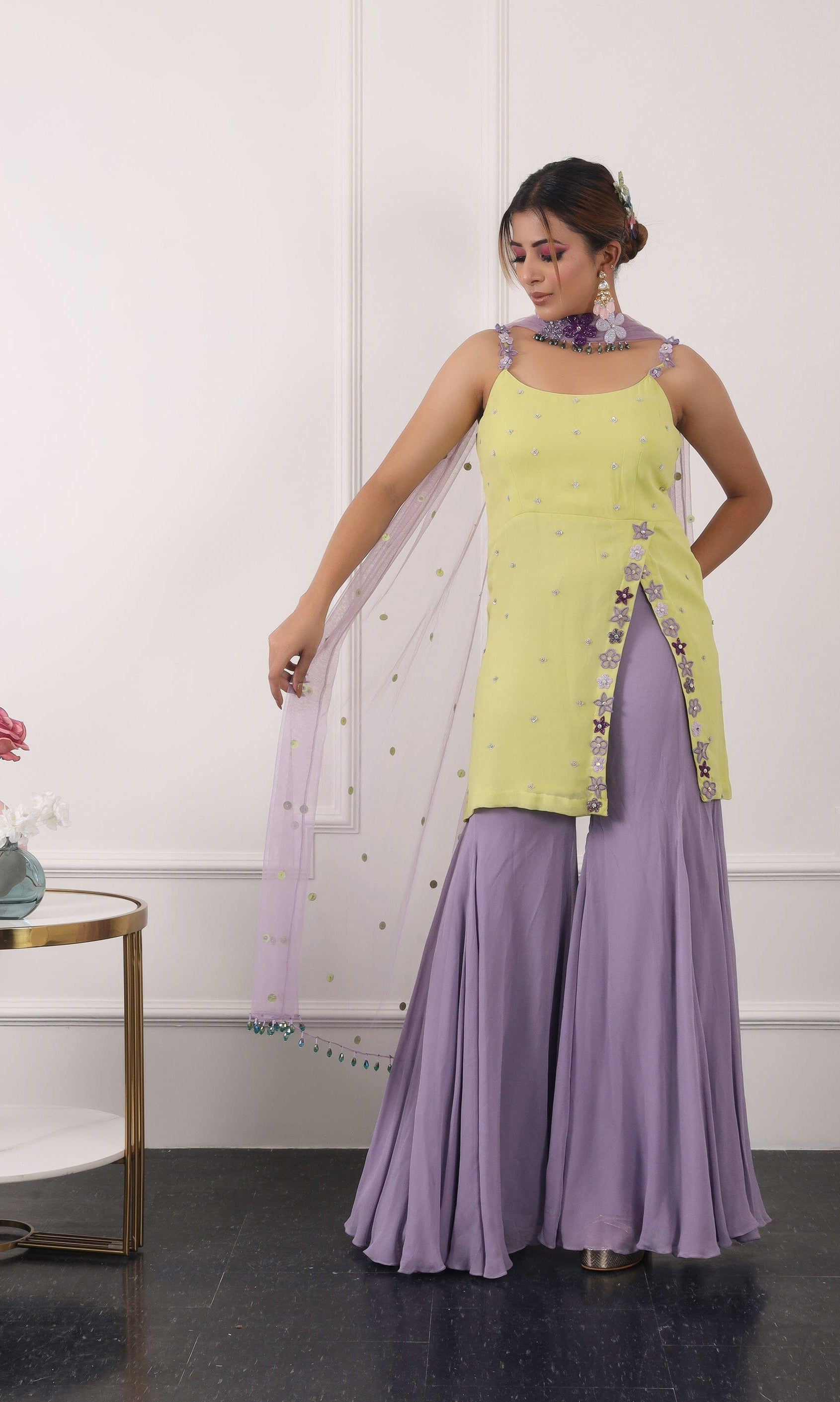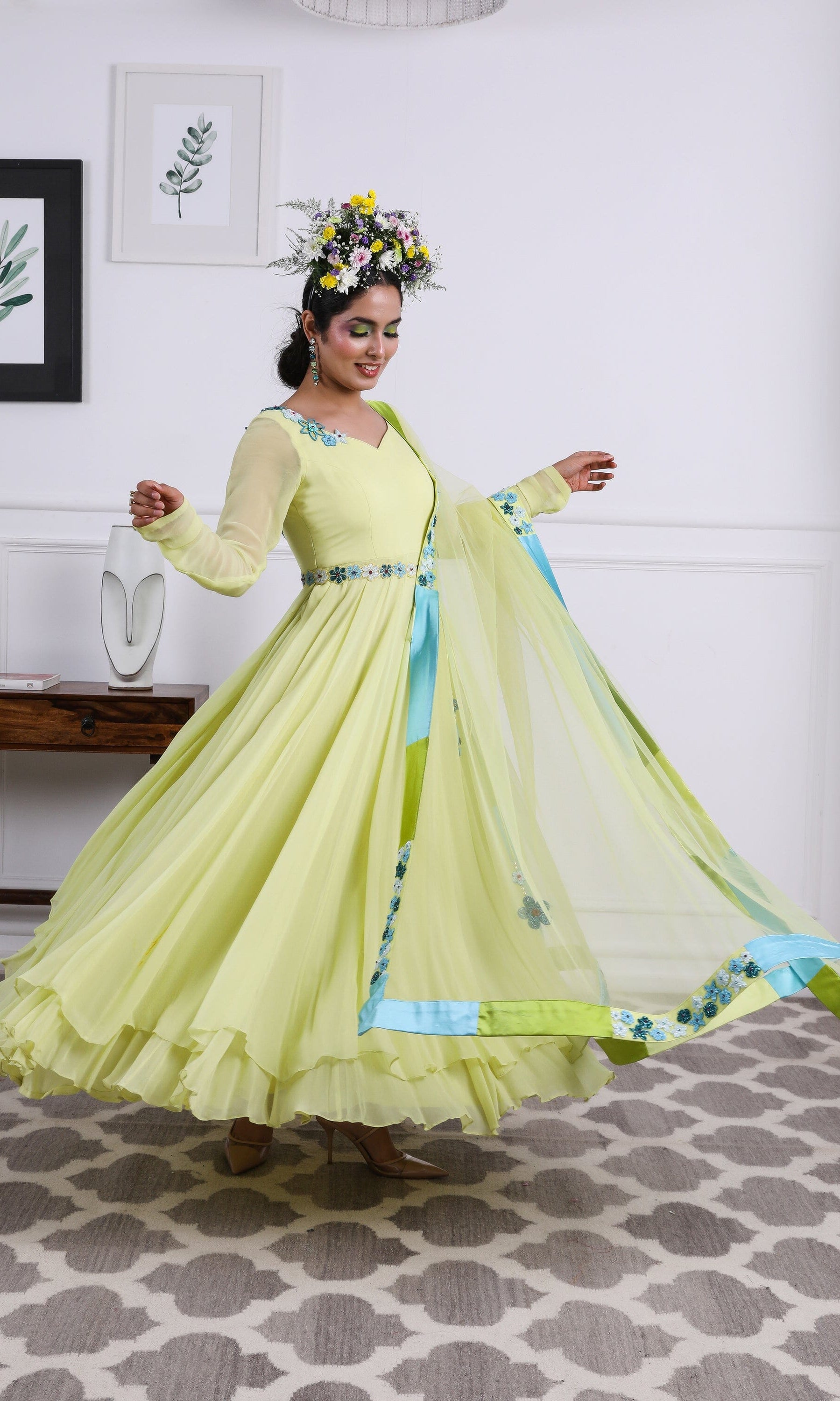 Kiran means rays of sun. The namesake label is based in India. The collection is for anyone who wants to wear something unique and different from the traditional silvers, golds and conventional ethnic motifs, to a design language that celebrates hearty embroidery set in vibrant, eye catching colour palettes and the most fun and joyous silhouettes- and today this brand aesthetic is signatory to the Kiran Kalsi label.