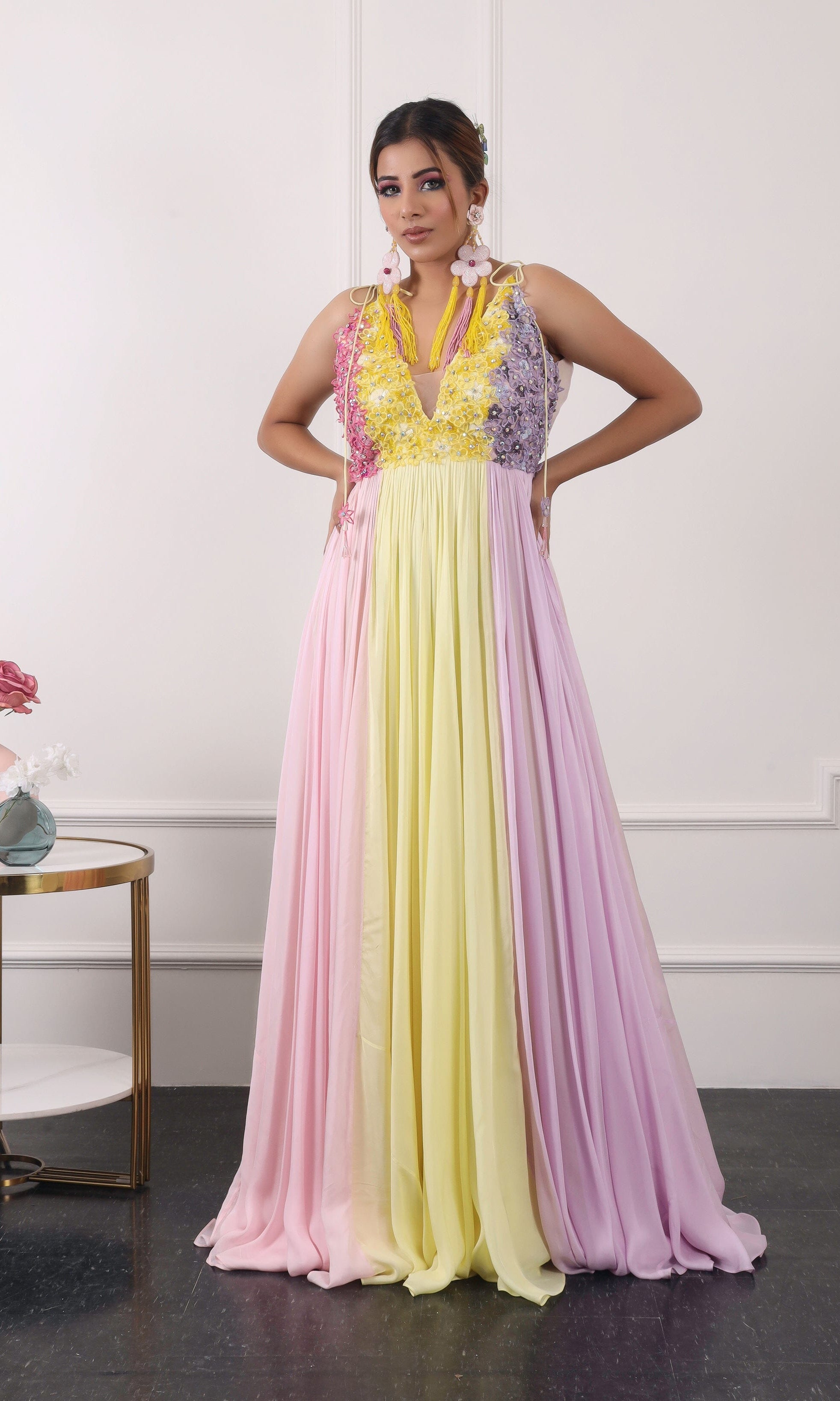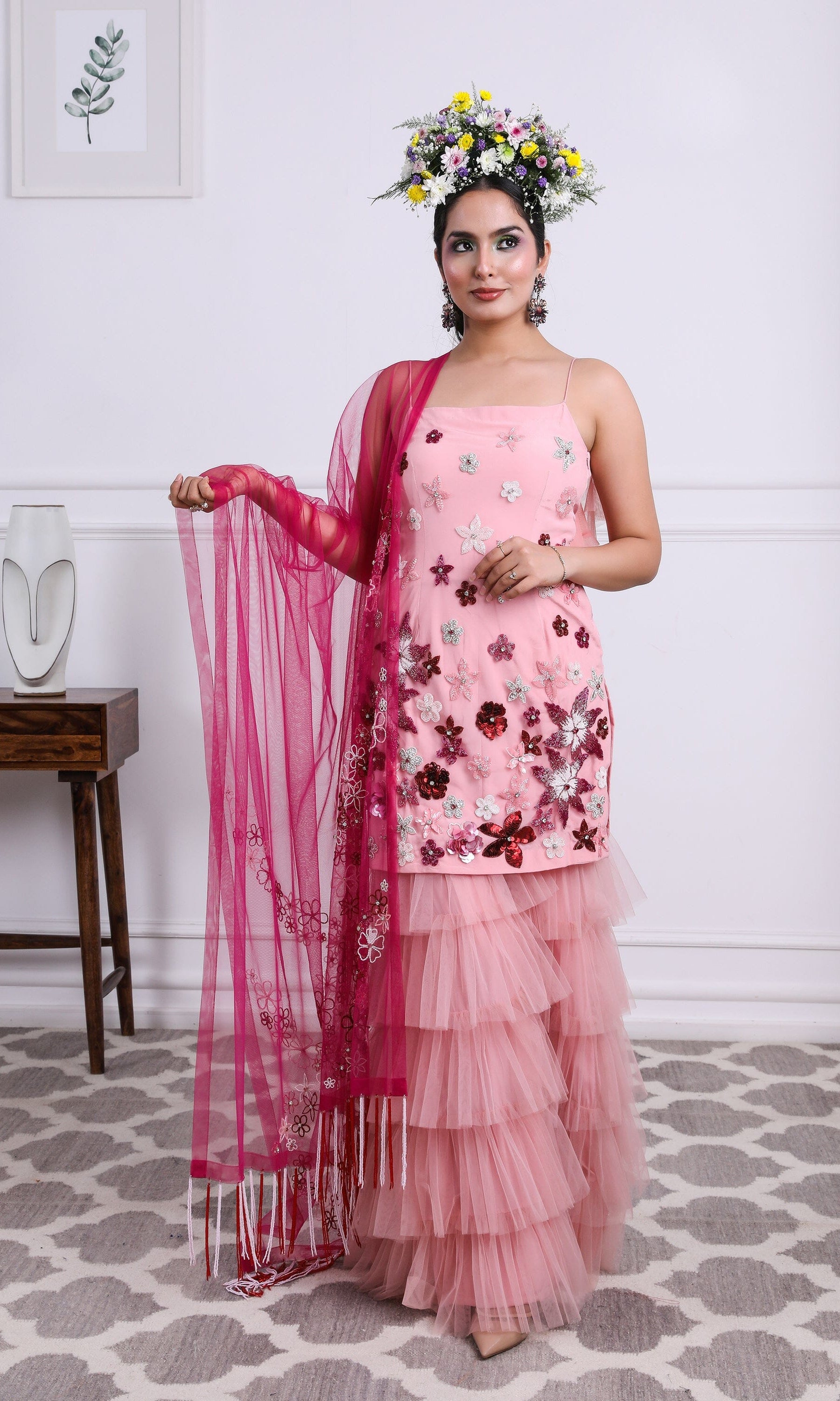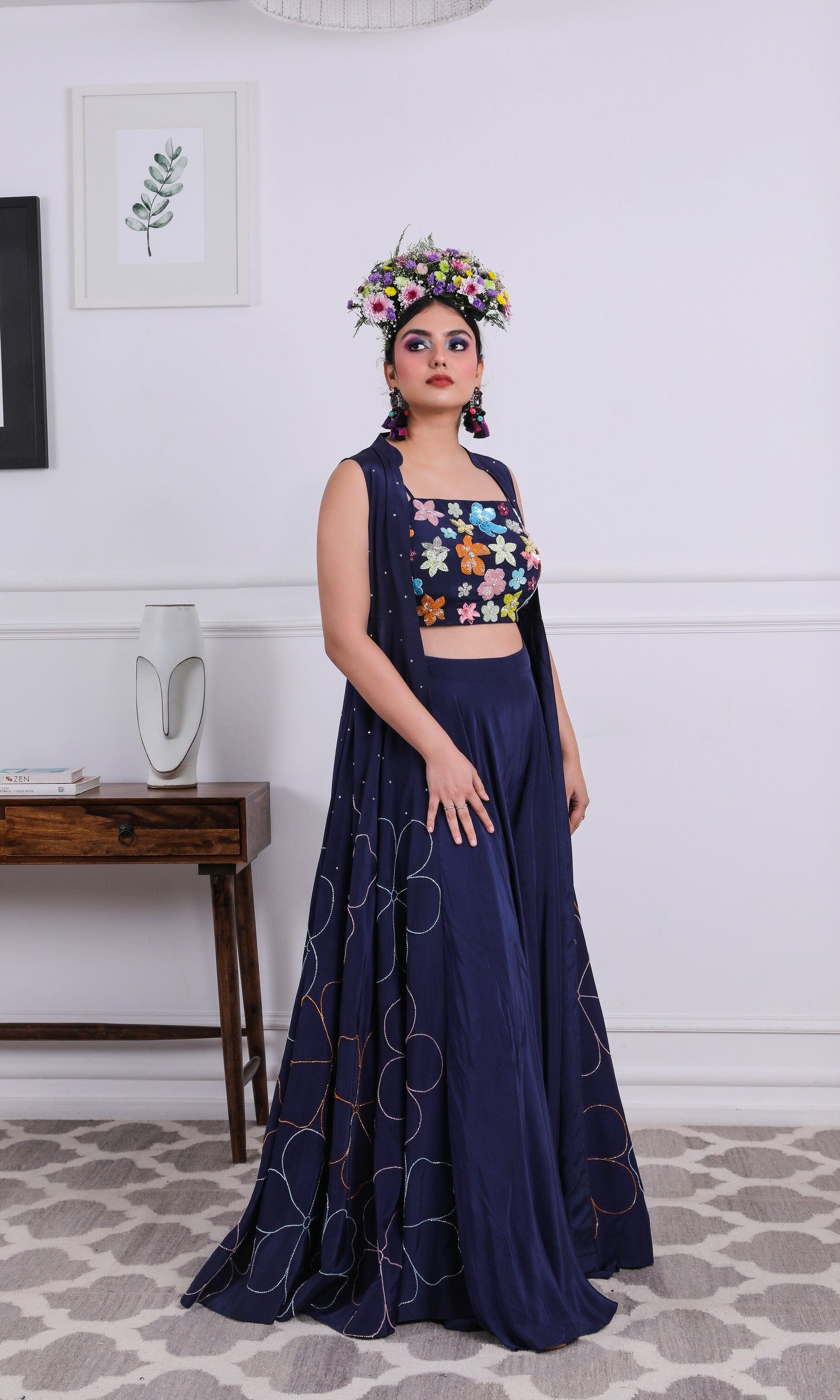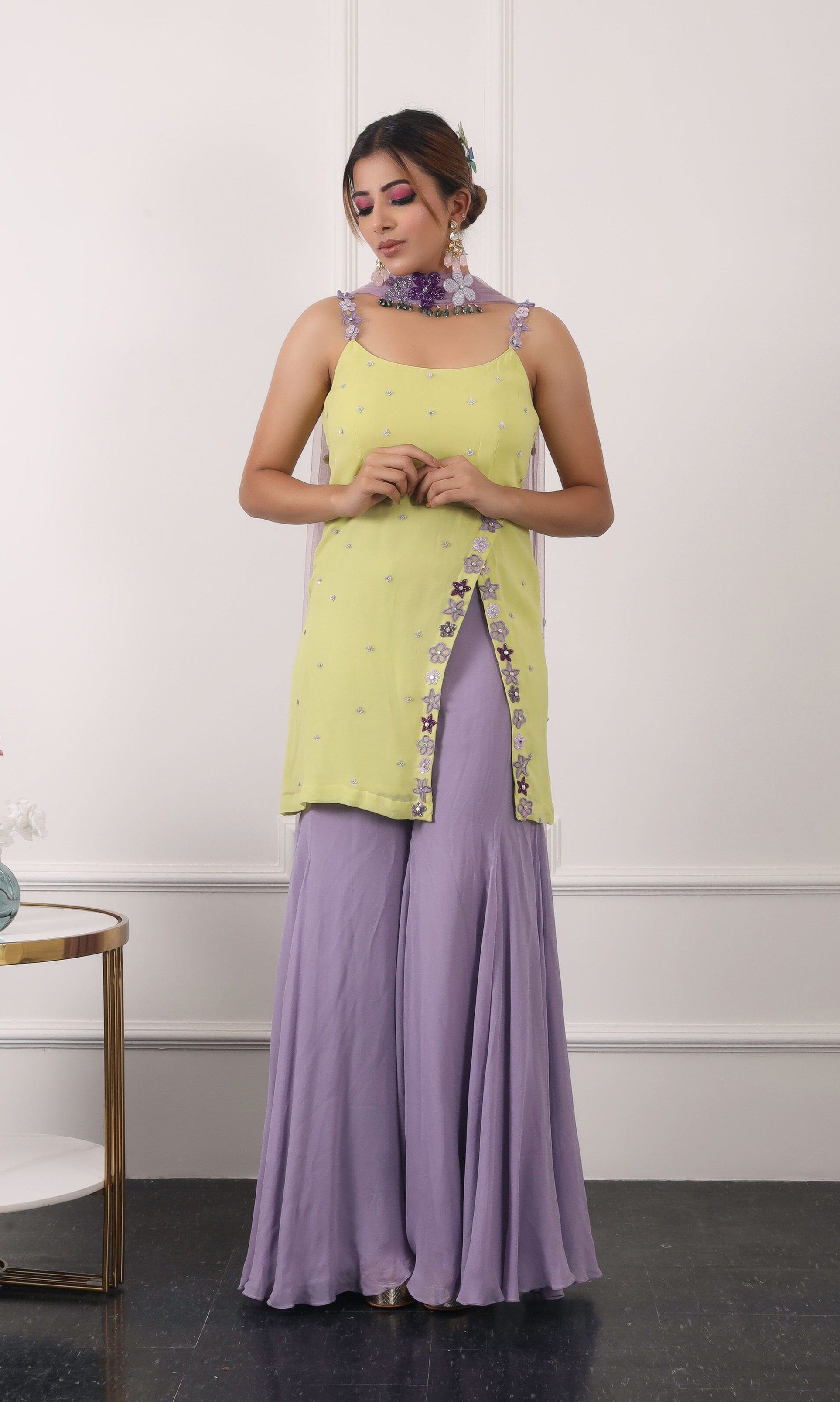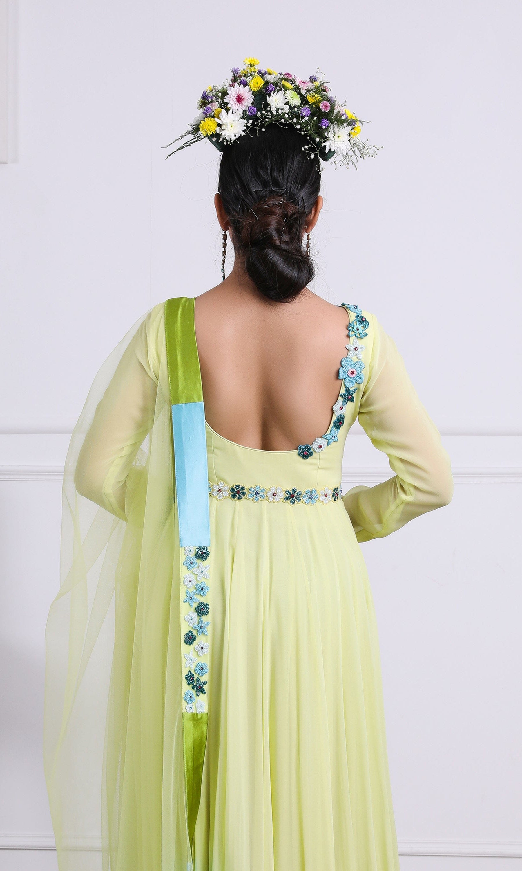 Kiran means rays of sun. The namesake label is based in India. The collection is for anyone who wants to wear something unique and different from the traditional silvers, golds and conventional ethnic motifs, to a design language that celebrates hearty embroidery set in vibrant, eye catching colour palettes and the most fun and joyous silhouettes- and today this brand aesthetic is signatory to the Kiran Kalsi label.