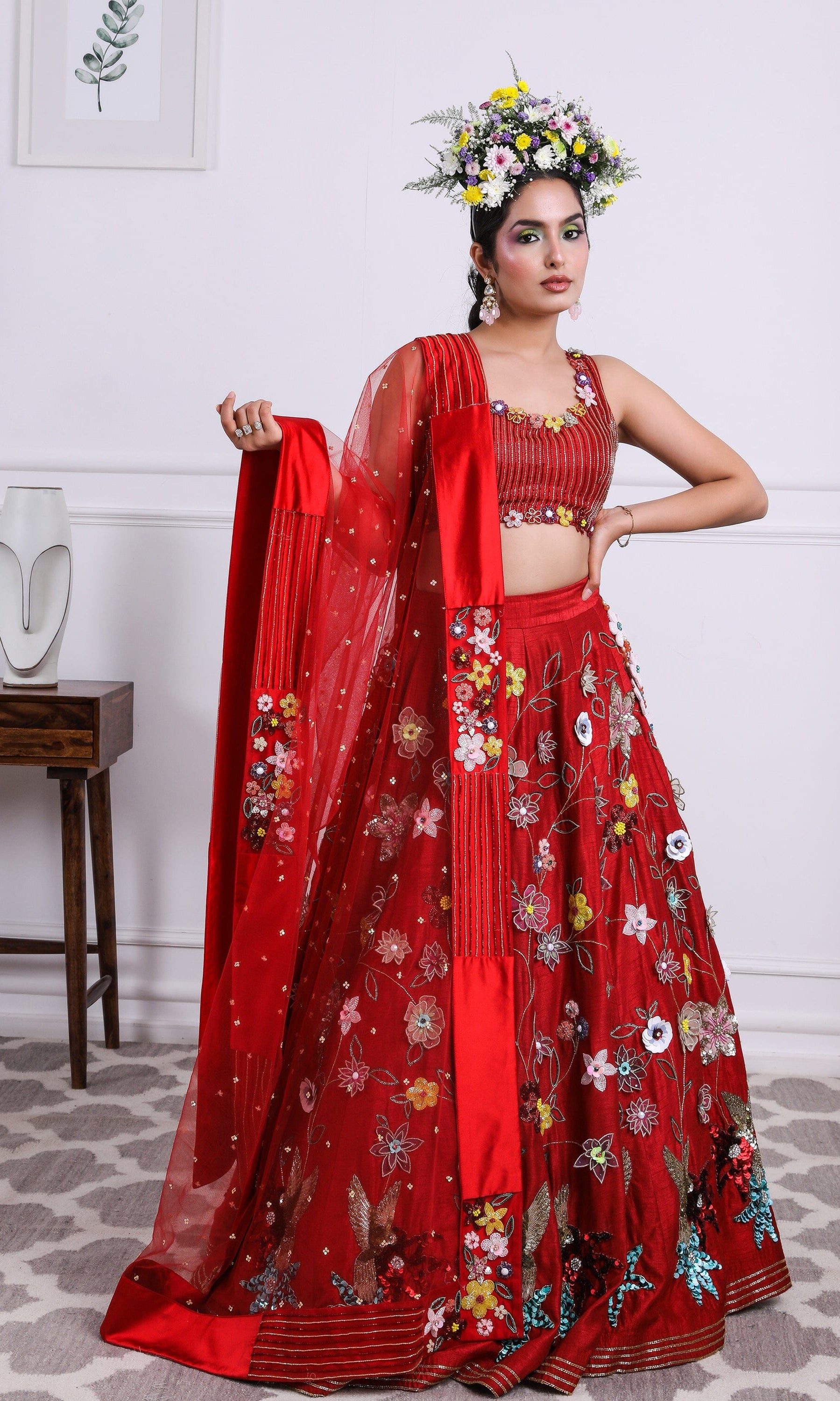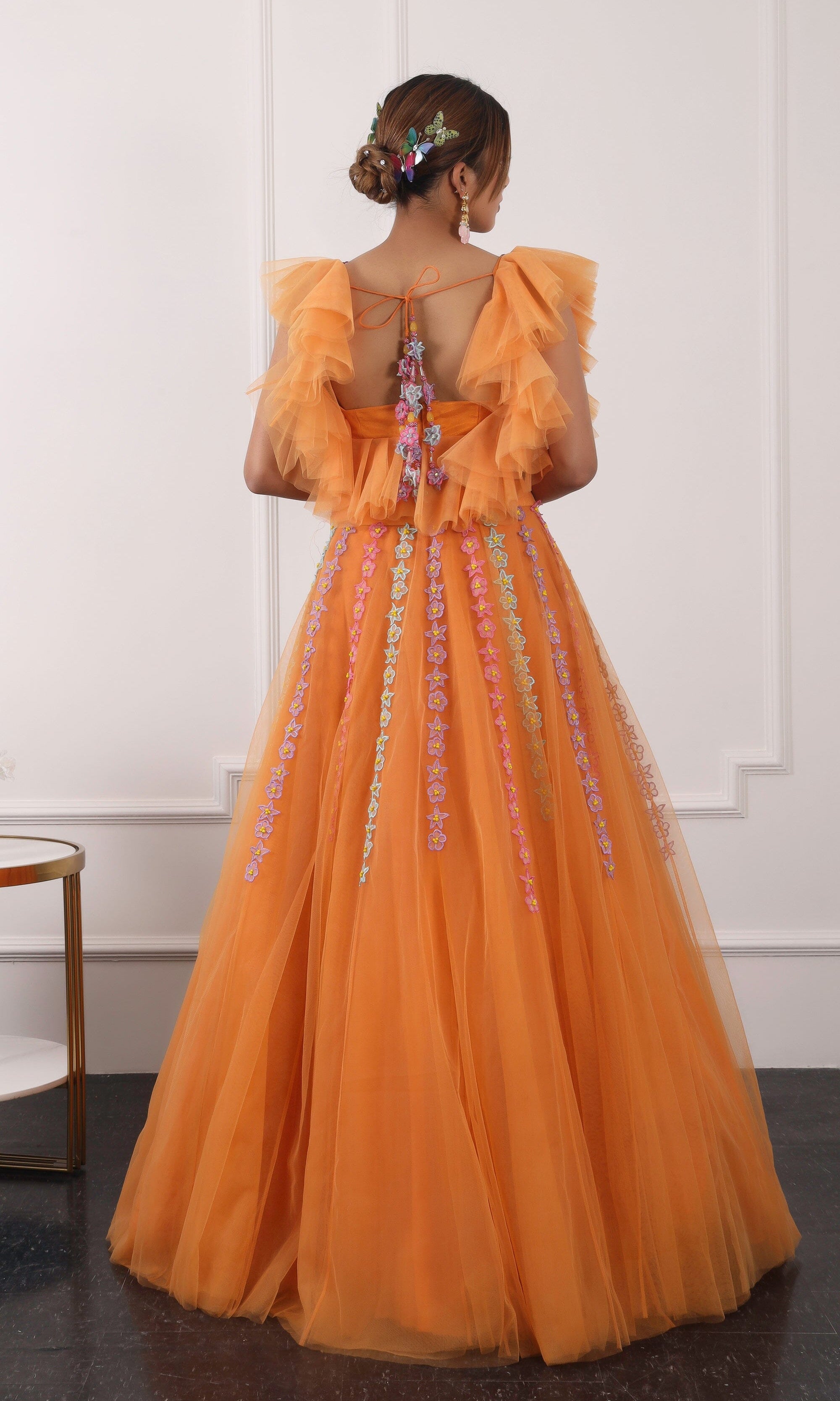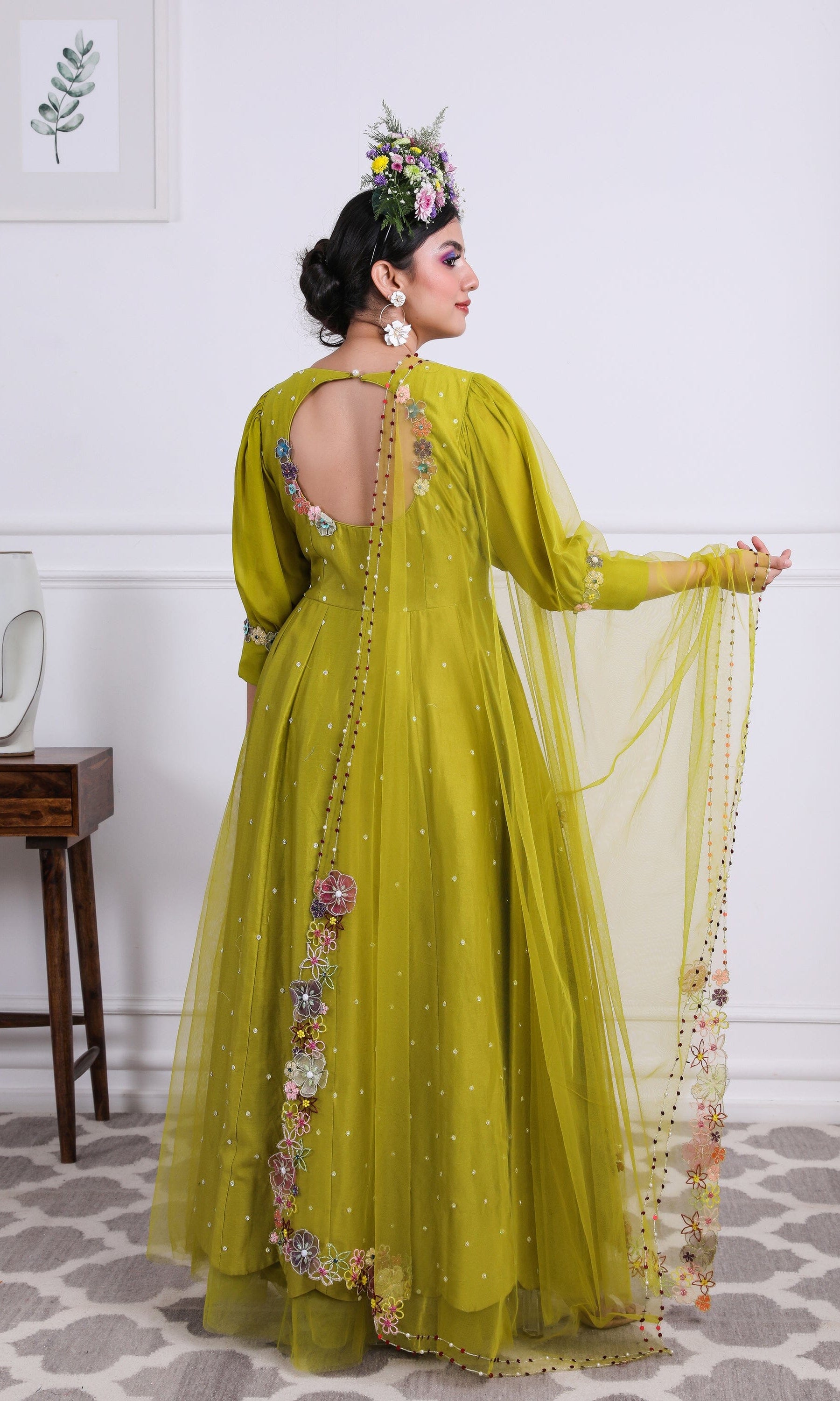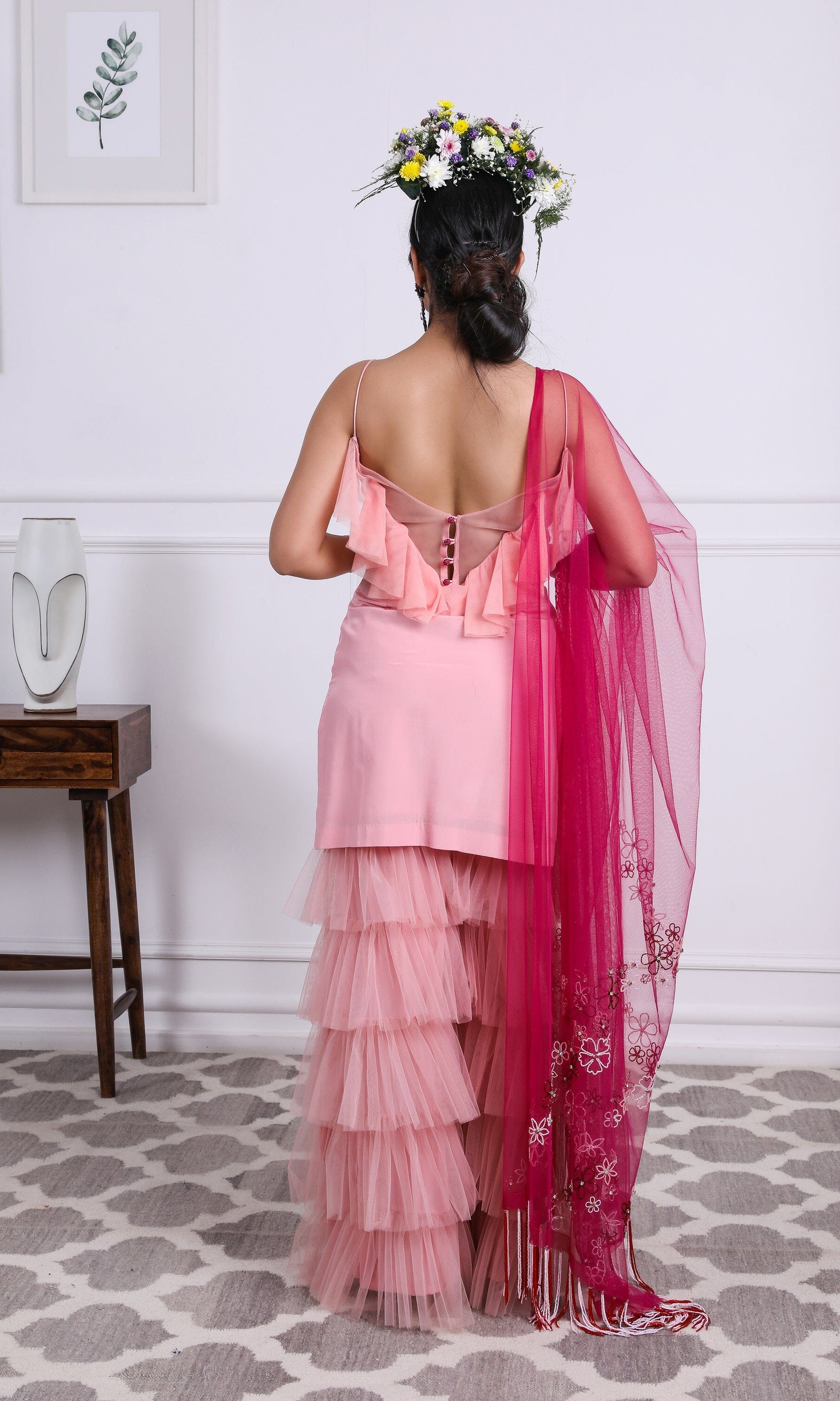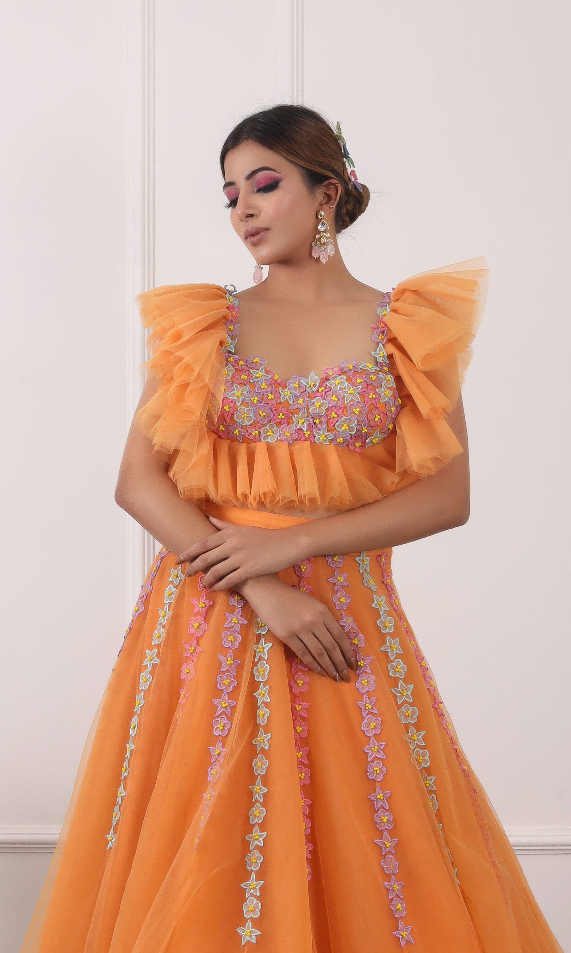 Kiran means rays of sun. The namesake label is based in India. The collection is for anyone who wants to wear something unique and different from the traditional silvers, golds and conventional ethnic motifs, to a design language that celebrates hearty embroidery set in vibrant, eye catching colour palettes and the most fun and joyous silhouettes- and today this brand aesthetic is signatory to the Kiran Kalsi label.