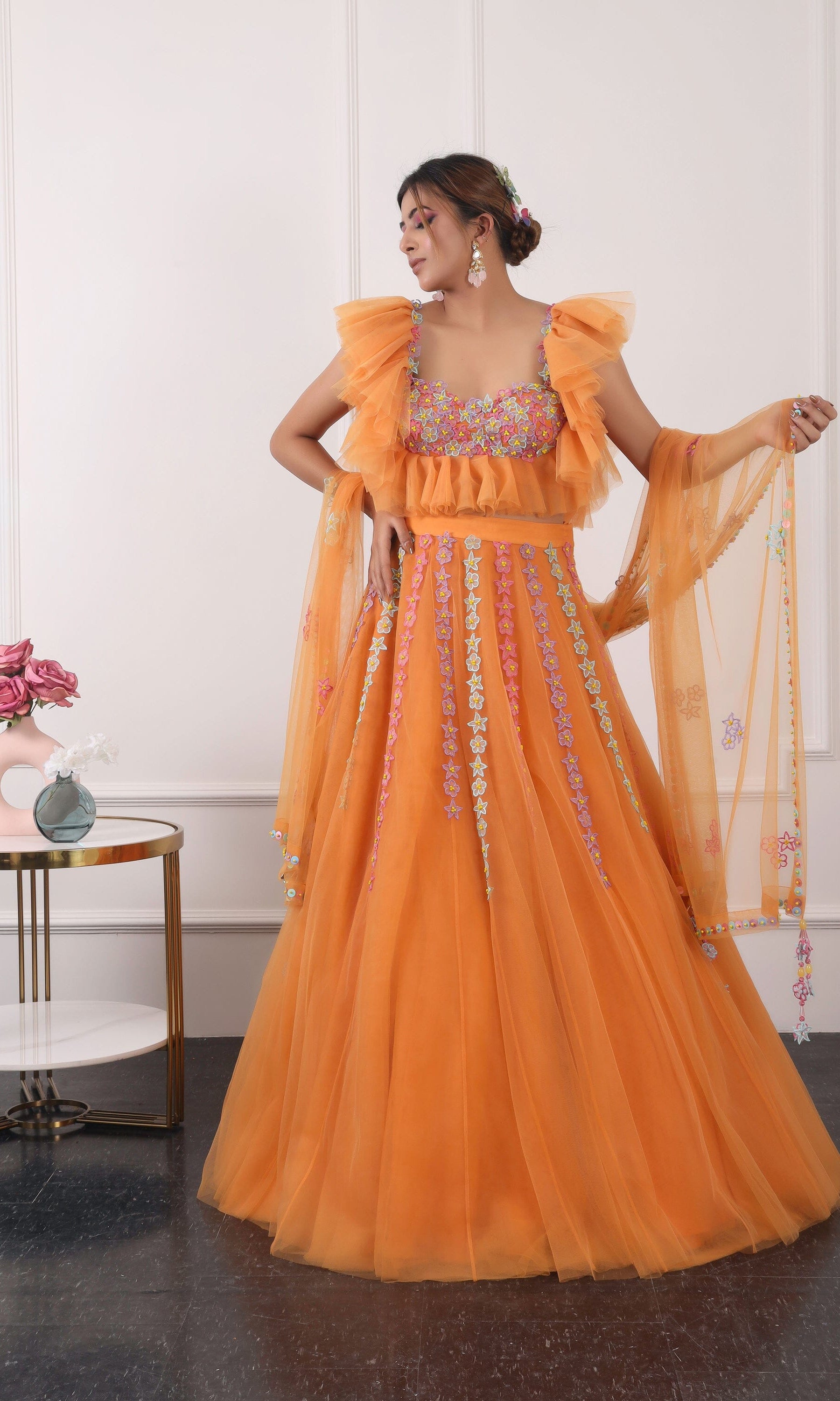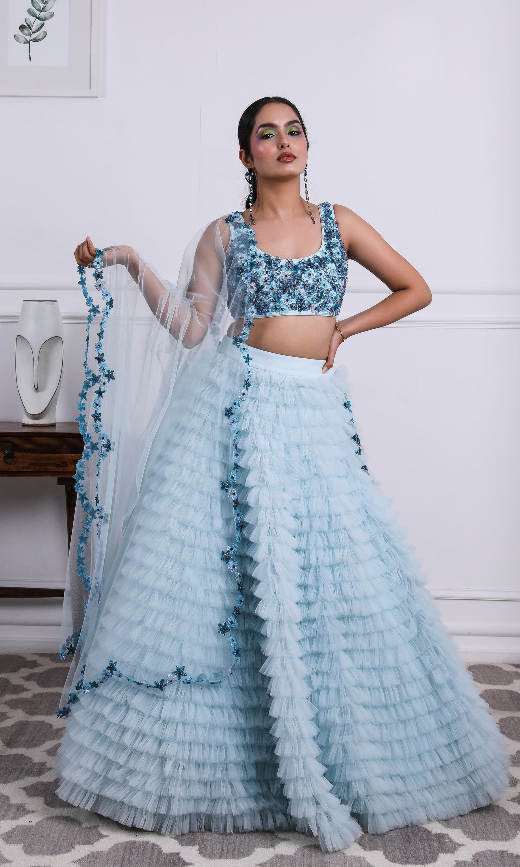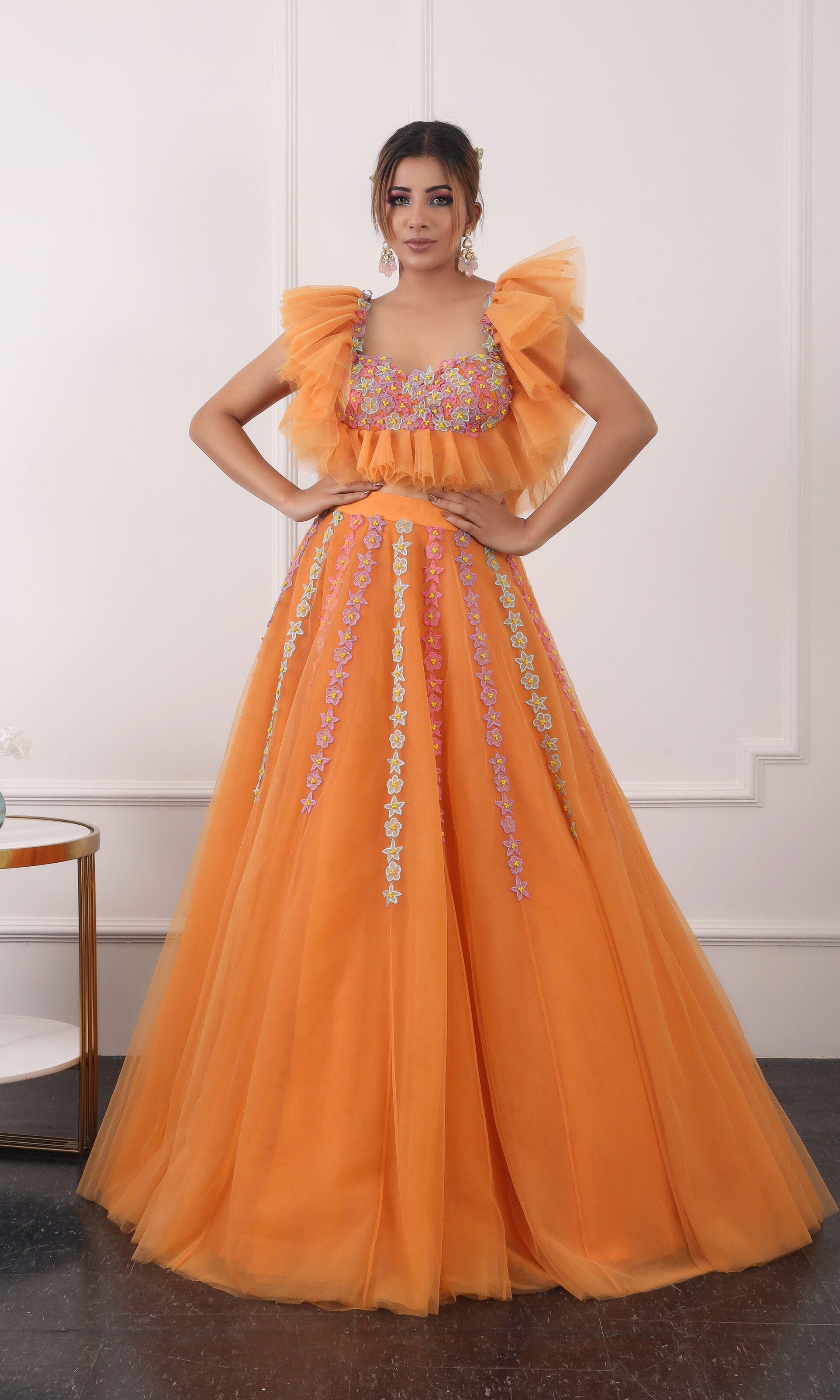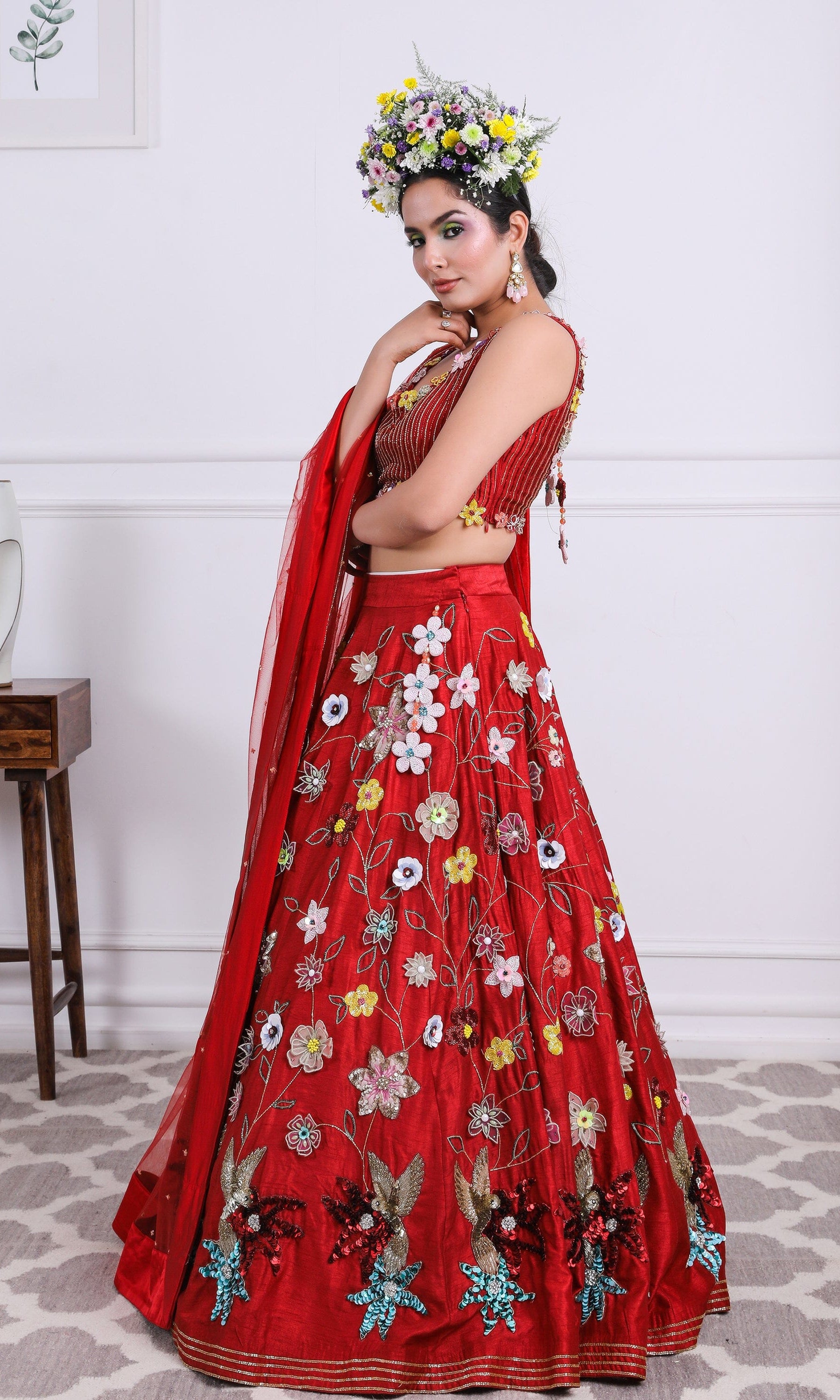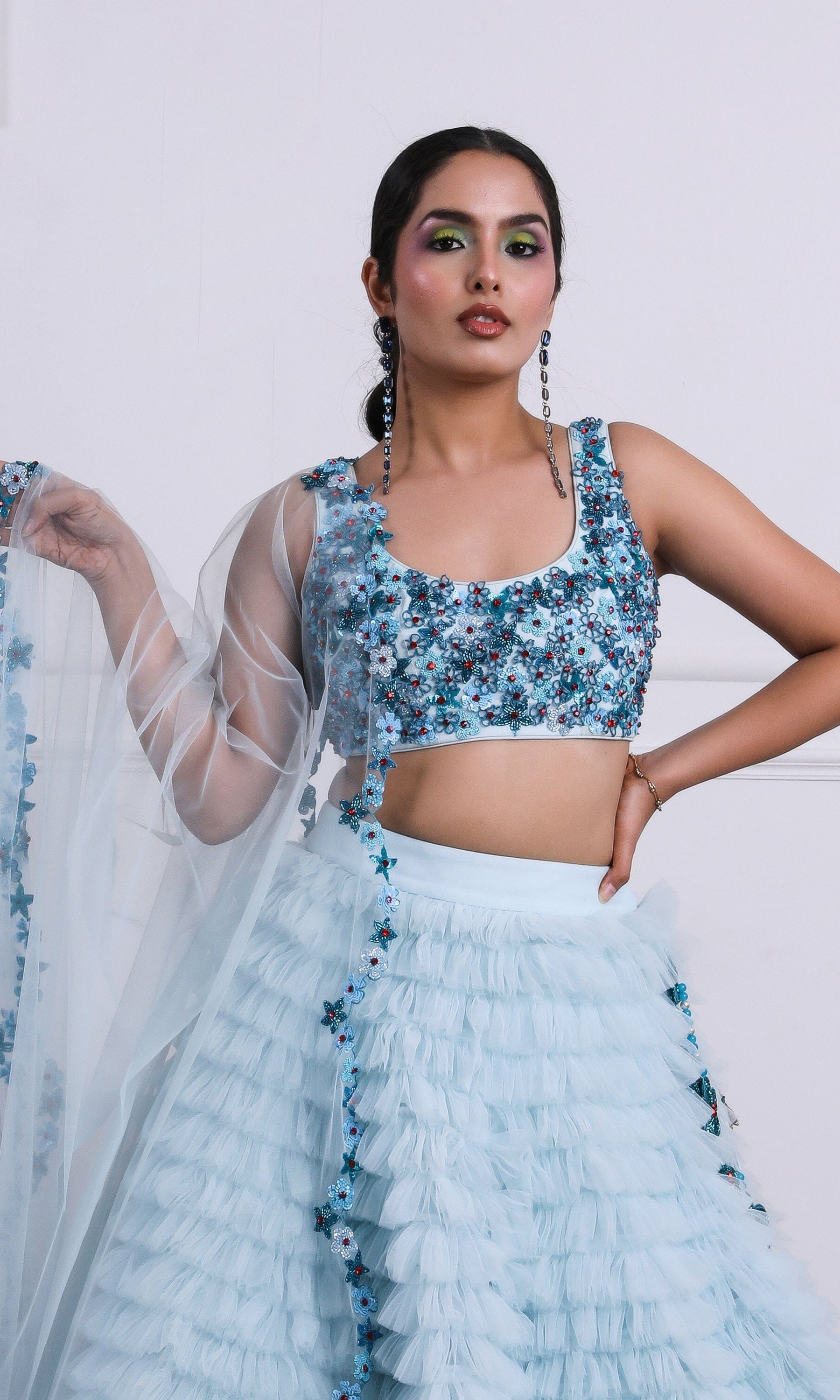 Kiran means rays of sun. The namesake label is based in India. The collection is for anyone who wants to wear something unique and different from the traditional silvers, golds and conventional ethnic motifs, to a design language that celebrates hearty embroidery set in vibrant, eye catching colour palettes and the most fun and joyous silhouettes- and today this brand aesthetic is signatory to the Kiran Kalsi label.