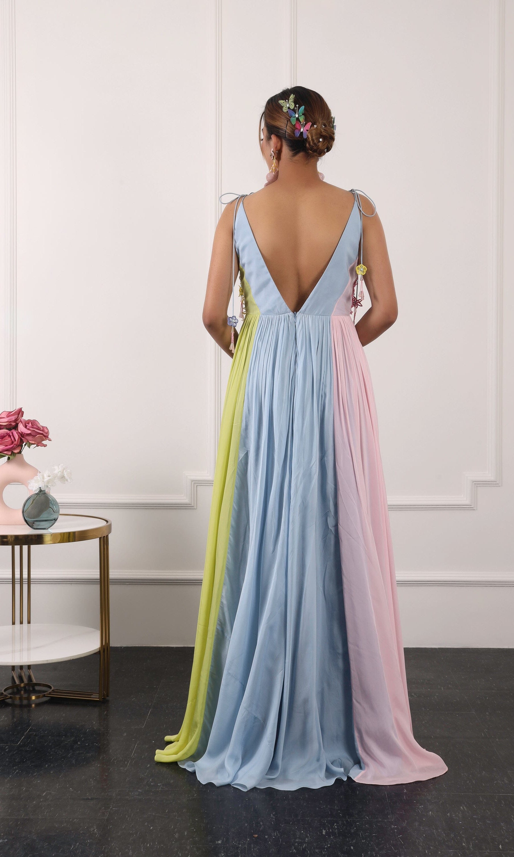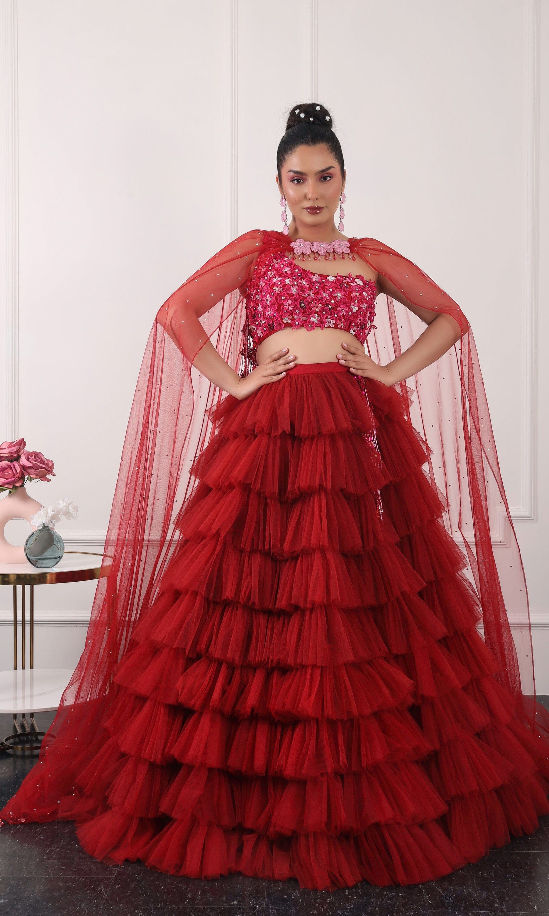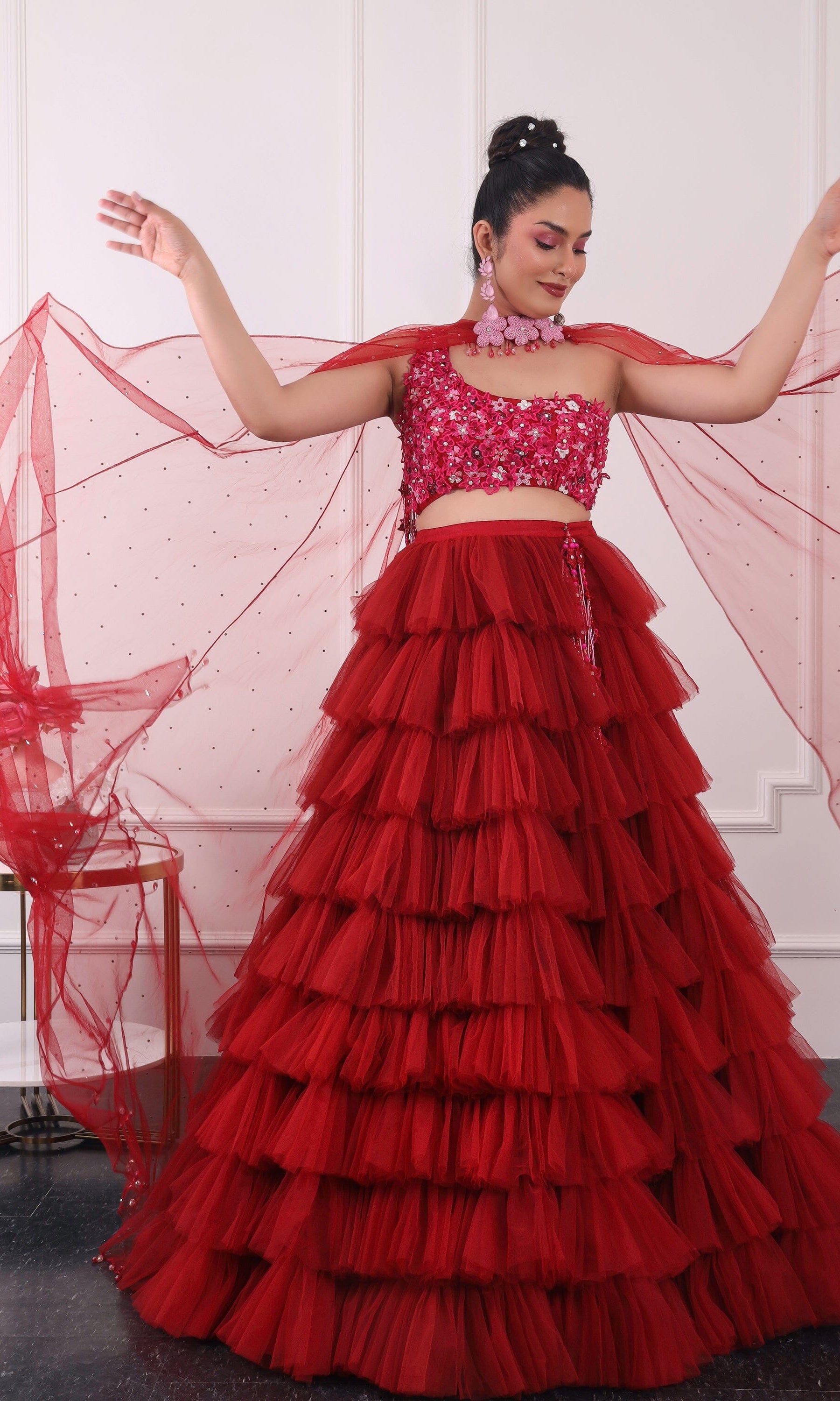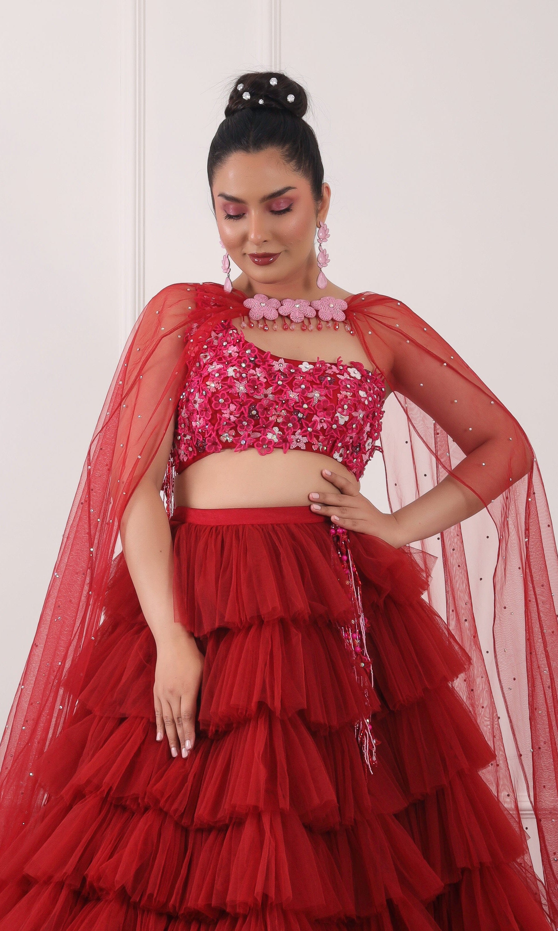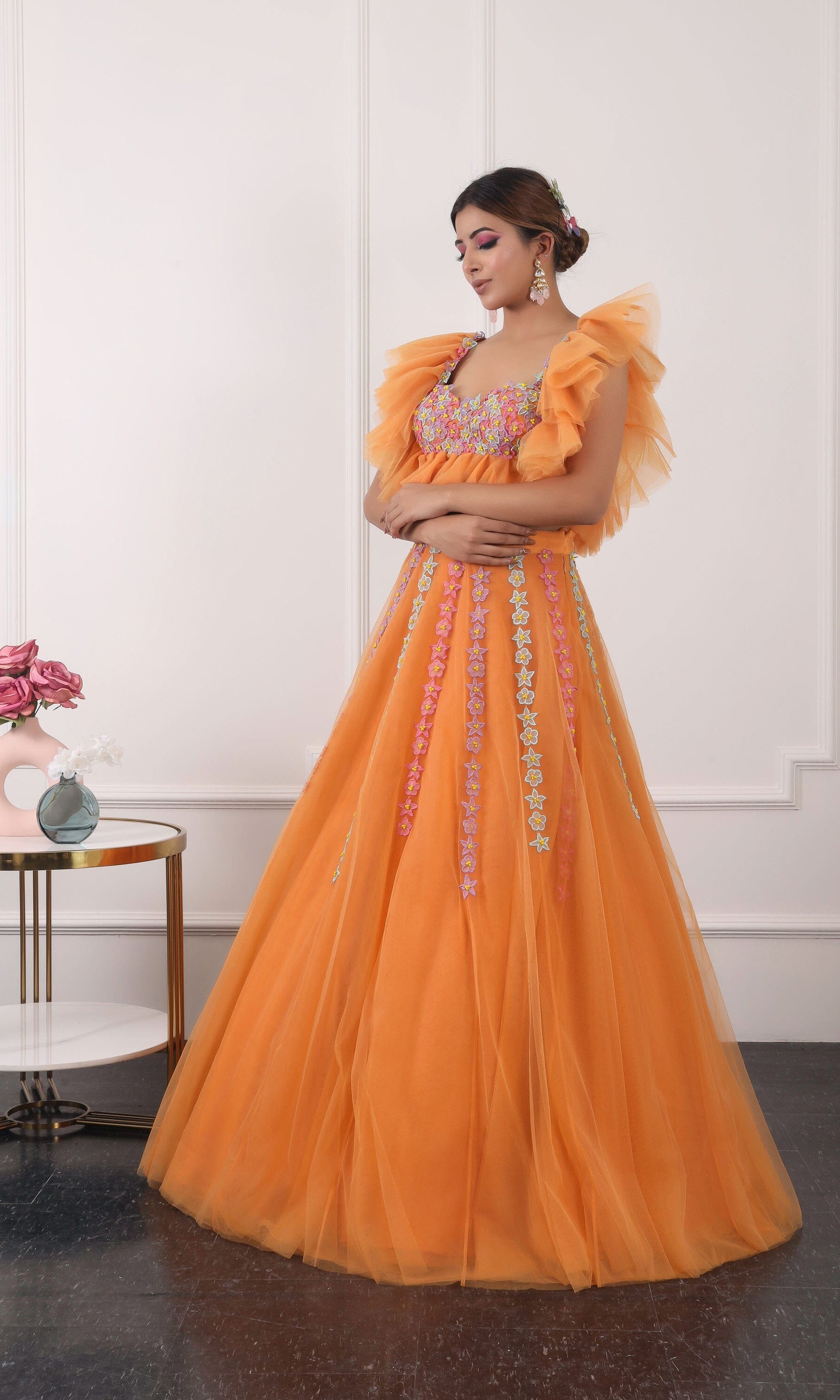 Kiran means rays of sun. The namesake label is based in India. The collection is for anyone who wants to wear something unique and different from the traditional silvers, golds and conventional ethnic motifs, to a design language that celebrates hearty embroidery set in vibrant, eye catching colour palettes and the most fun and joyous silhouettes- and today this brand aesthetic is signatory to the Kiran Kalsi label.