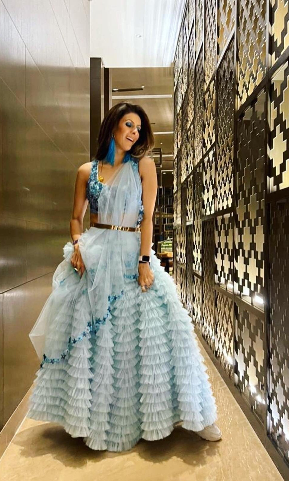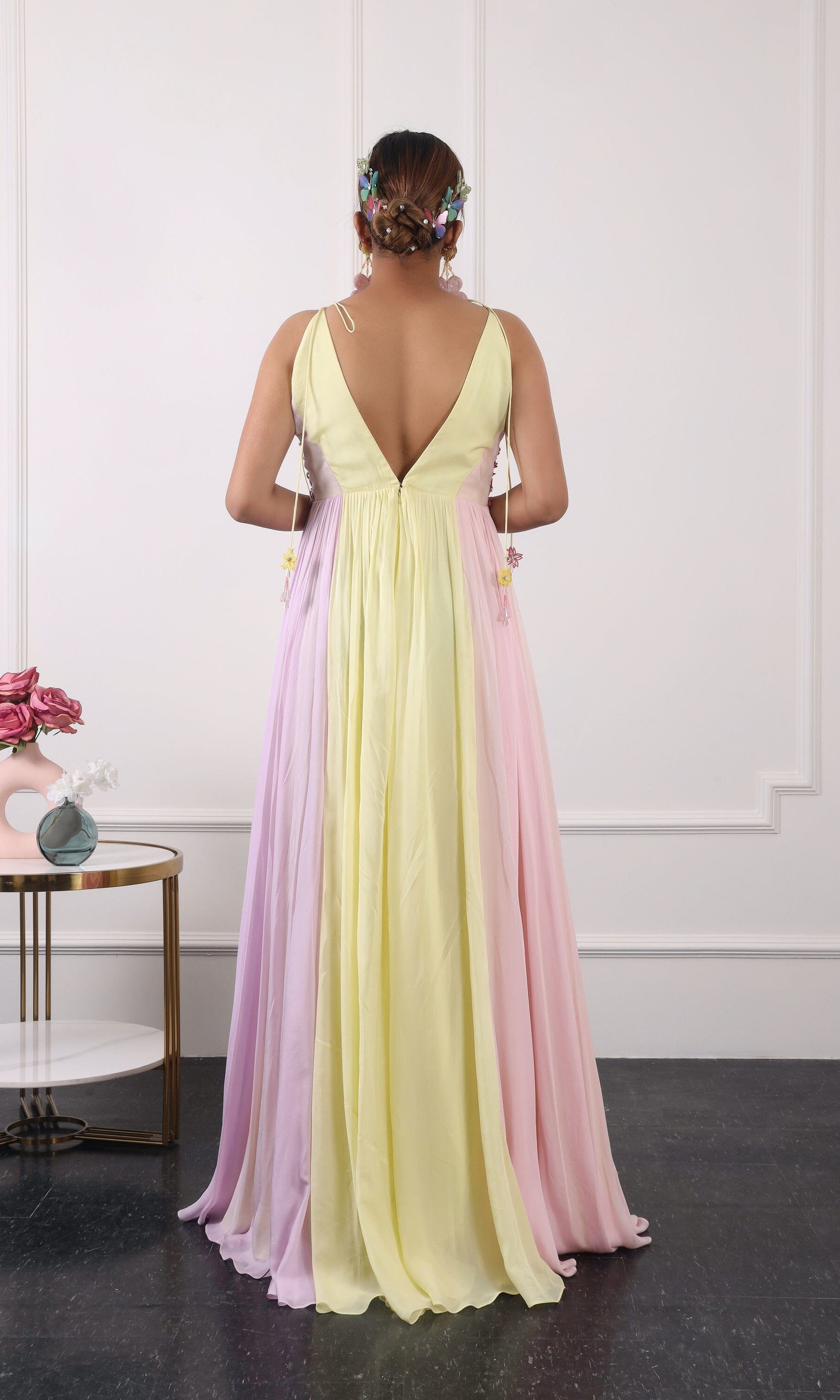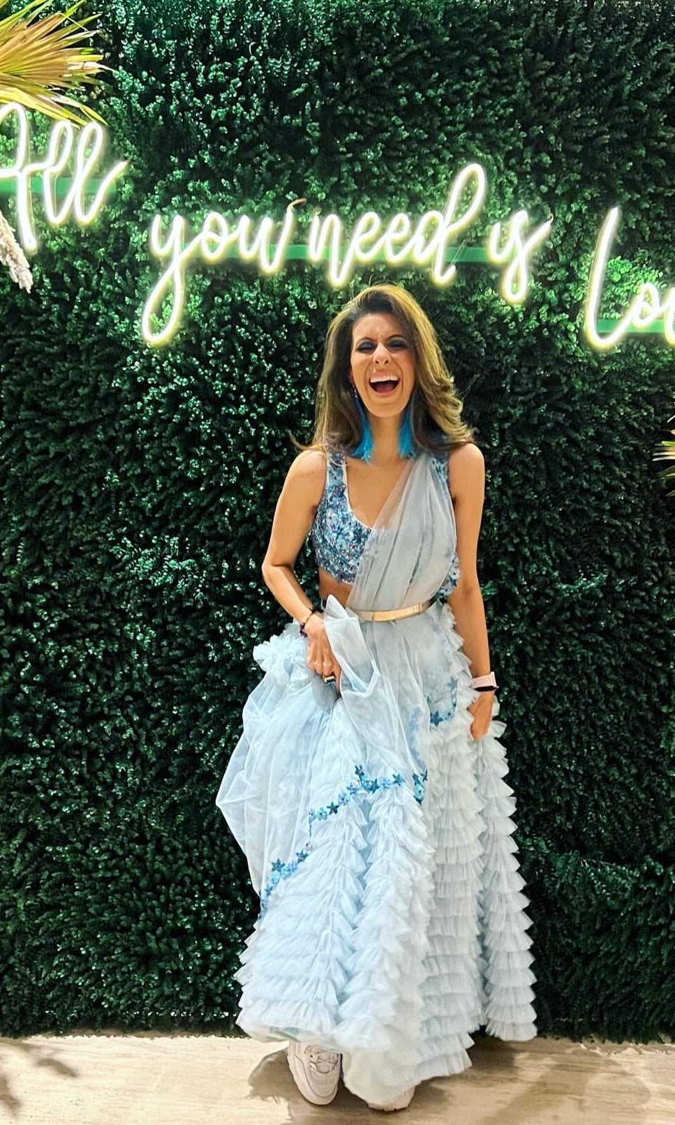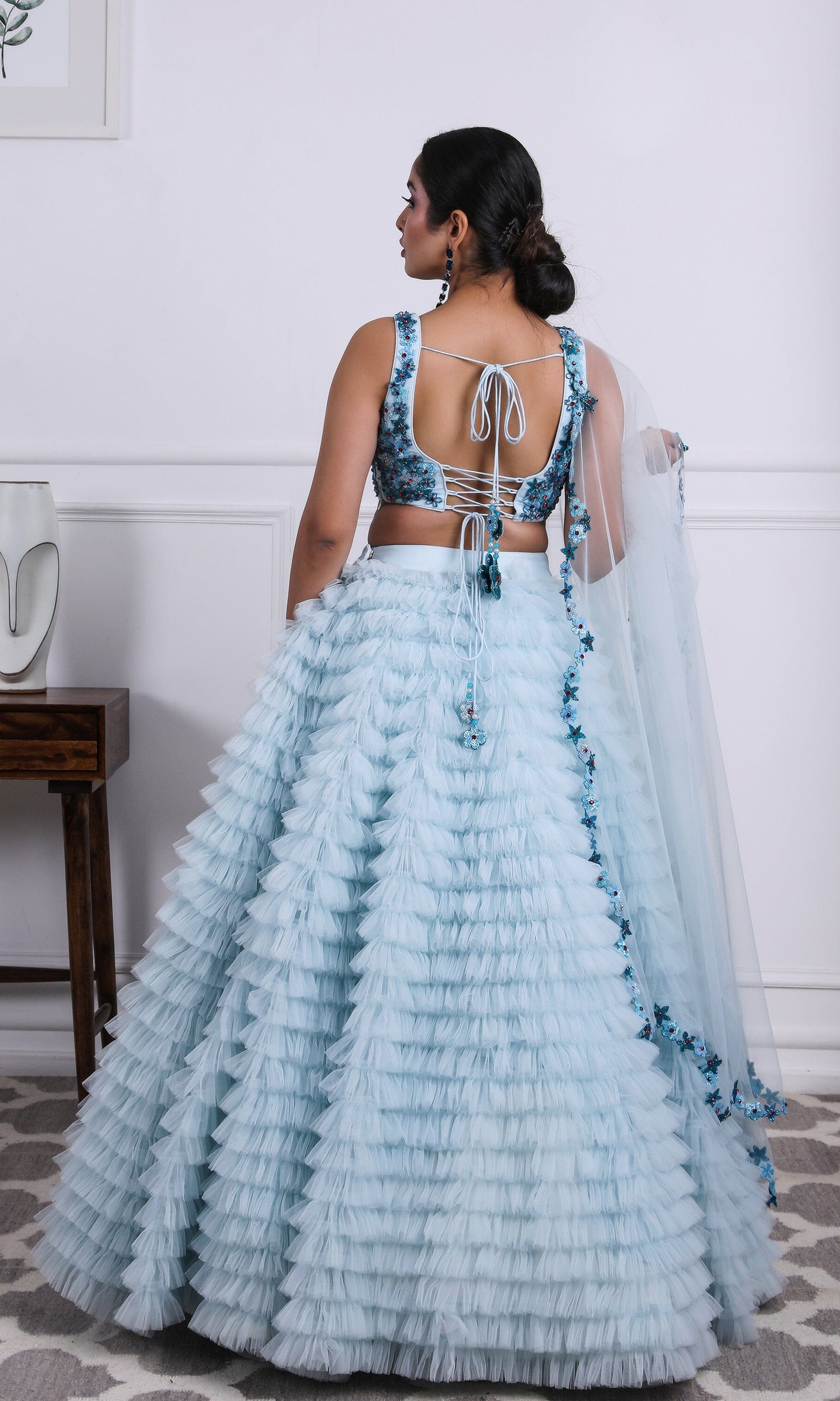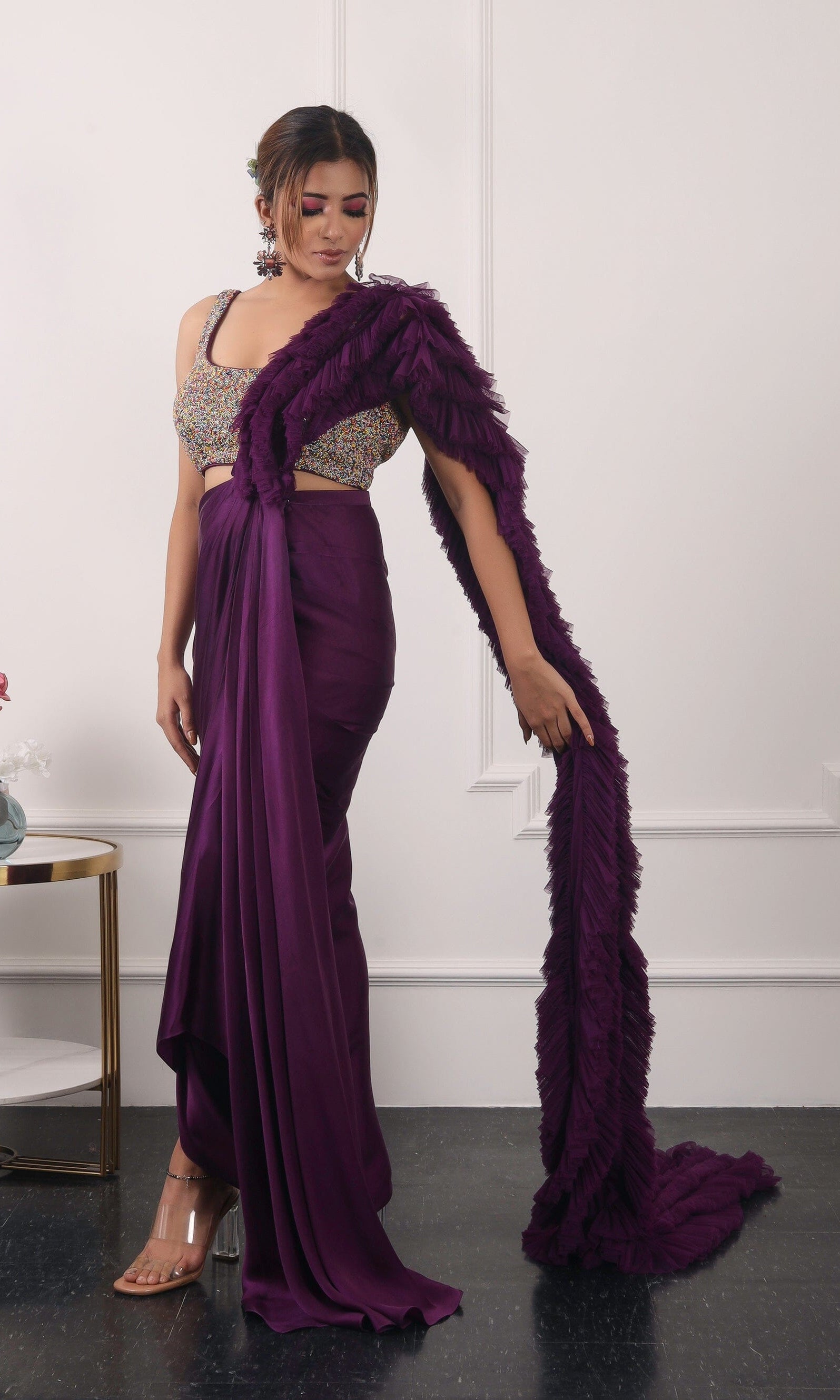Kiran means rays of sun. The namesake label is based in India. The collection is for anyone who wants to wear something unique and different from the traditional silvers, golds and conventional ethnic motifs, to a design language that celebrates hearty embroidery set in vibrant, eye catching colour palettes and the most fun and joyous silhouettes- and today this brand aesthetic is signatory to the Kiran Kalsi label.