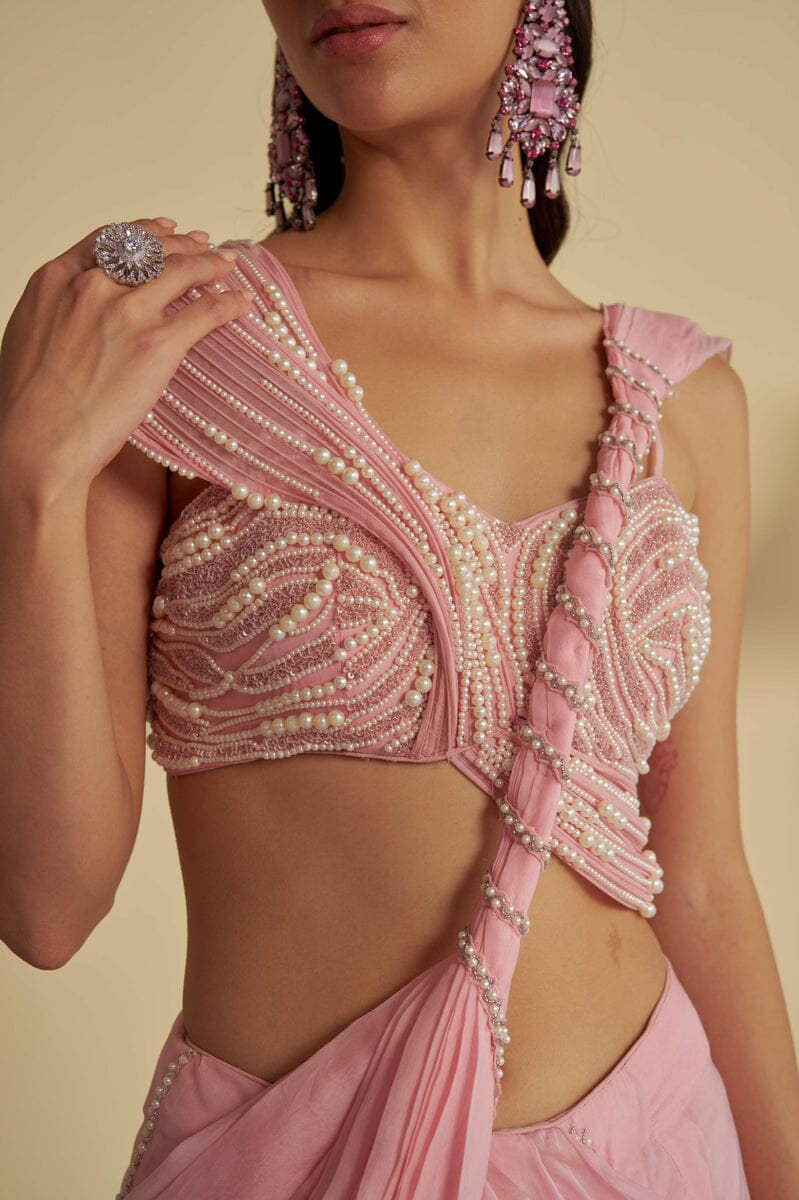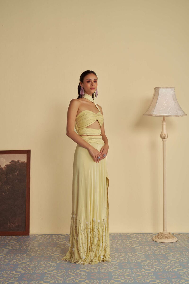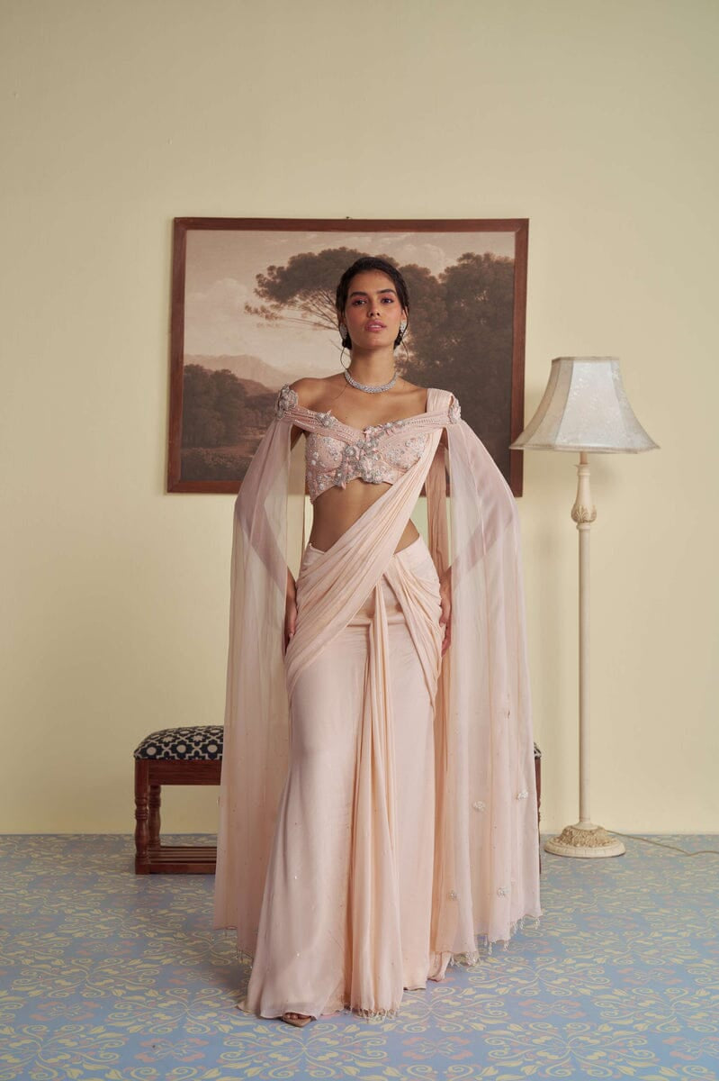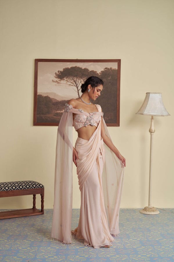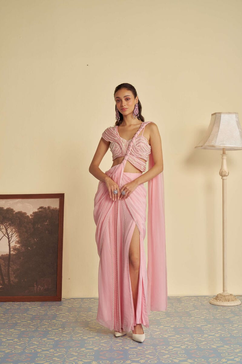 JADE was founded in 2013 by its founder Ashima. Their collection is the definition of Traditional yet Modern. You will find pastel pallets, pleated sarees, and elegant draped pieces. All the outfits are made in high-quality fabrics like georgette, silk, crepe, and net with hand-embroidered work. While some pieces are ready to ship, other custom pieces may take two to three weeks for delivery.