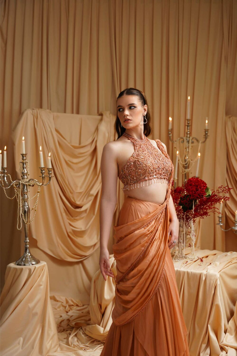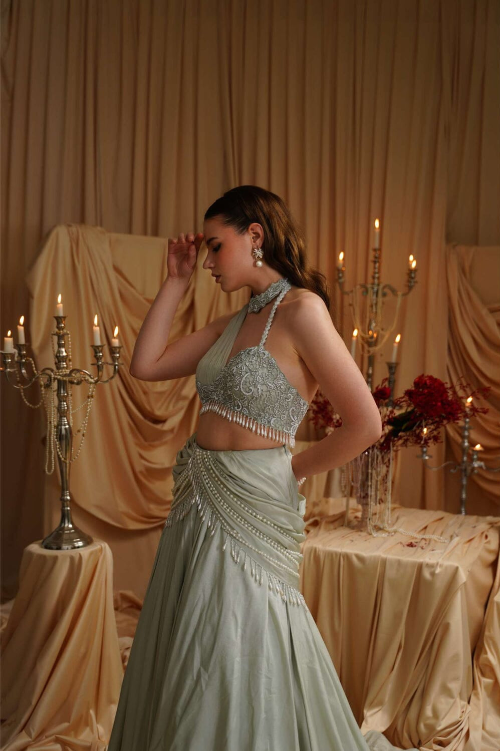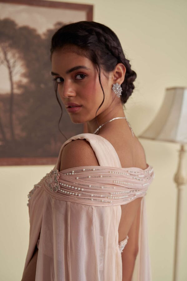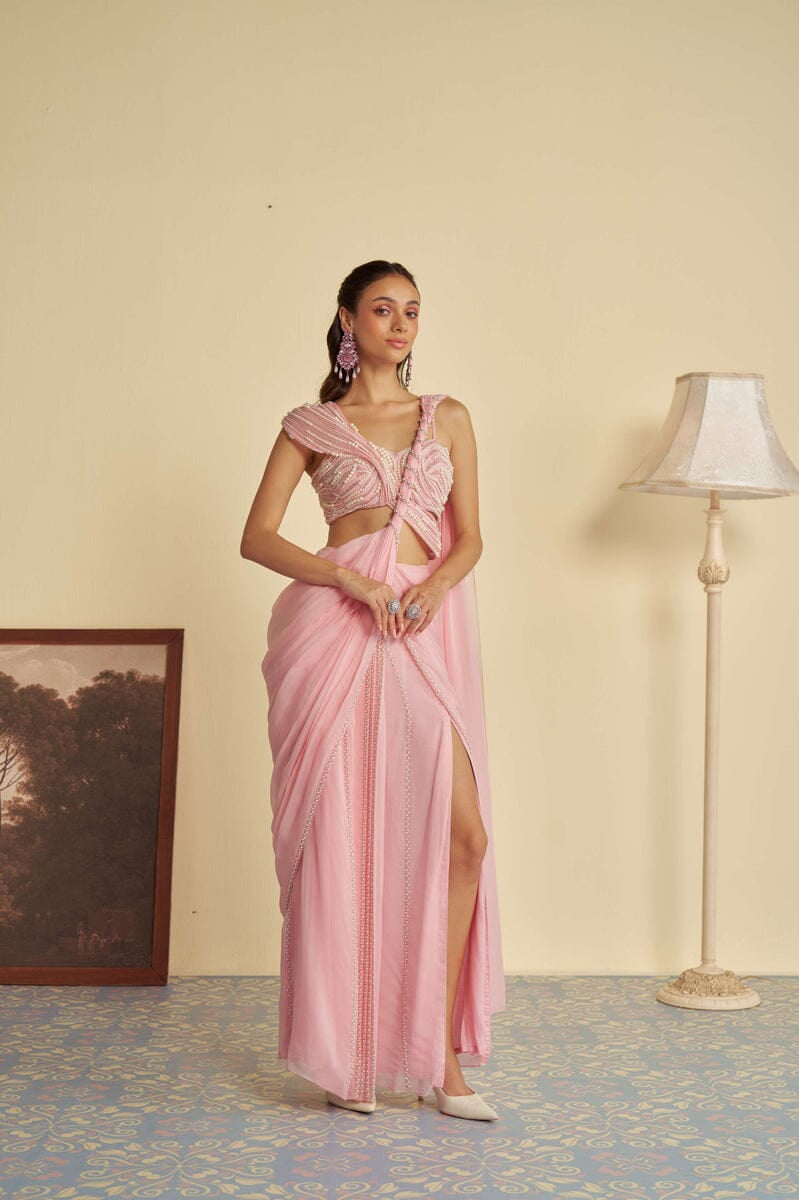 JADE was founded in 2013 by its founder Ashima. Their collection is the definition of Traditional yet Modern. You will find pastel pallets, pleated sarees, and elegant draped pieces. All the outfits are made in high-quality fabrics like georgette, silk, crepe, and net with hand-embroidered work. While some pieces are ready to ship, other custom pieces may take two to three weeks for delivery.