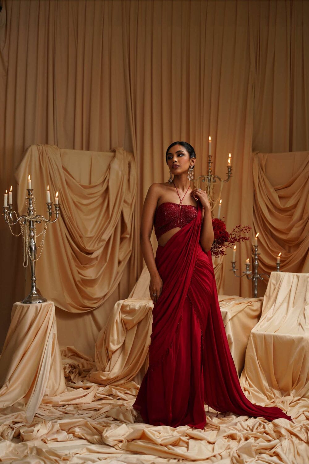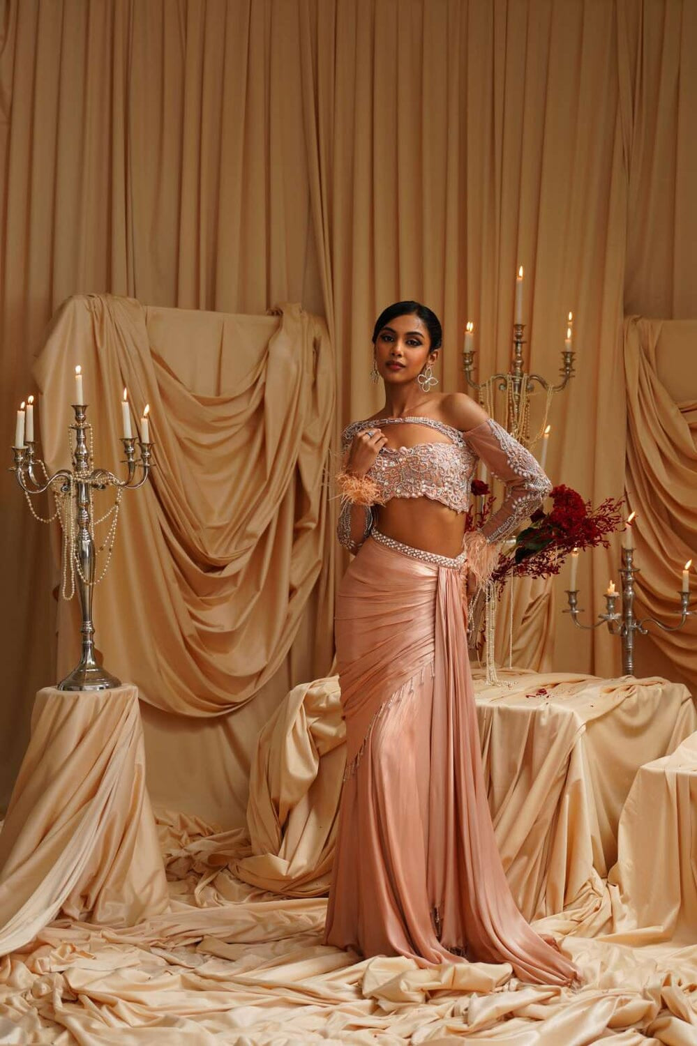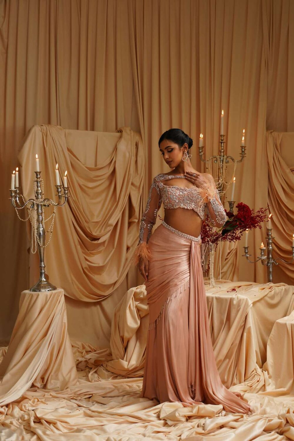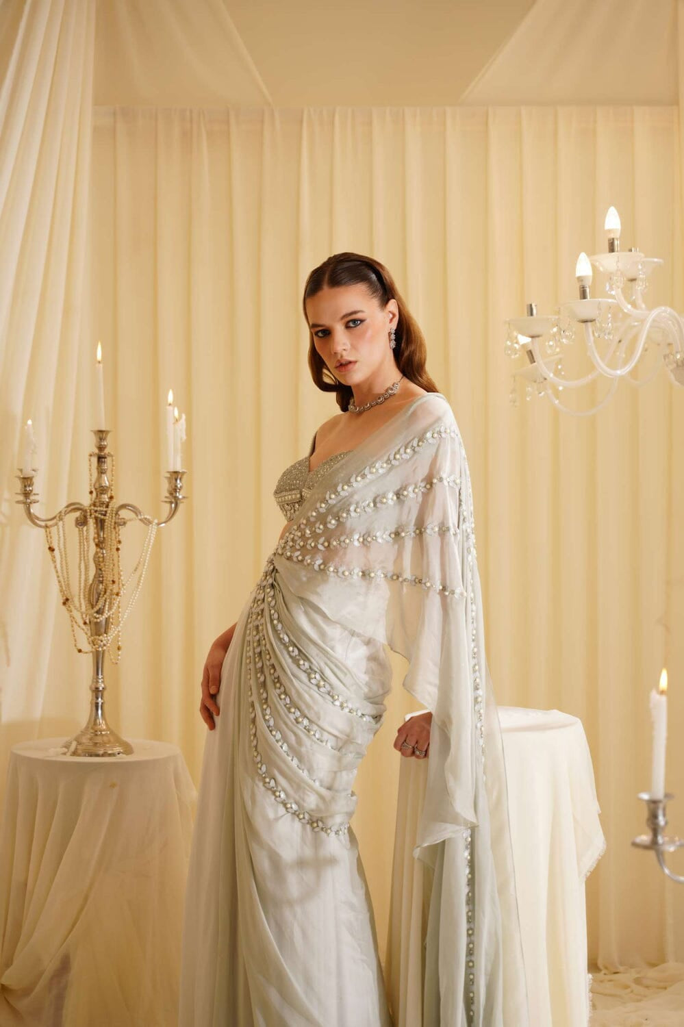 JADE was founded in 2013 by its founder Ashima. Their collection is the definition of Traditional yet Modern. You will find pastel pallets, pleated sarees, and elegant draped pieces. All the outfits are made in high-quality fabrics like georgette, silk, crepe, and net with hand-embroidered work. While some pieces are ready to ship, other custom pieces may take two to three weeks for delivery.