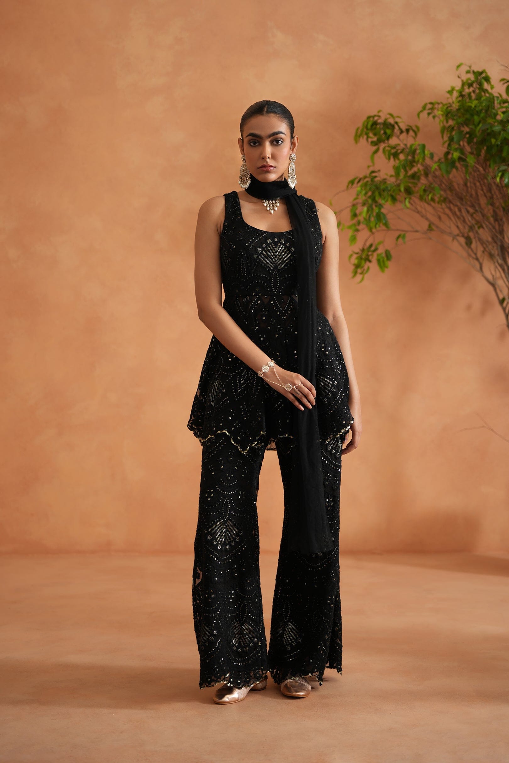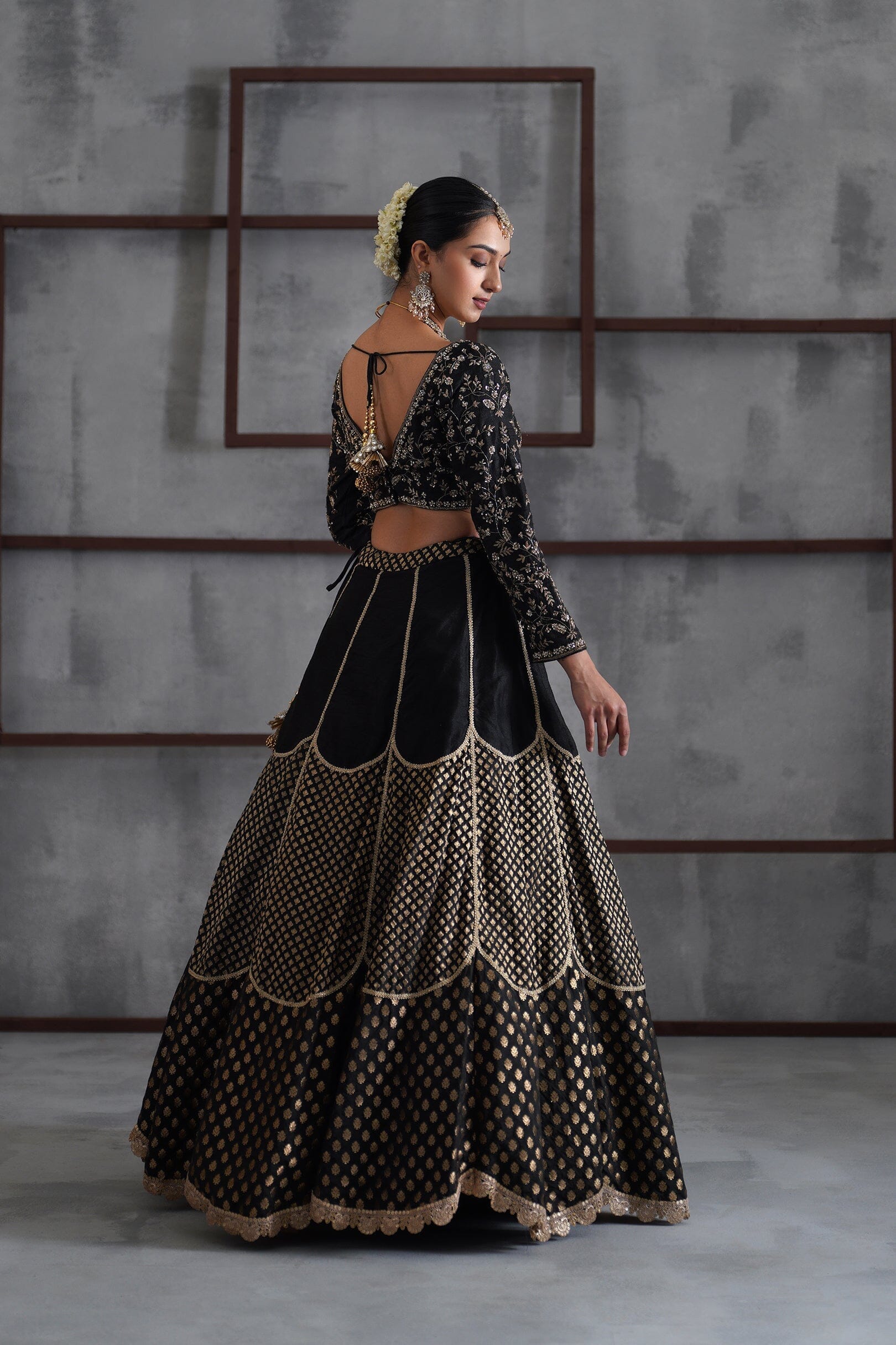 Black Embroidered Blouse, Brocade Lehenga and dupatta
