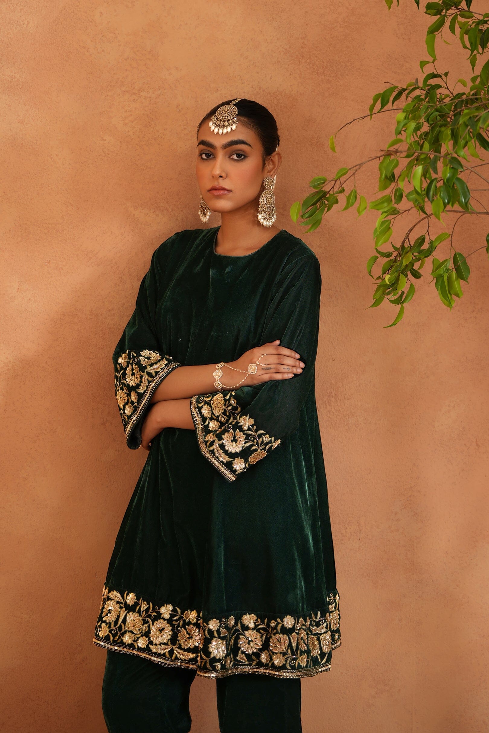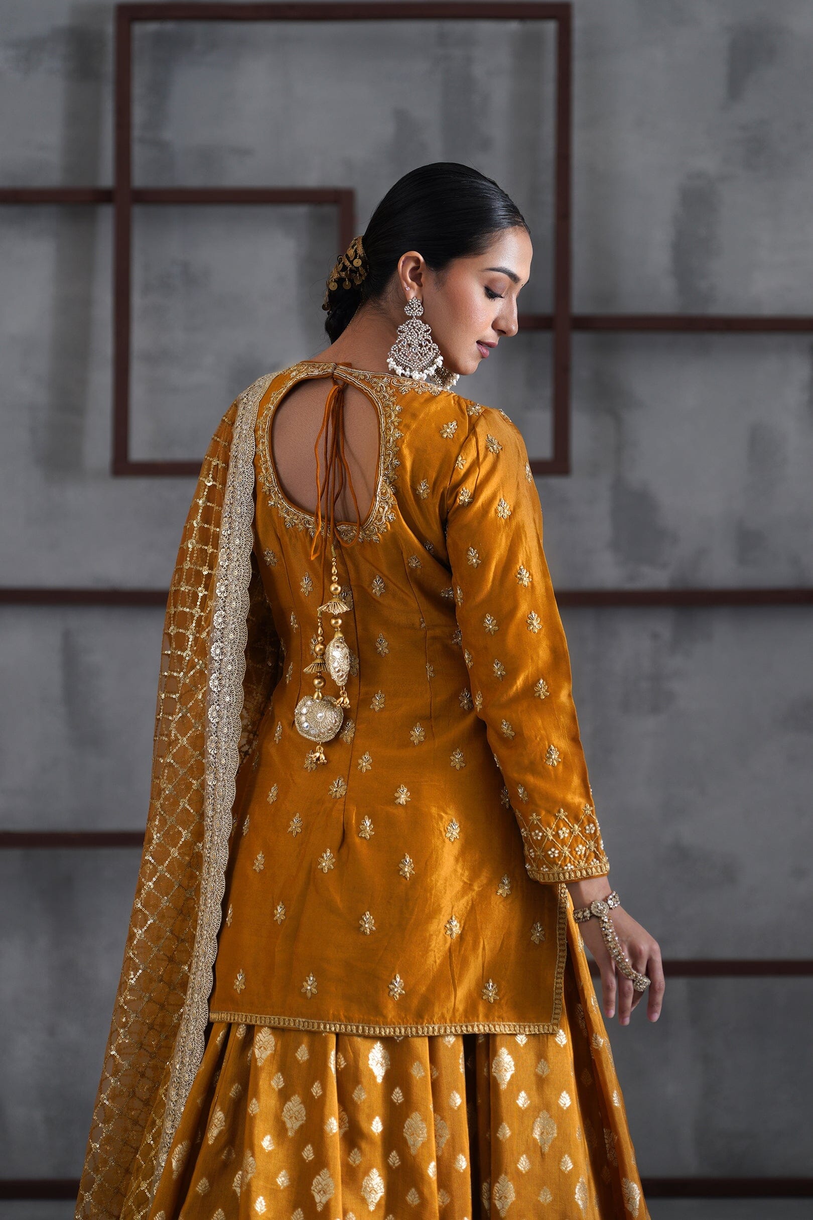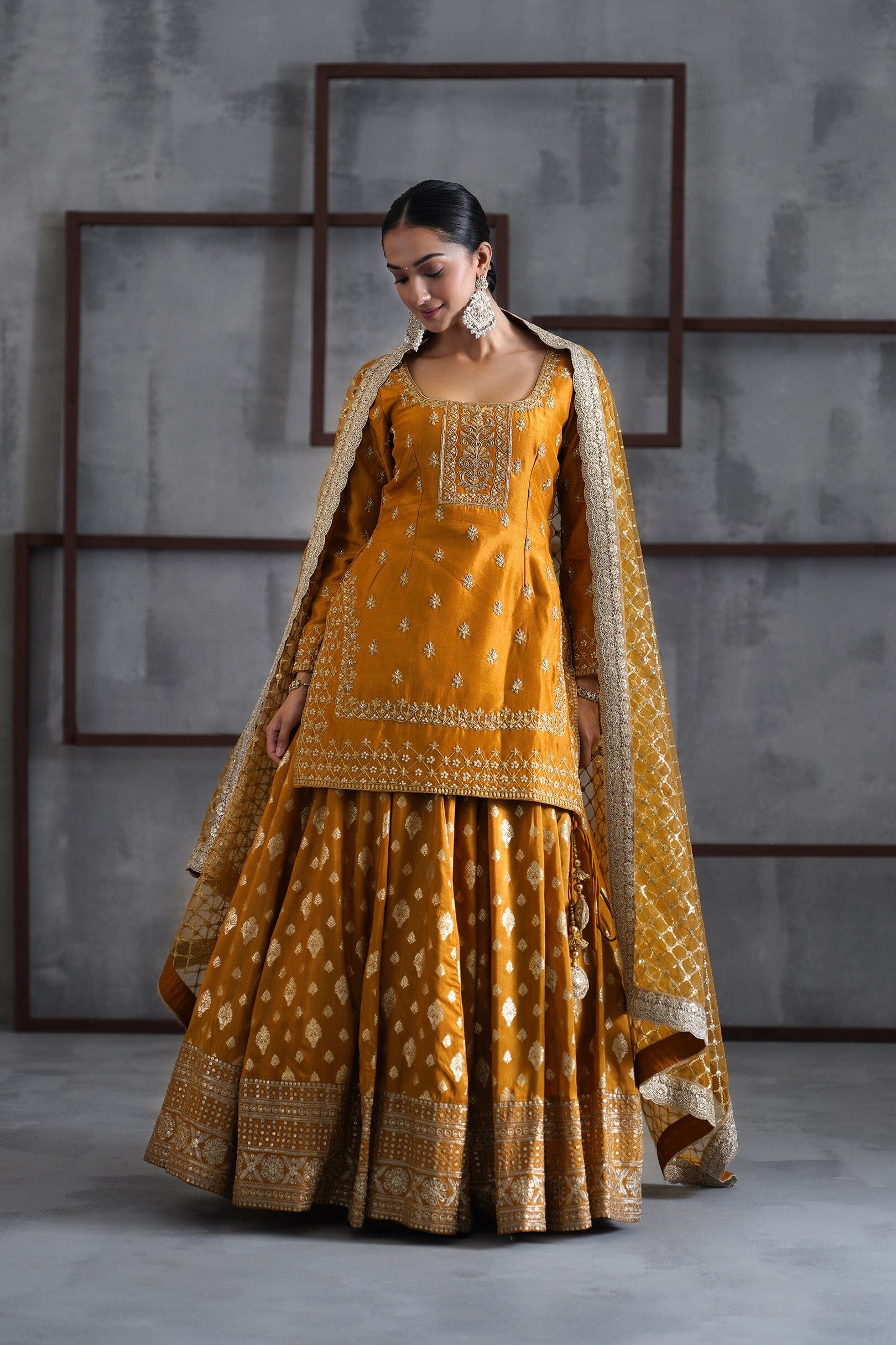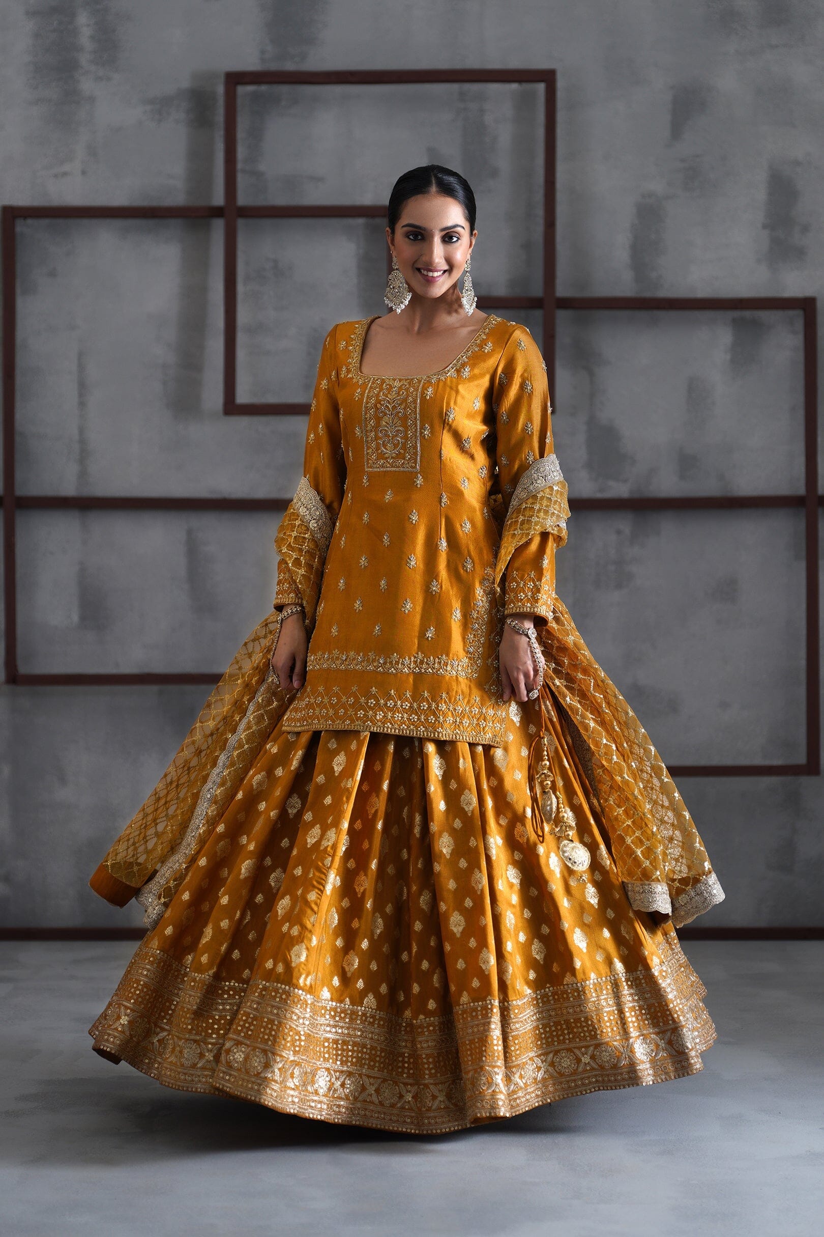 Mustard Embroidered Kurti Brocade Lehenga and Dupatta