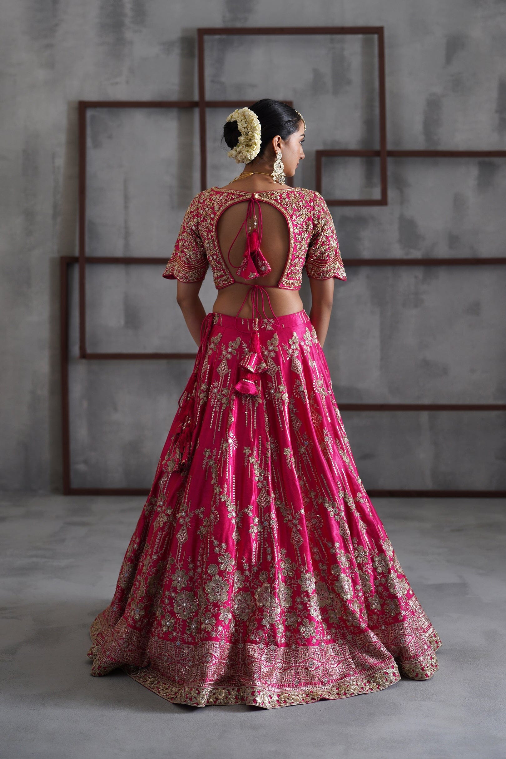 White and Pink Embroidered Blouse, Lehenga and Dupatta