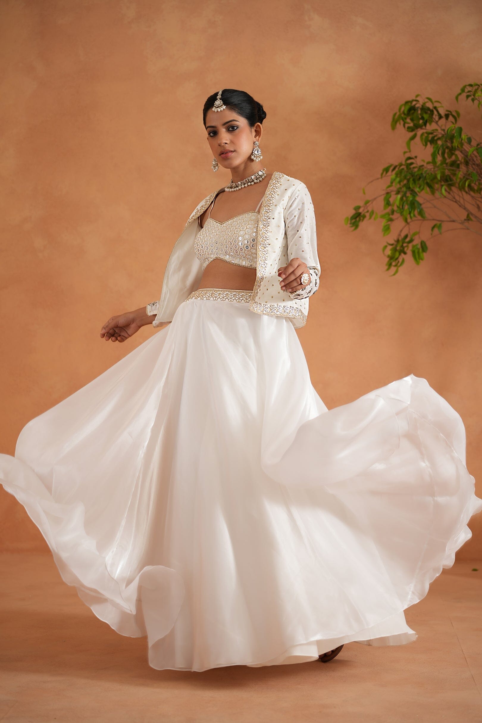 Ivory Embroidered Bustier, Lehenga and Short Jacket