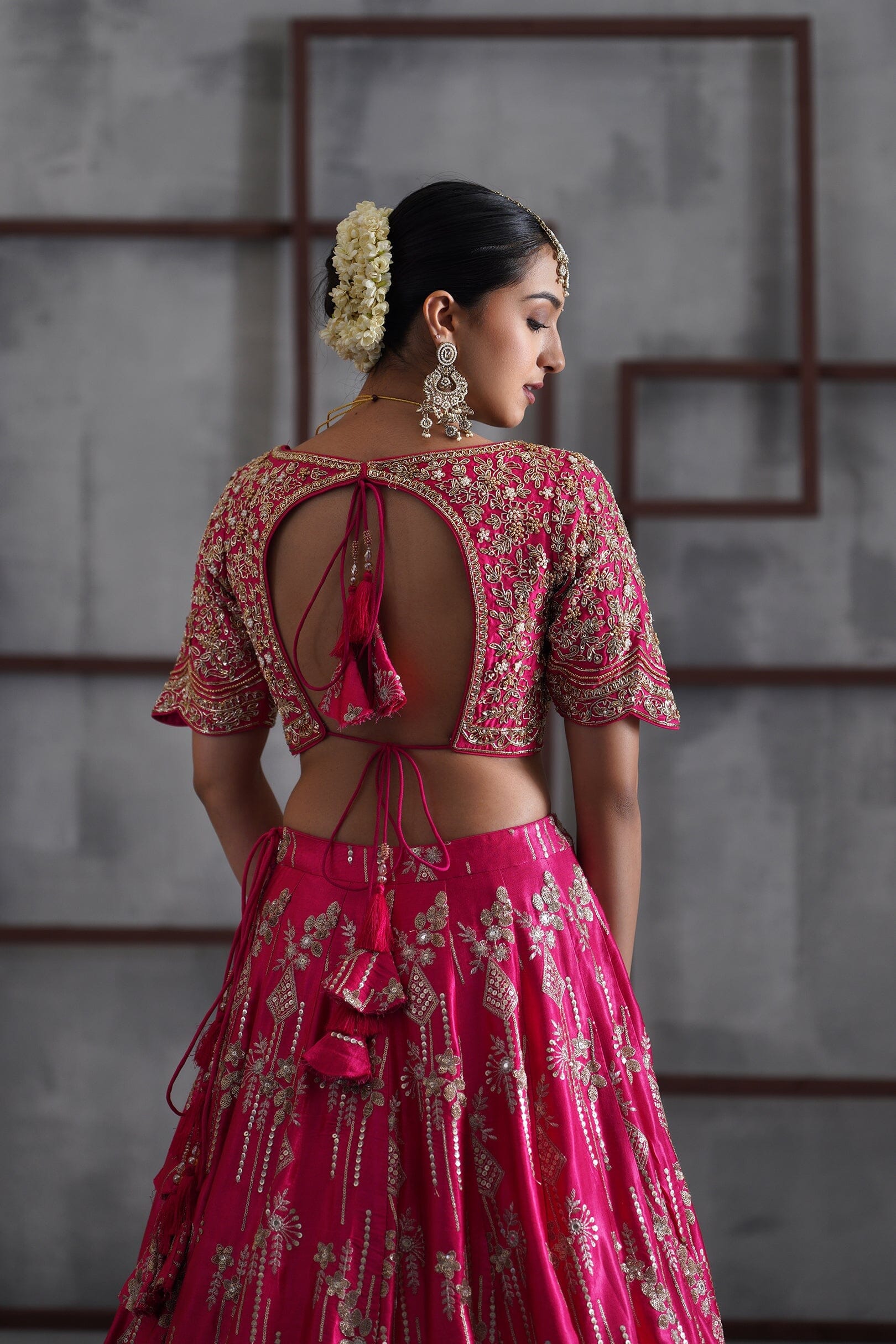 Fuchsia embroidered blouse lehenga and dupatta