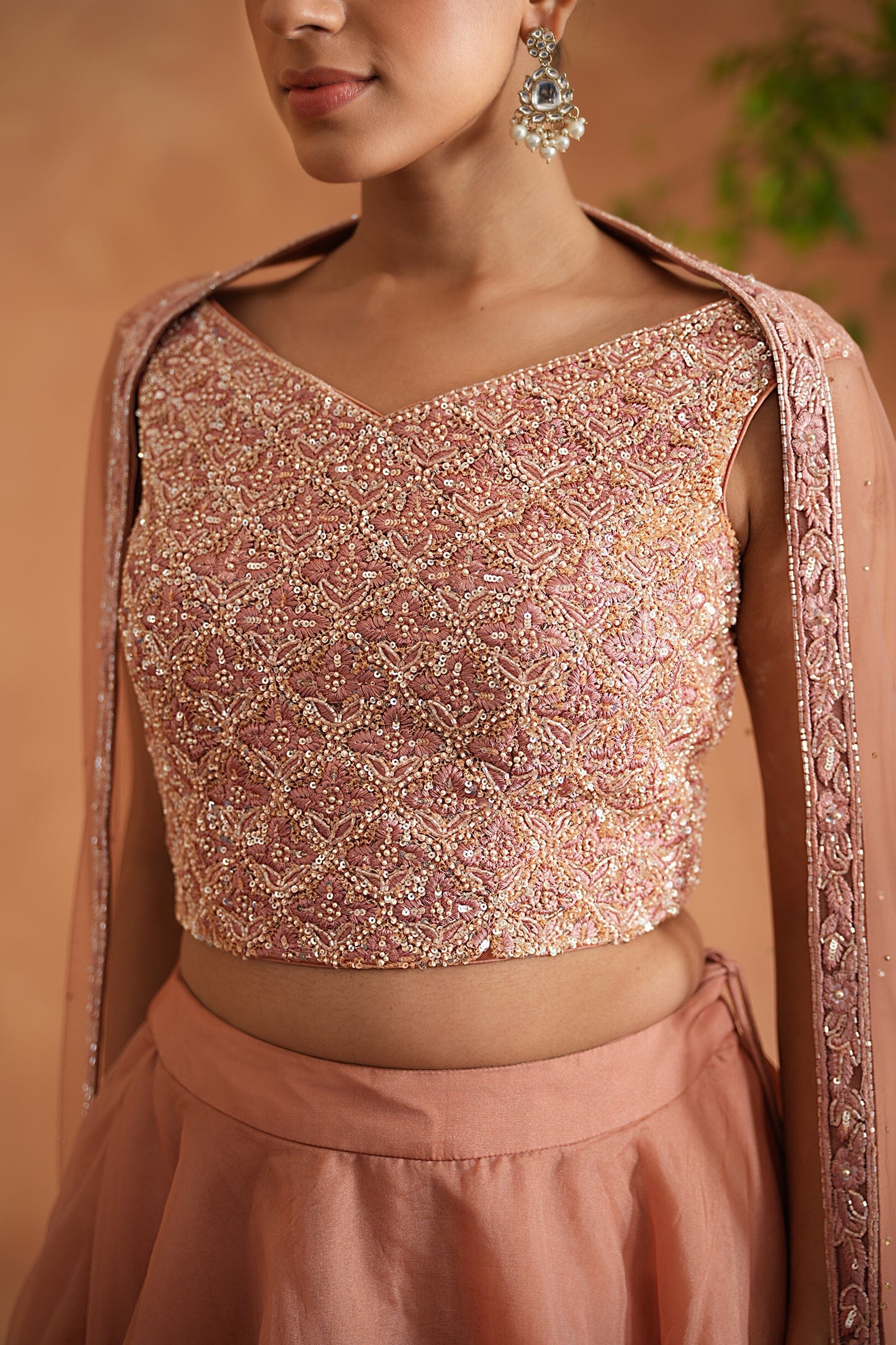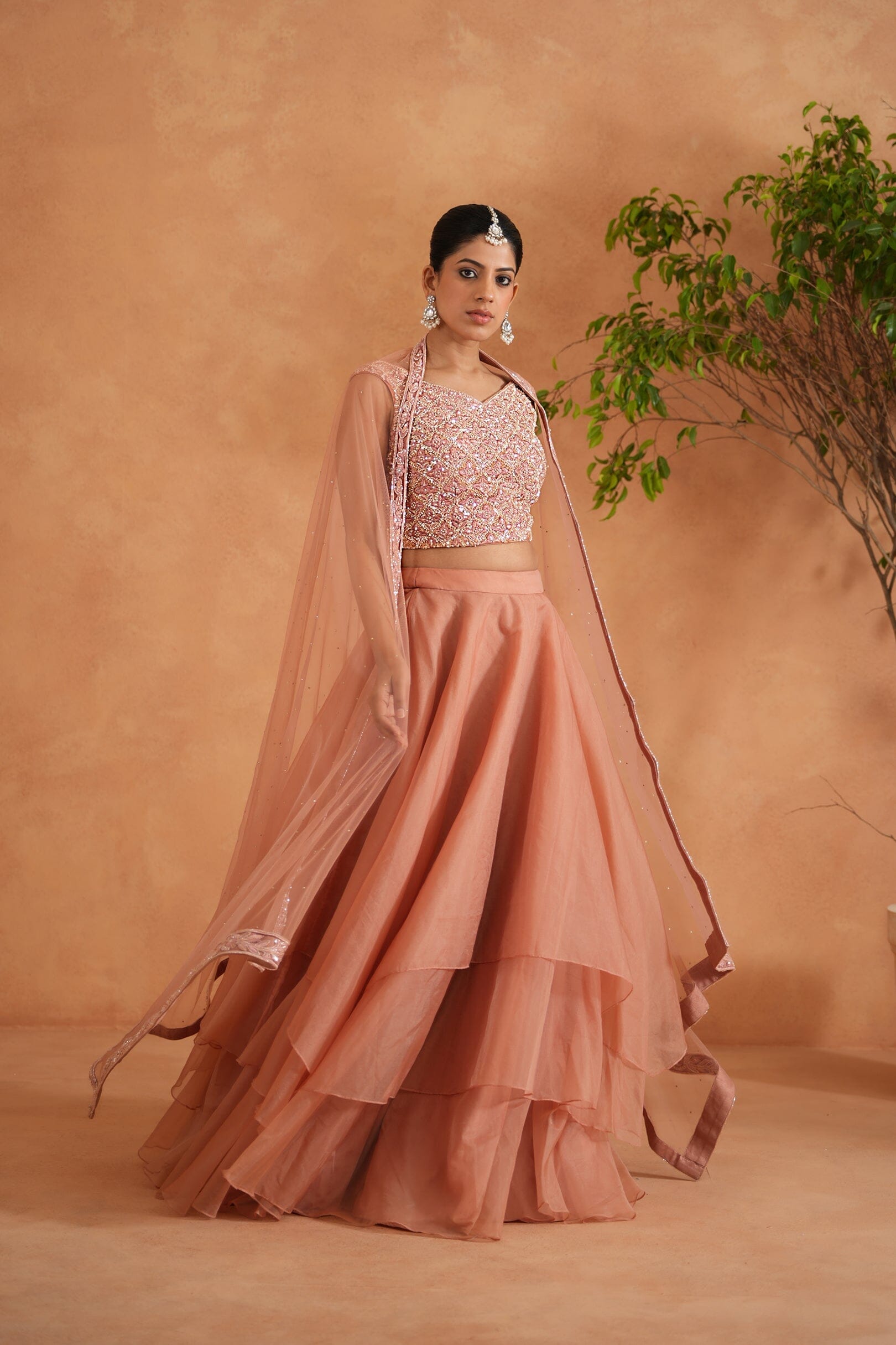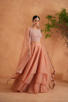 Peach Embroidered Blouse, Lehenga and Dupatta