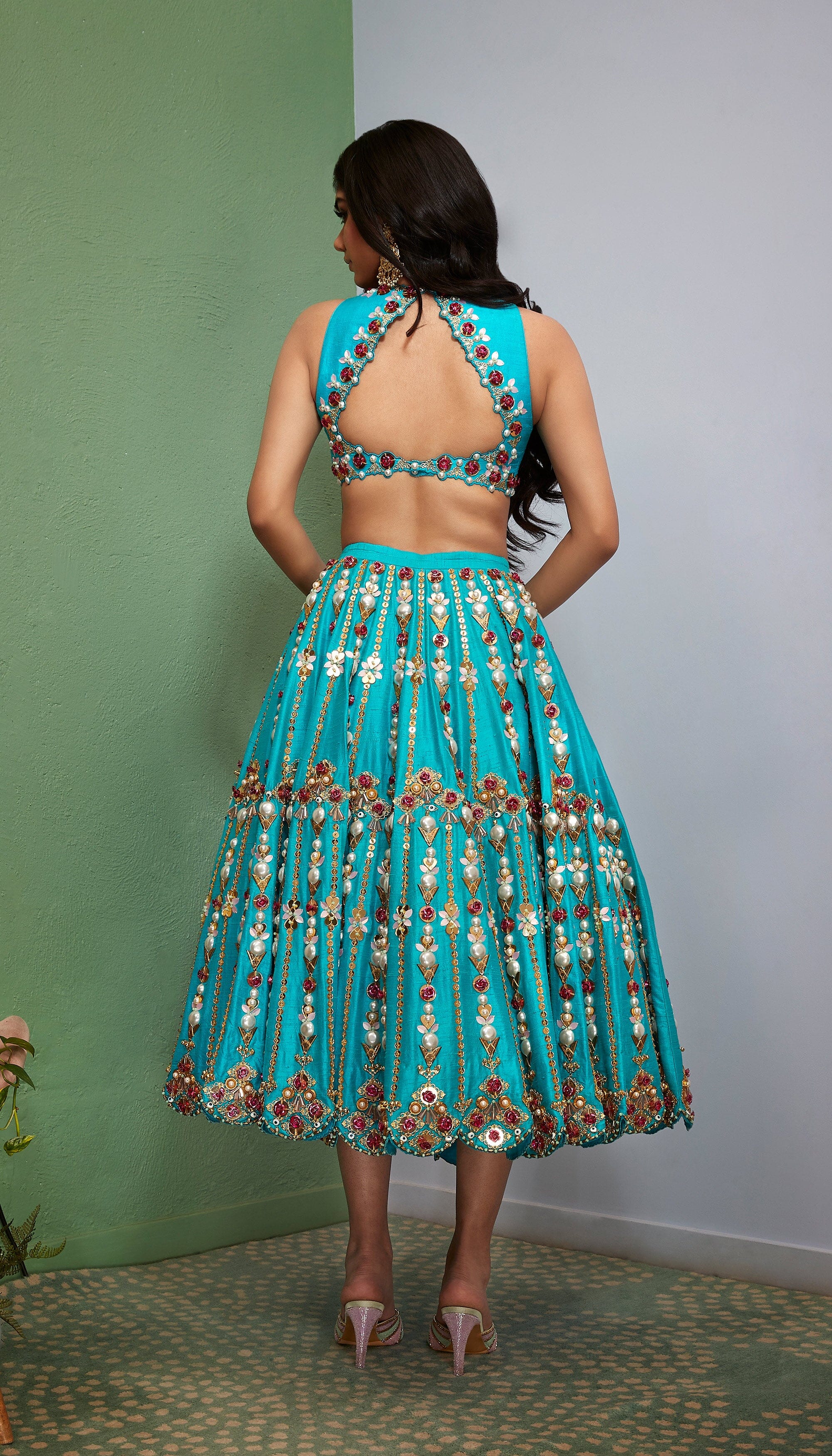 Who Run the World: Cerulean Blue Embellished Half Lehenga Set