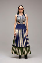 Egg-Shell Bodysuit Dual Striped Skirt Set (2 PCS)